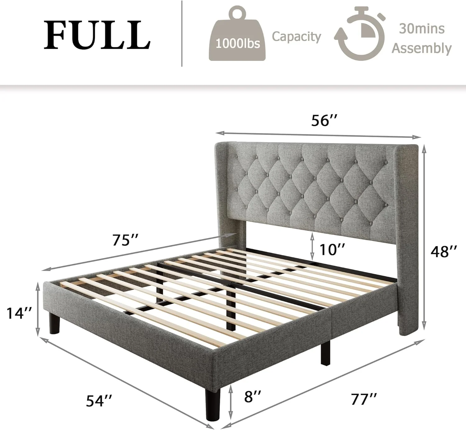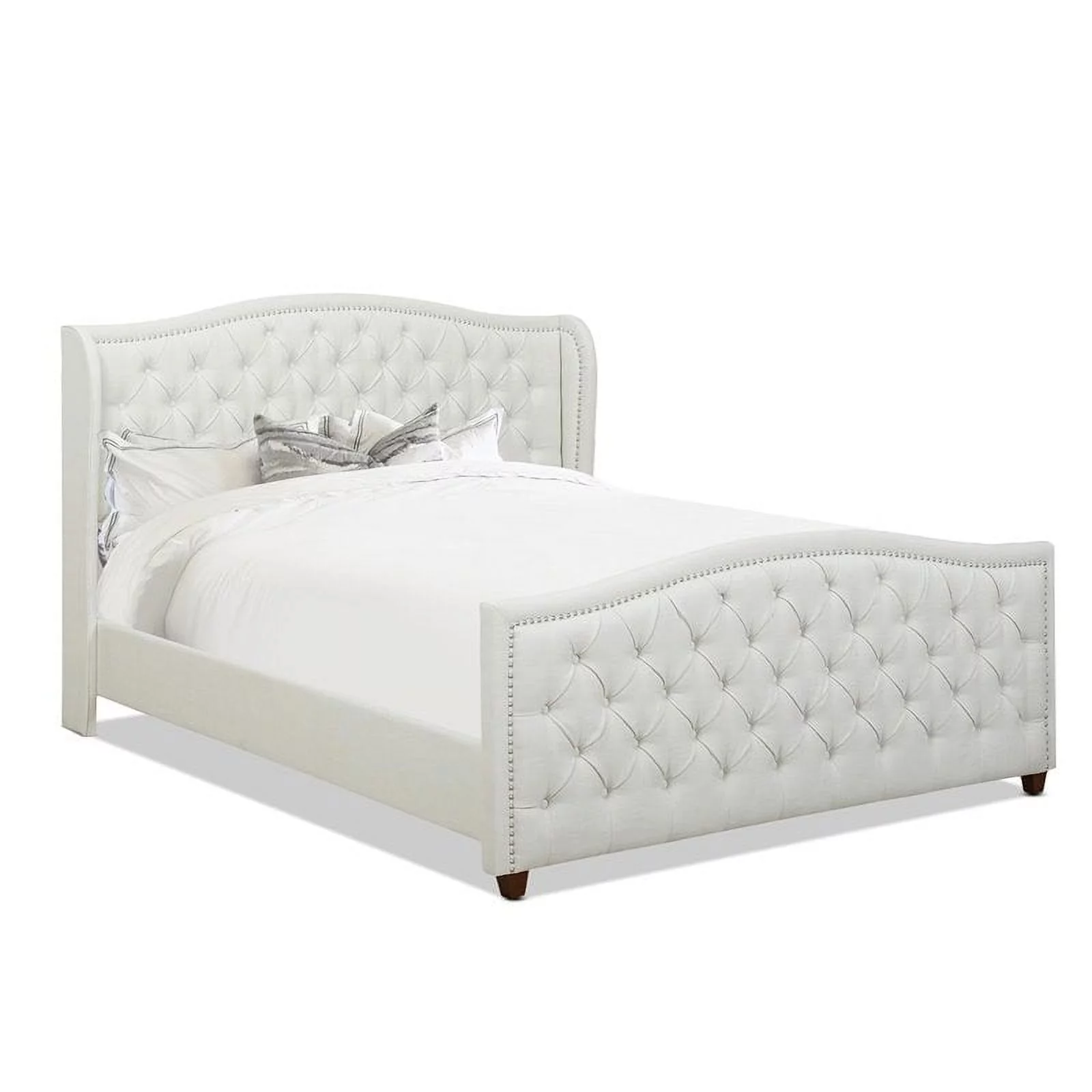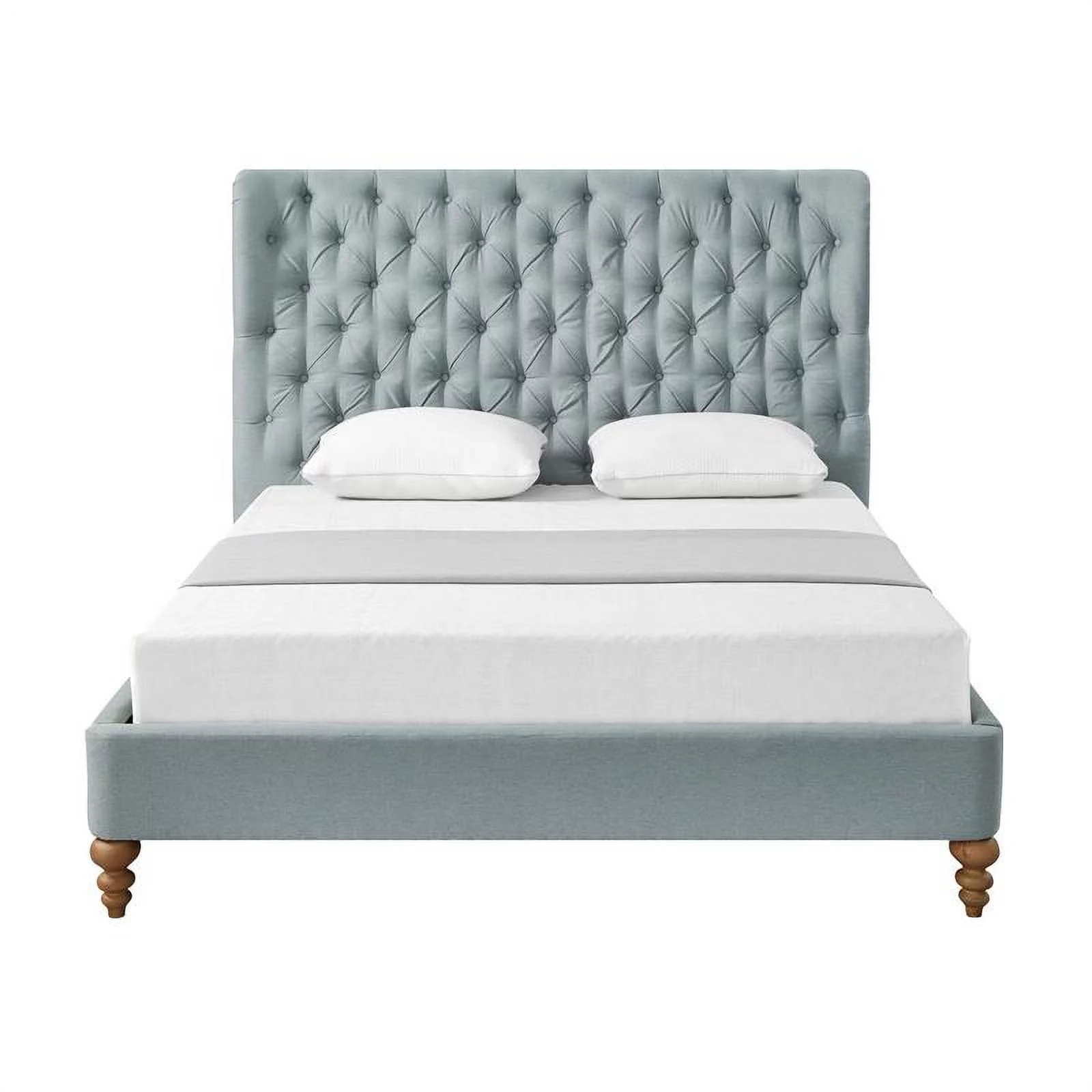 Transitional Style Grey Polyfiber 1pc Queen Size Bed Tufted Headboard Under Bed Storage Drawers Footboard Plywood Bedframe