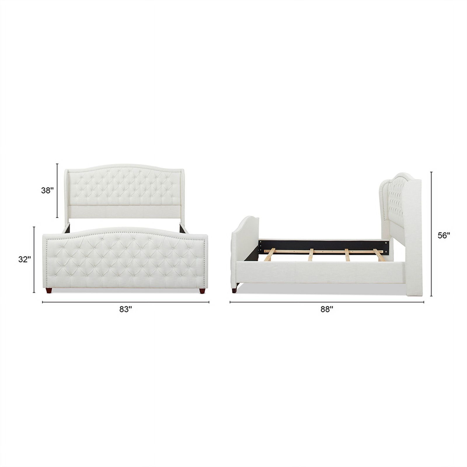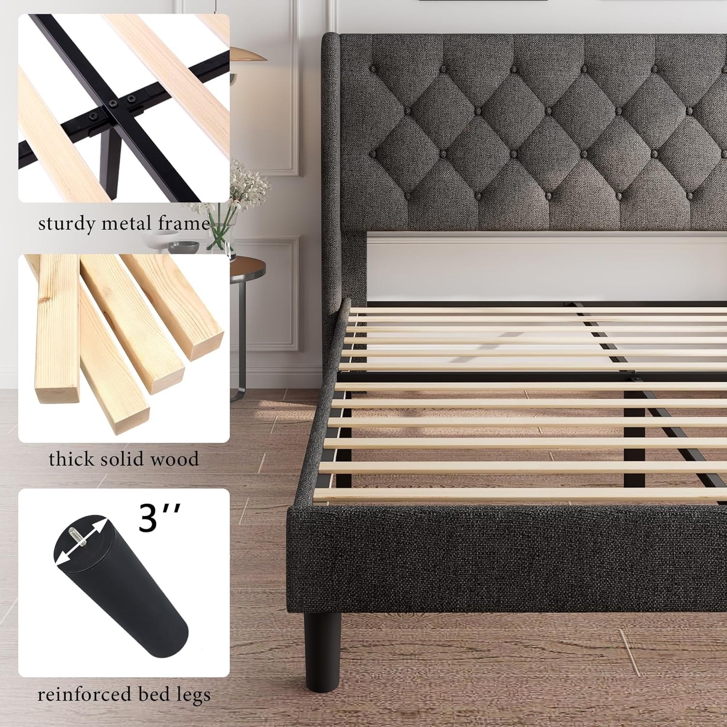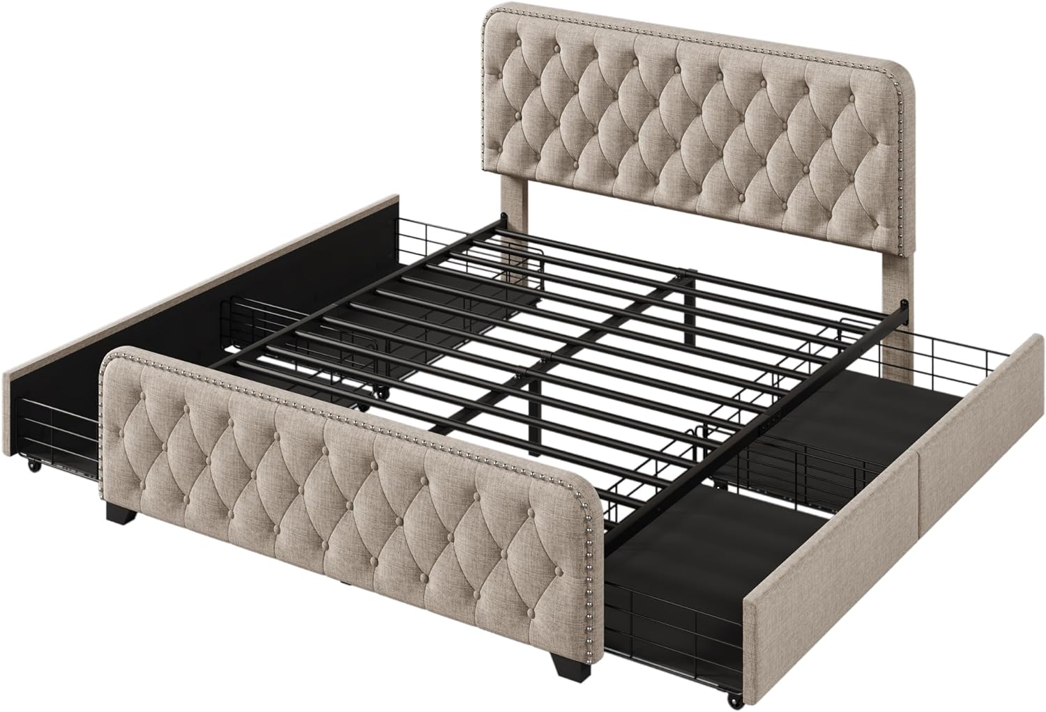 Platform Bed Frame with Four Drawers, Button Tufted Headboard and Footboard Sturdy Wood Slat Support, KING