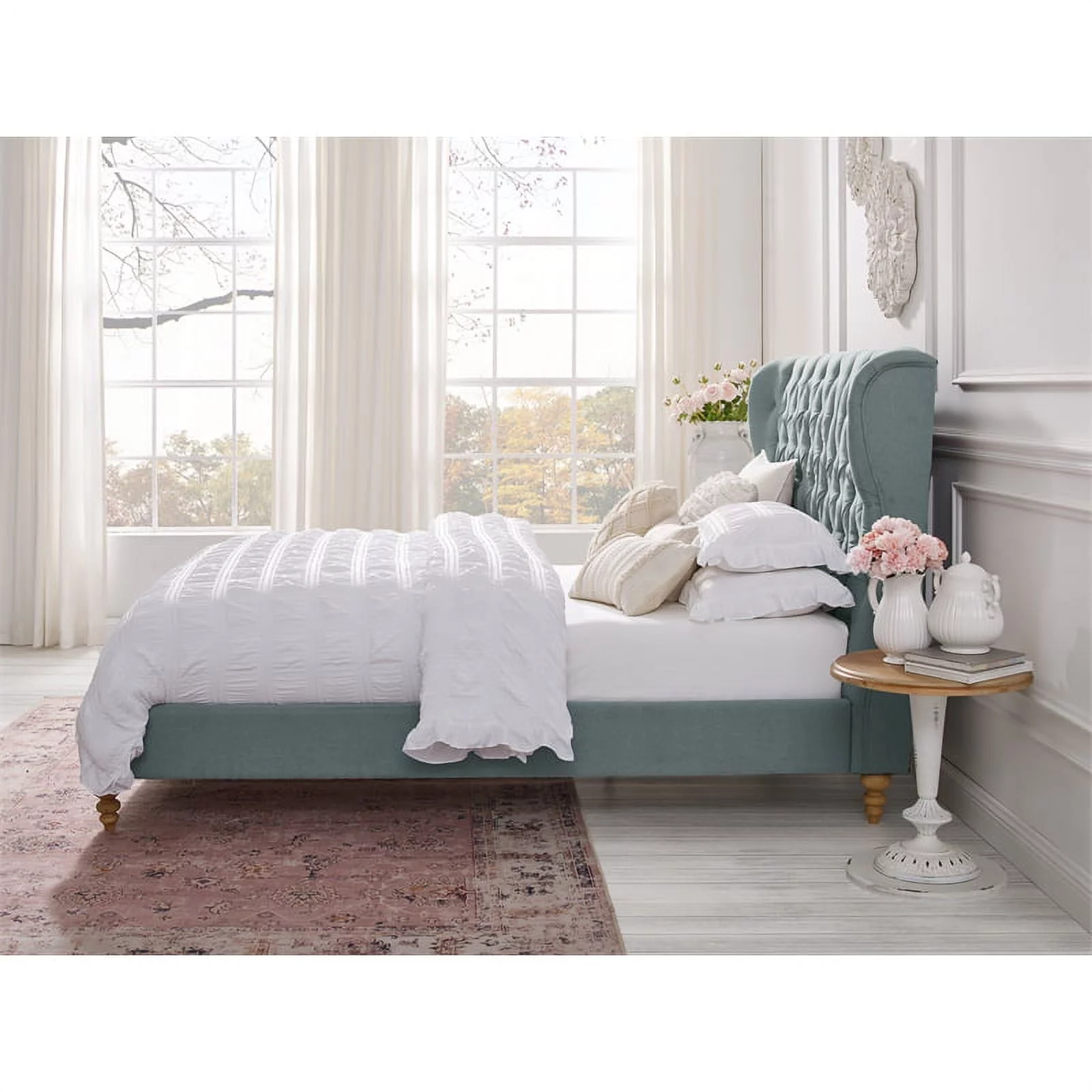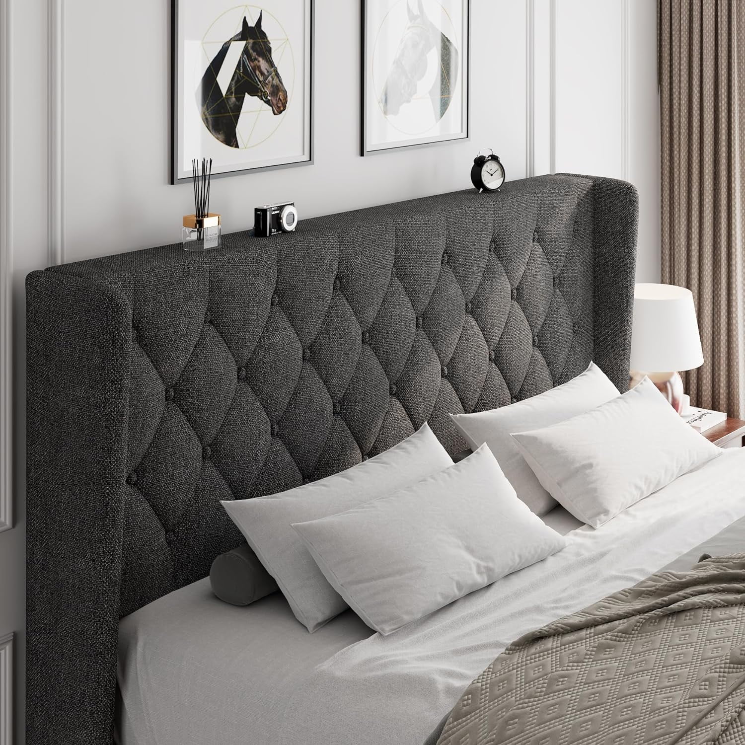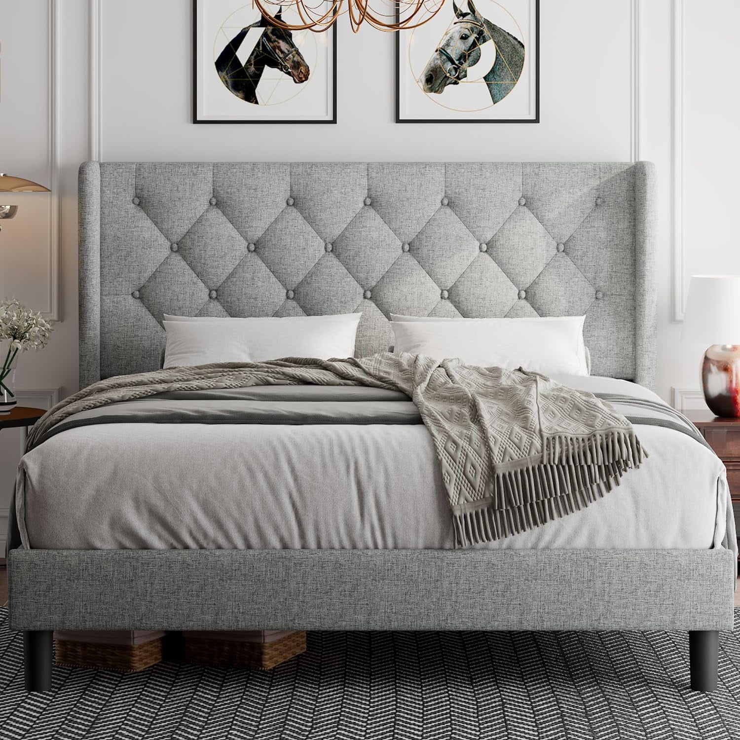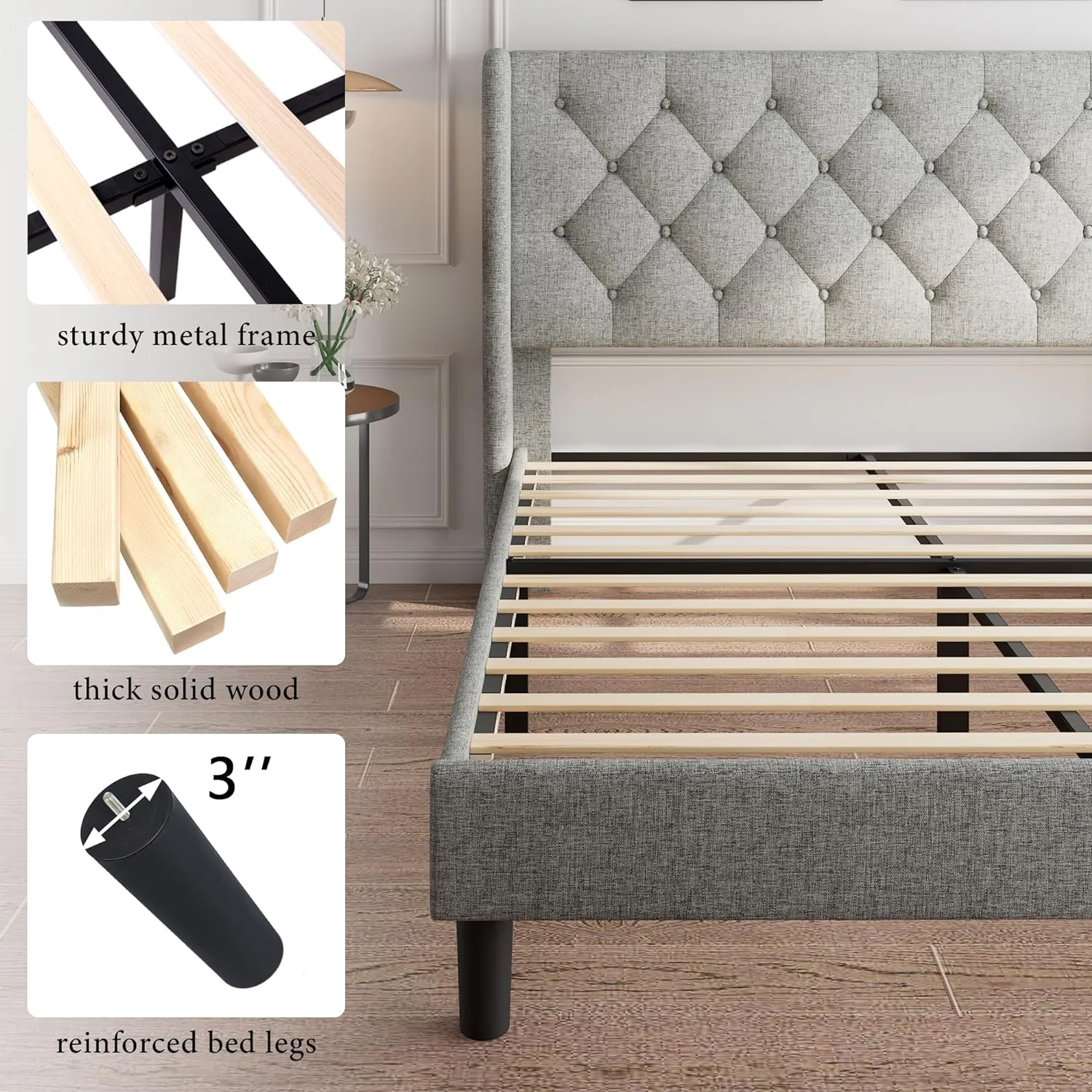 Platform Bed Frame with Four Drawers, Button Tufted Headboard and Footboard Sturdy Wood Slat Support, KING