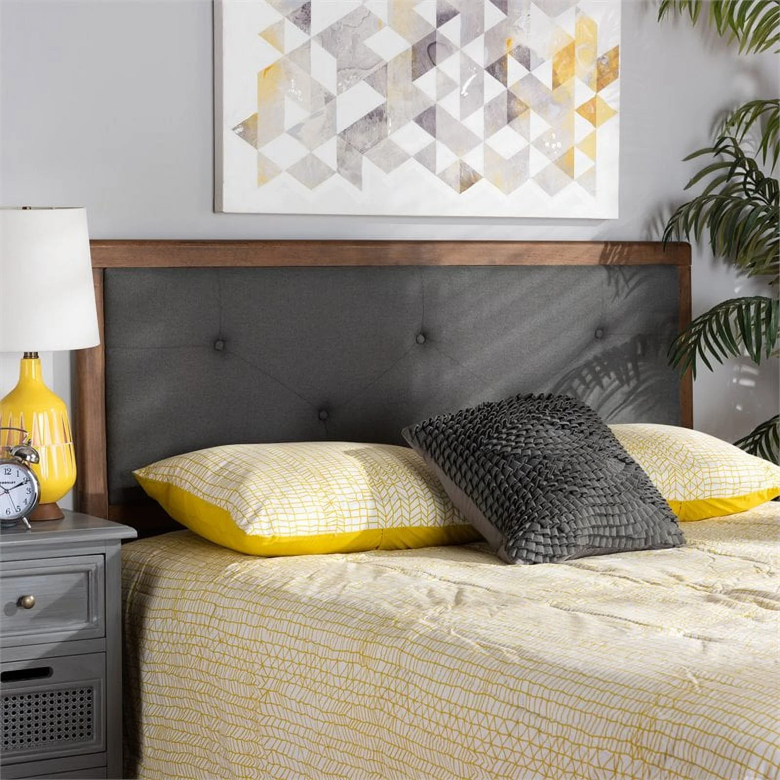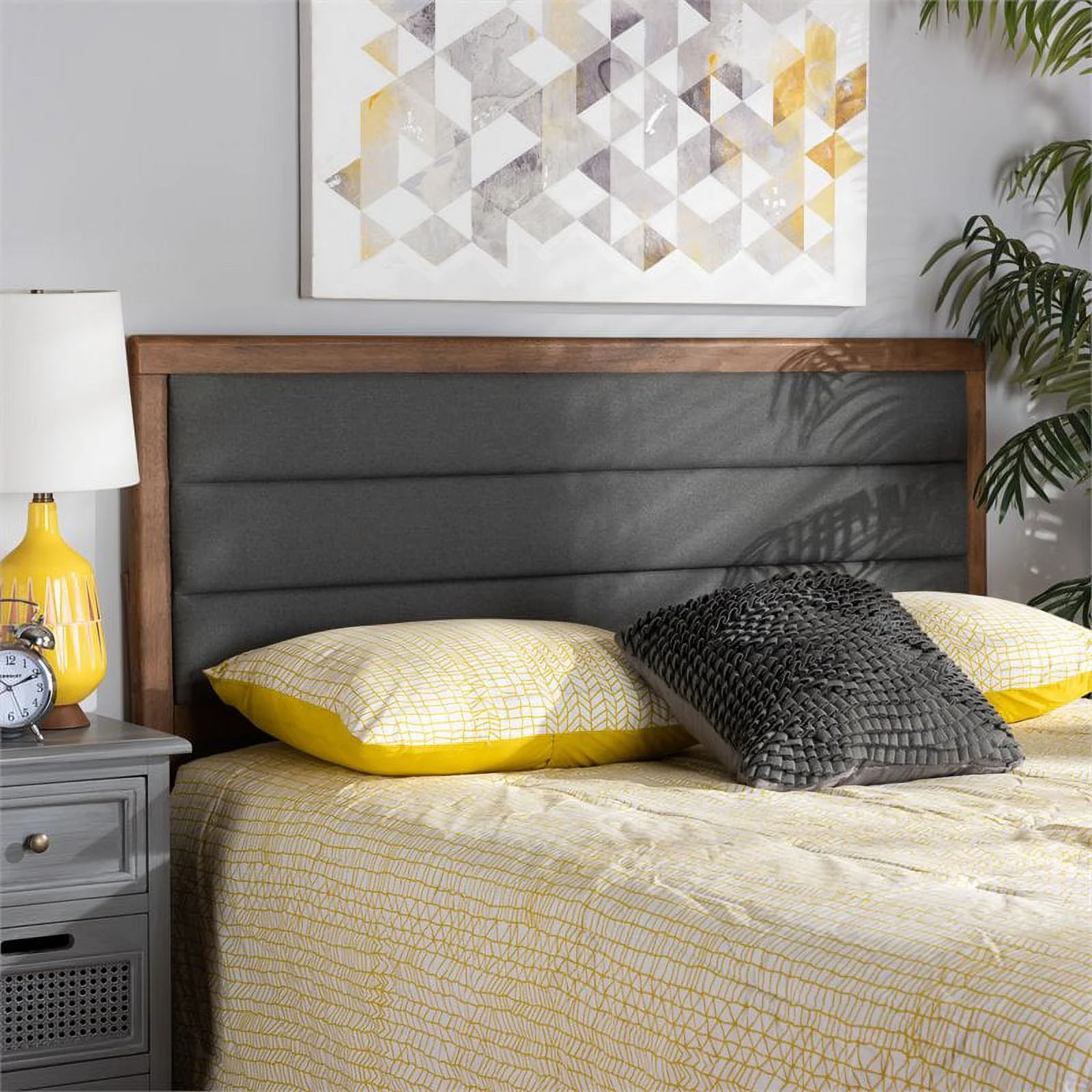 Bowery Hill Transitional Wood Full Size Headboard in Dark Gray/Walnut Brown