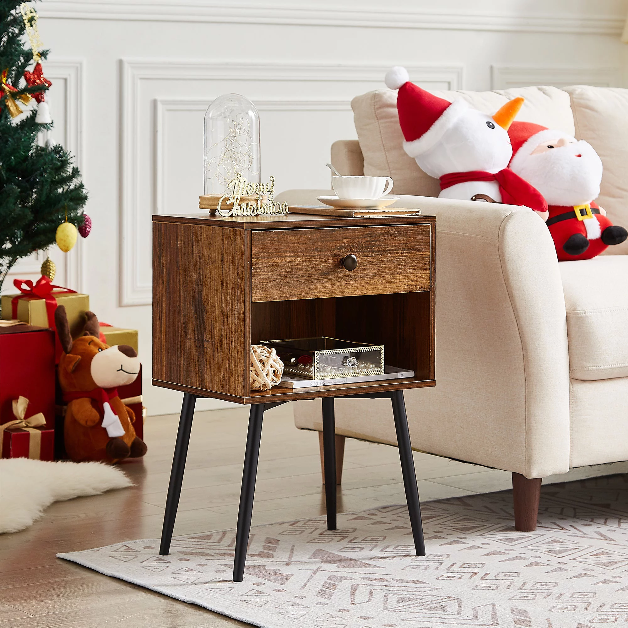 VECELO 3-Piece Bedroom Set with Full Size Metal Bed Frame and 2 Brown Nightstands