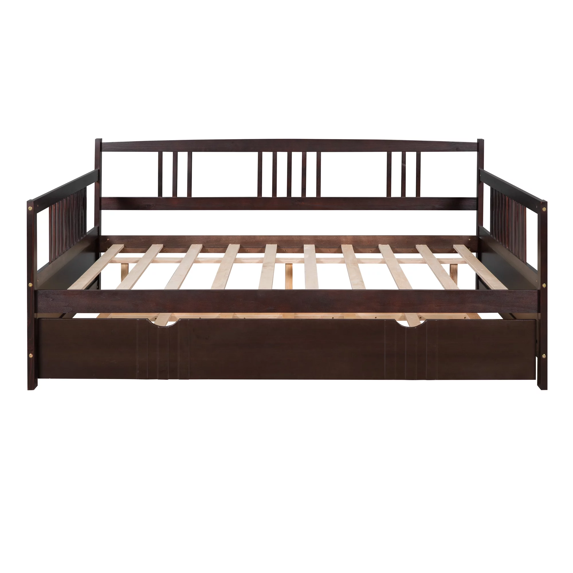 Espresso Sturdy & Durable High-quality Pine Solid Twin Daybed with Trundle Bed, Sofa Bed for Bedroom Living Room