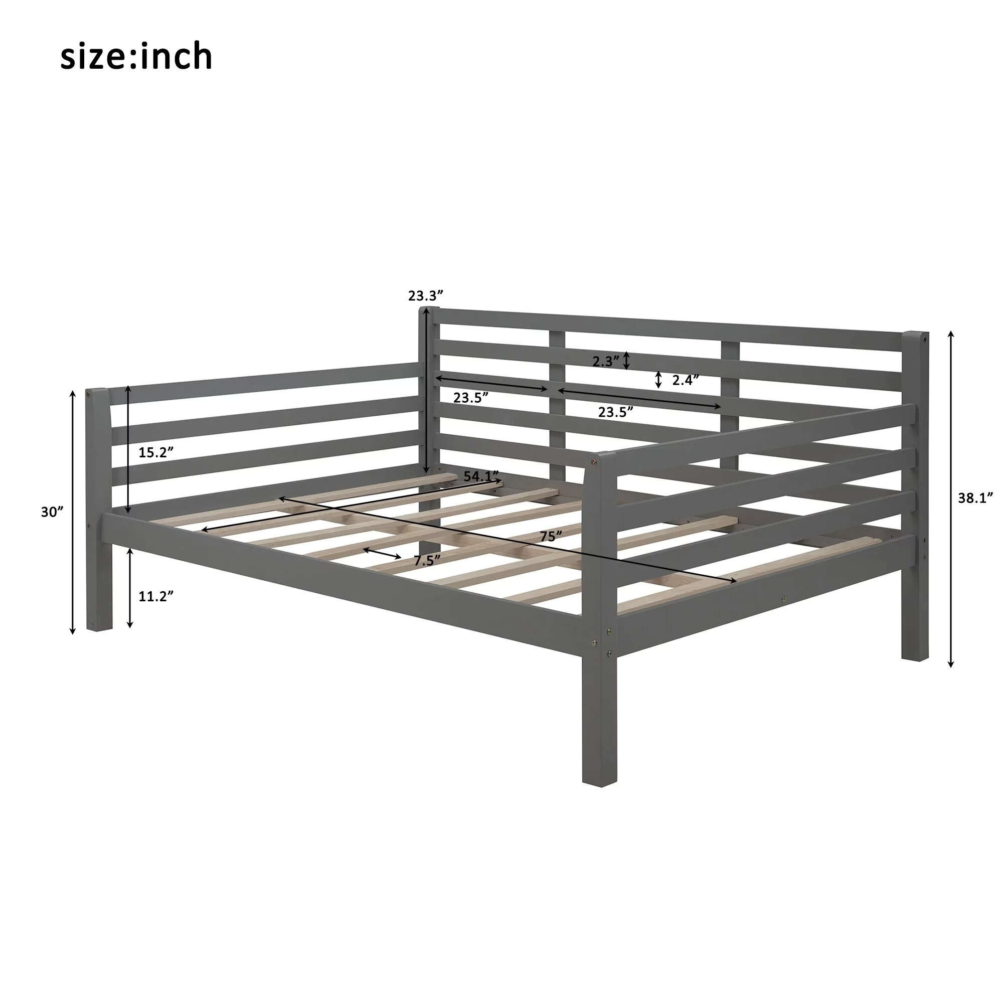 Gray High-Quality Pine Wood Full Size Daybed with Clean Lines, Solid Construction and Sturdy Frame, Assembly required