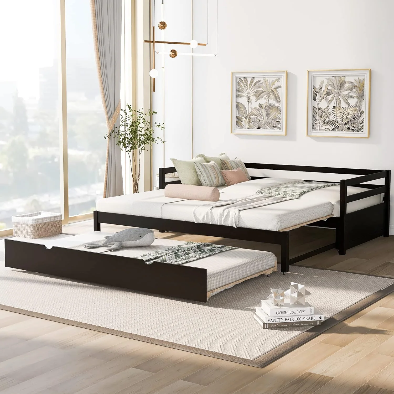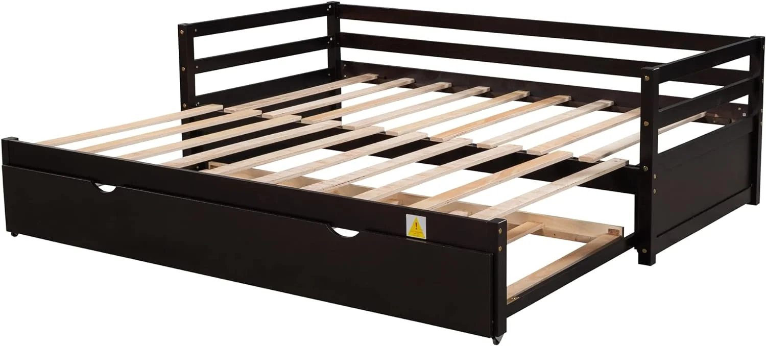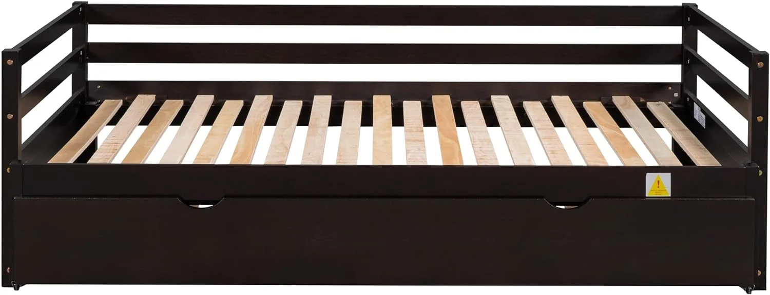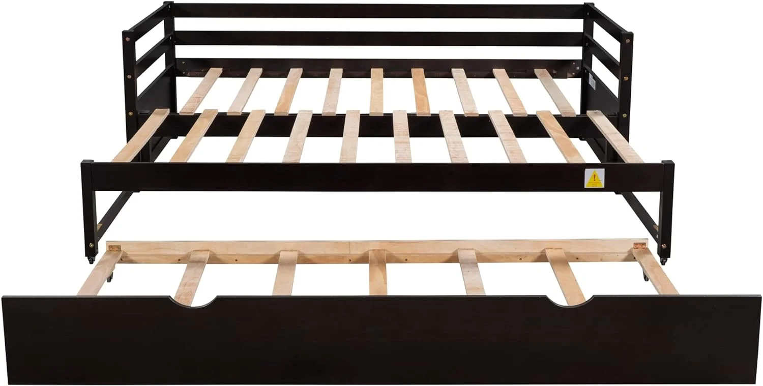 Daybed With Trundle, Extend Daybed To Double , Wood Daybed Size Trundle Daybed For Kids Teens Adults, Espresso