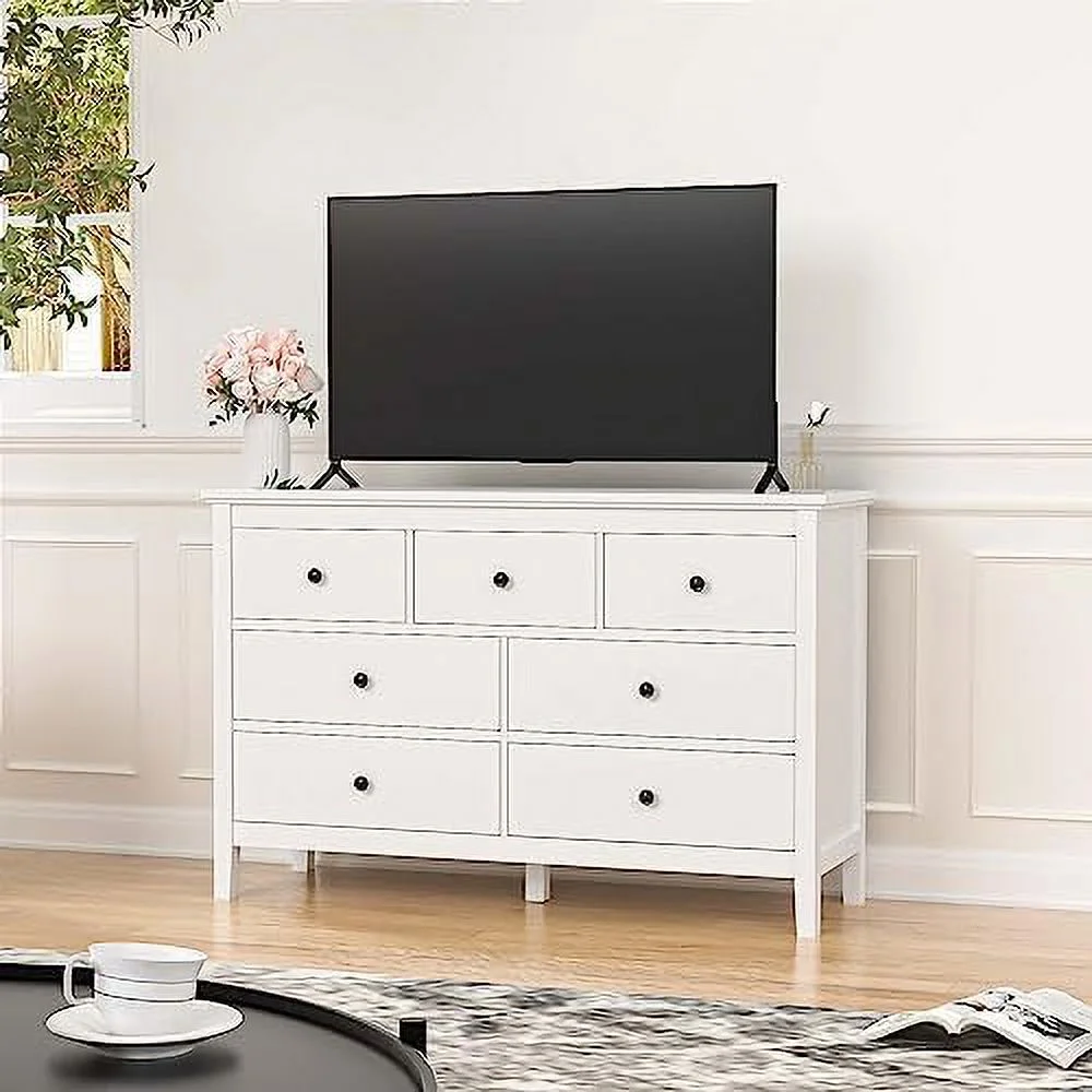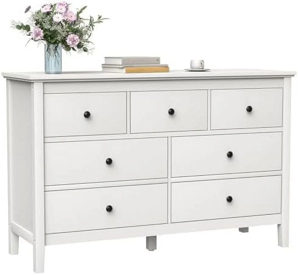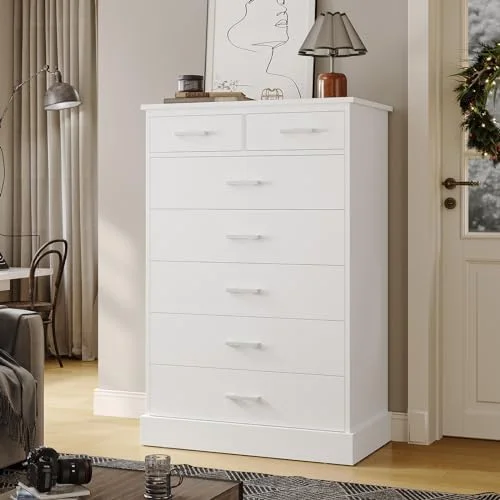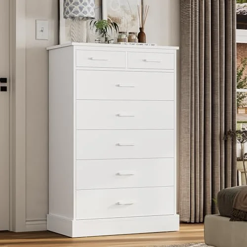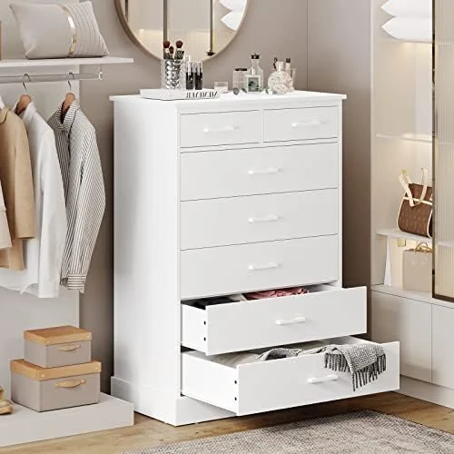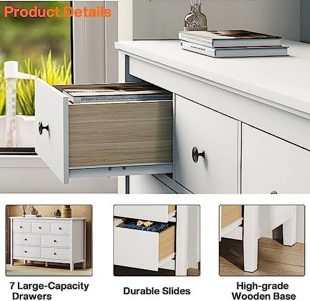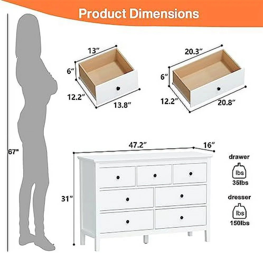 7 Drawer Dresser White Dresser Tall Dresser 23.6W x 15.7D x 46.7H in White Chest of Drawers with Large Space for