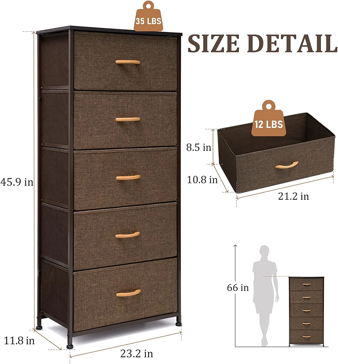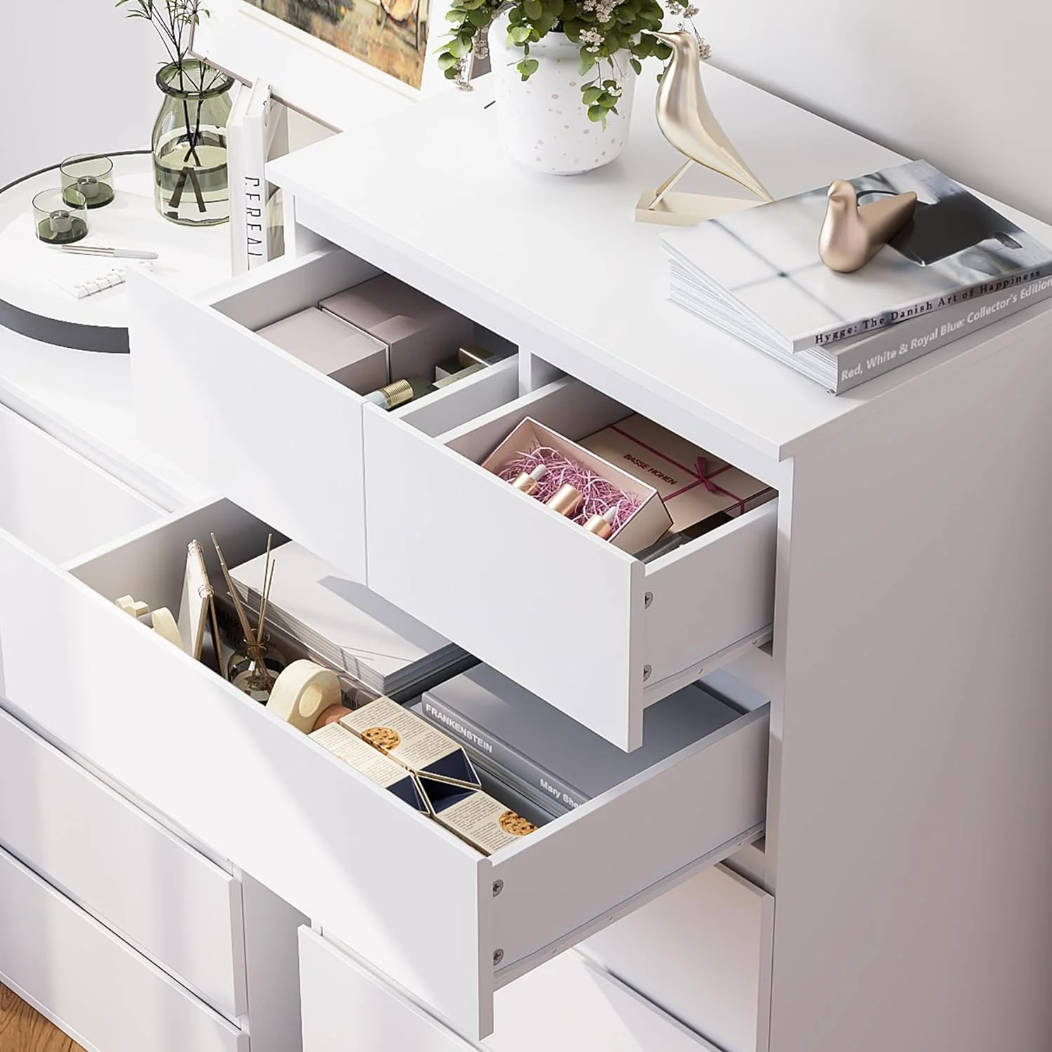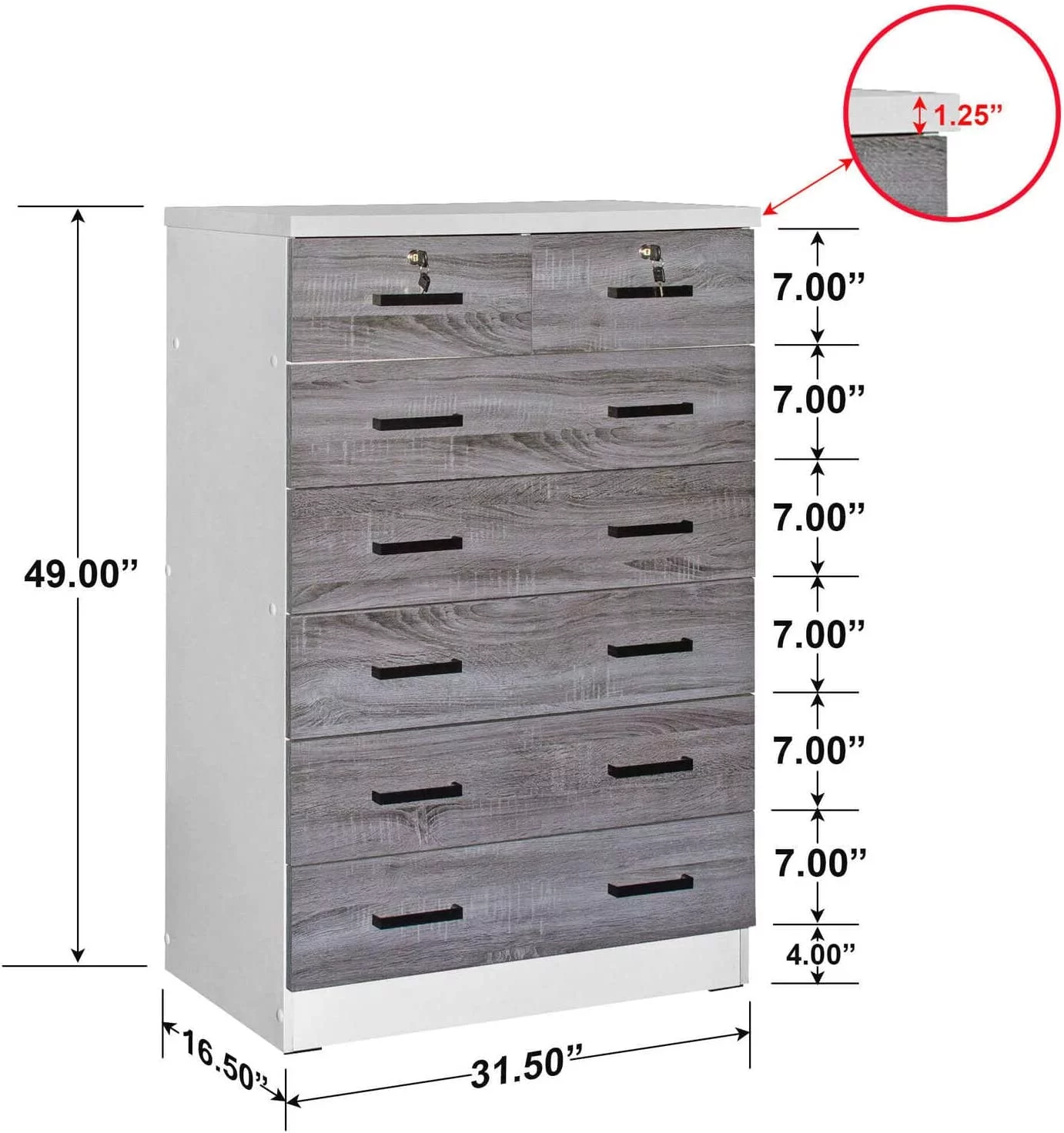 7 Drawer Dresser White Dresser Tall Dresser 23.6W x 15.7D x 46.7H in White Chest of Drawers with Large Space for