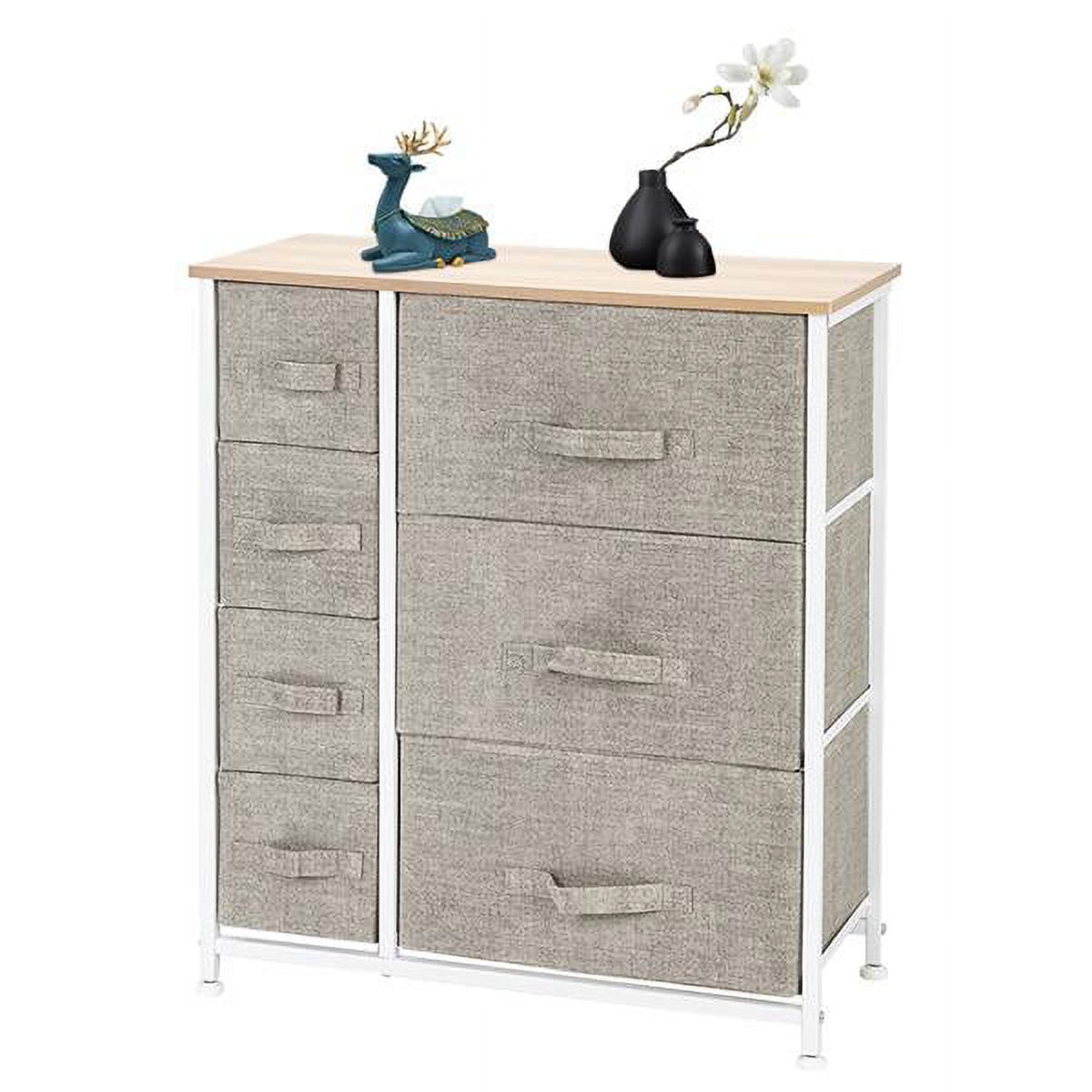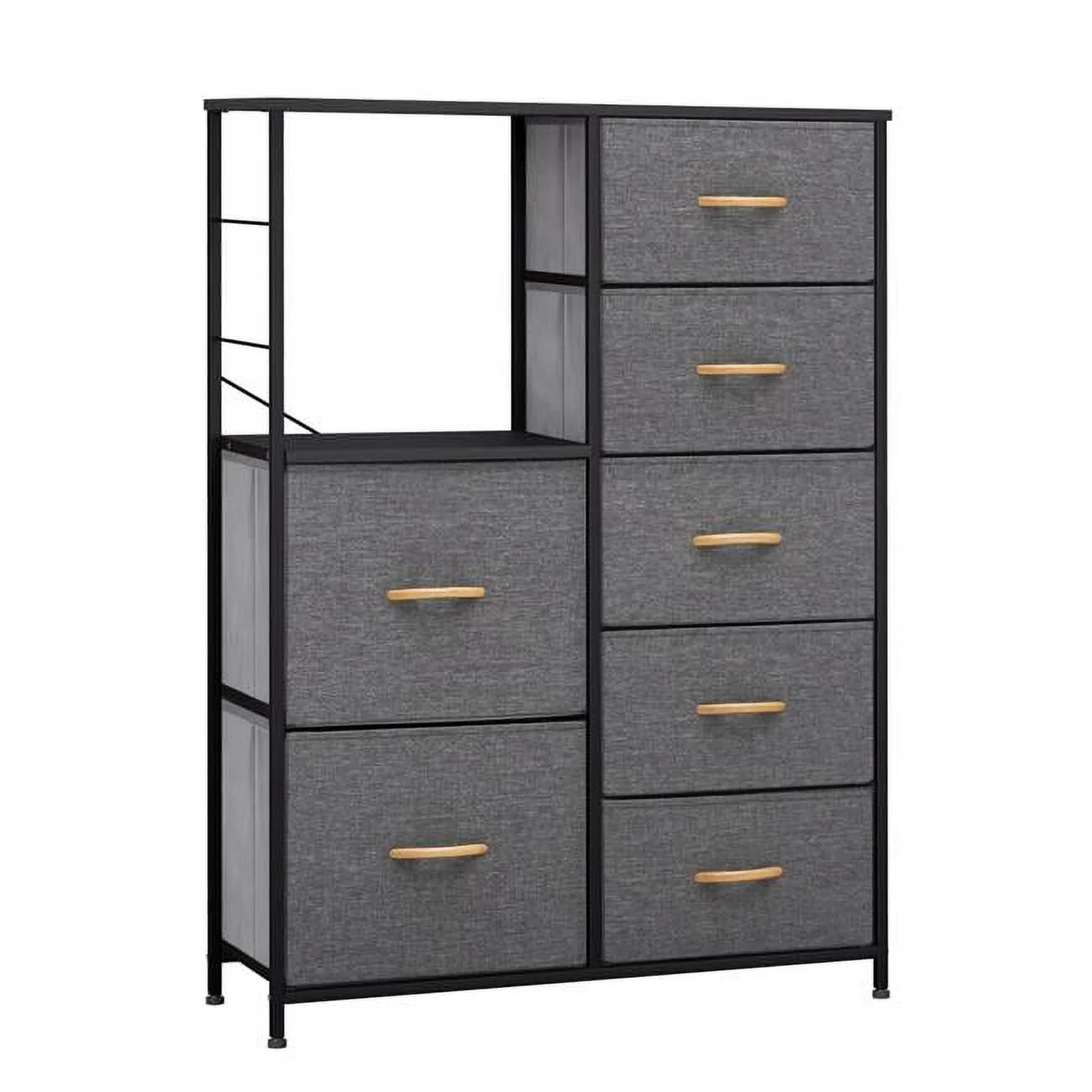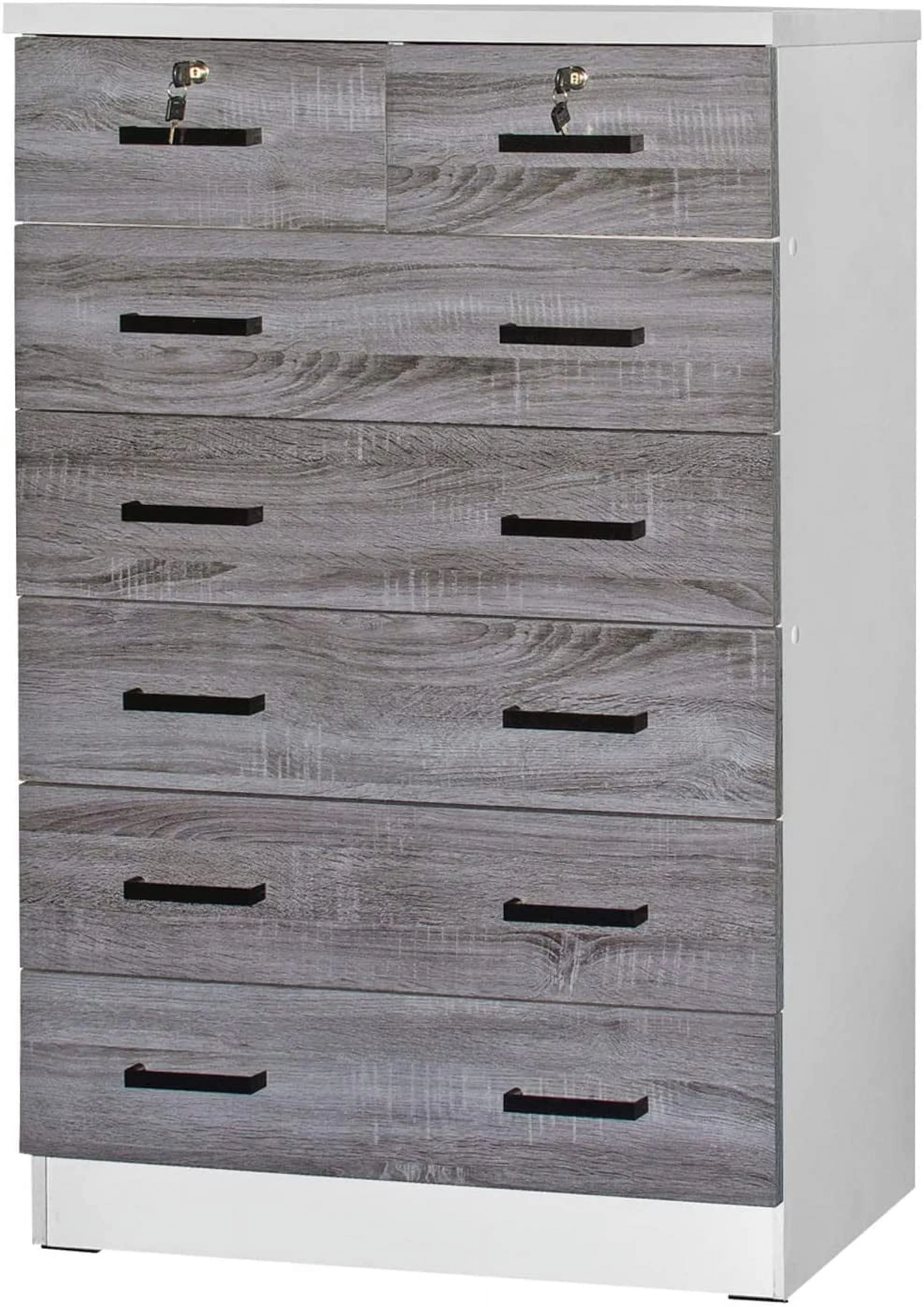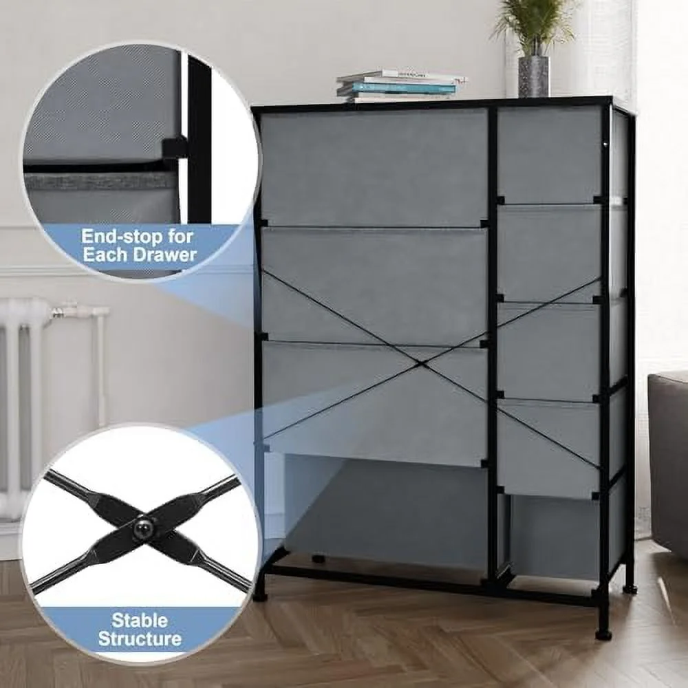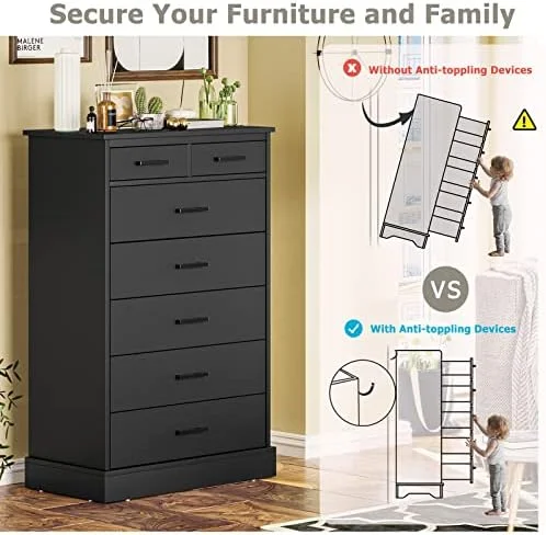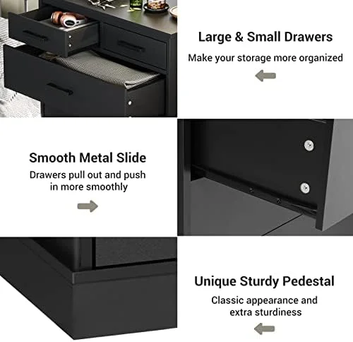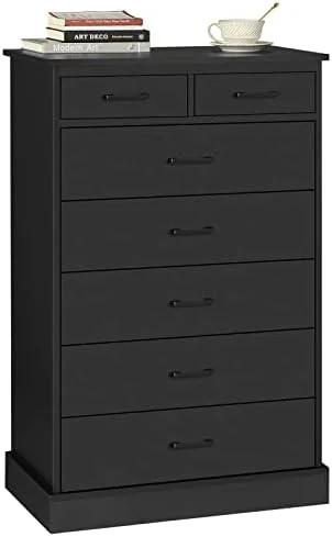 LIHONG 7-Drawer Chest, Wood Storage Dresser Cabinet with Wheels, Black