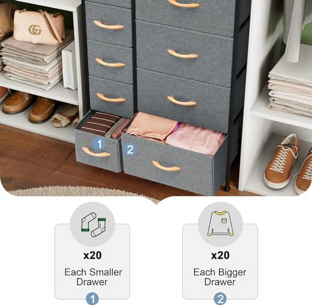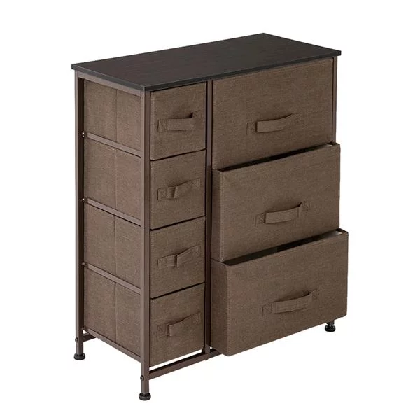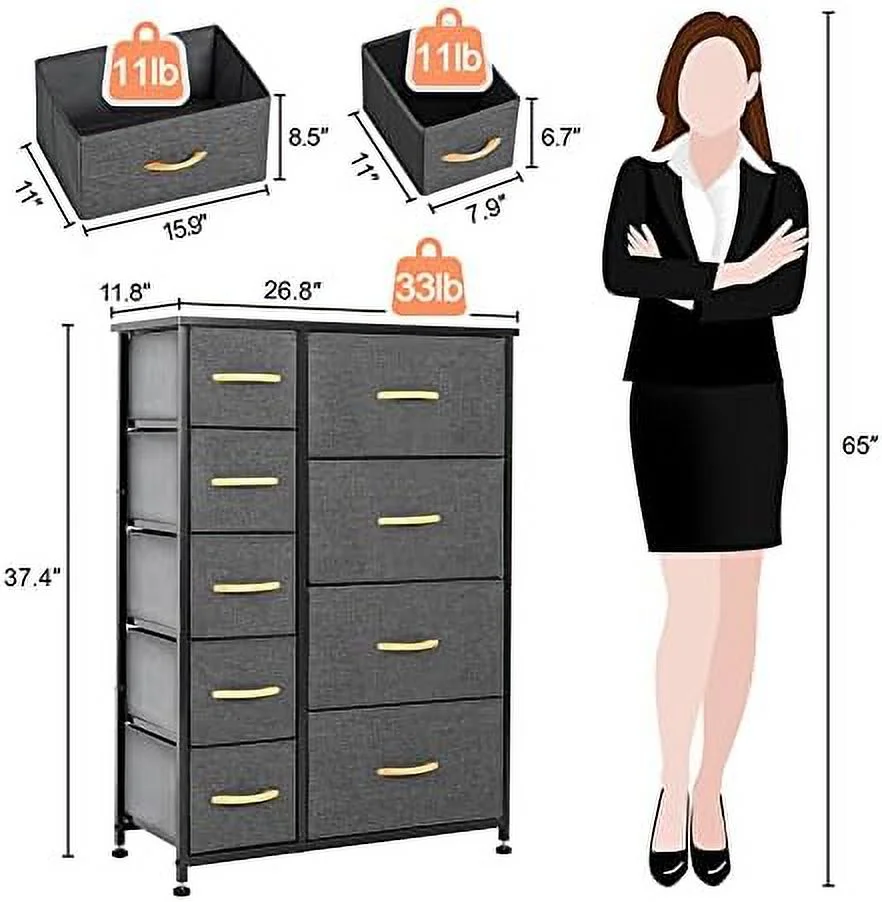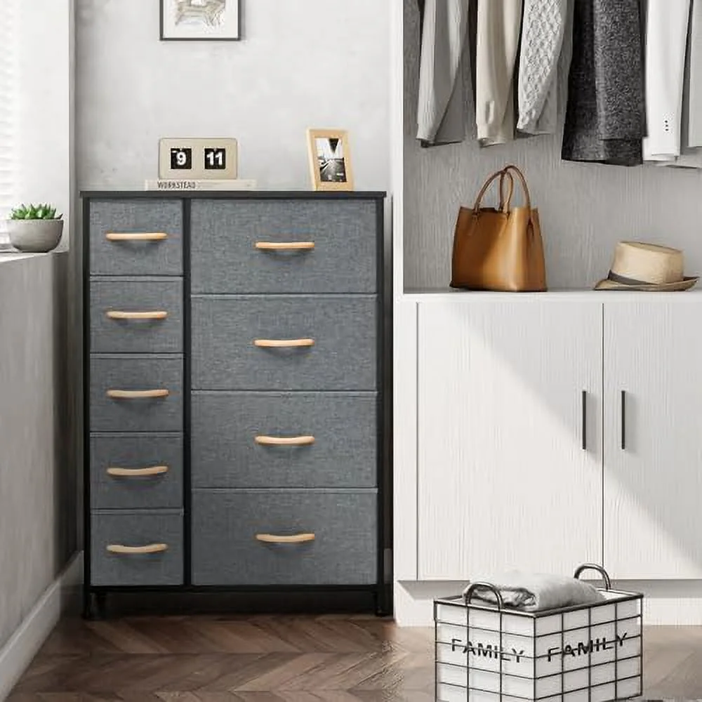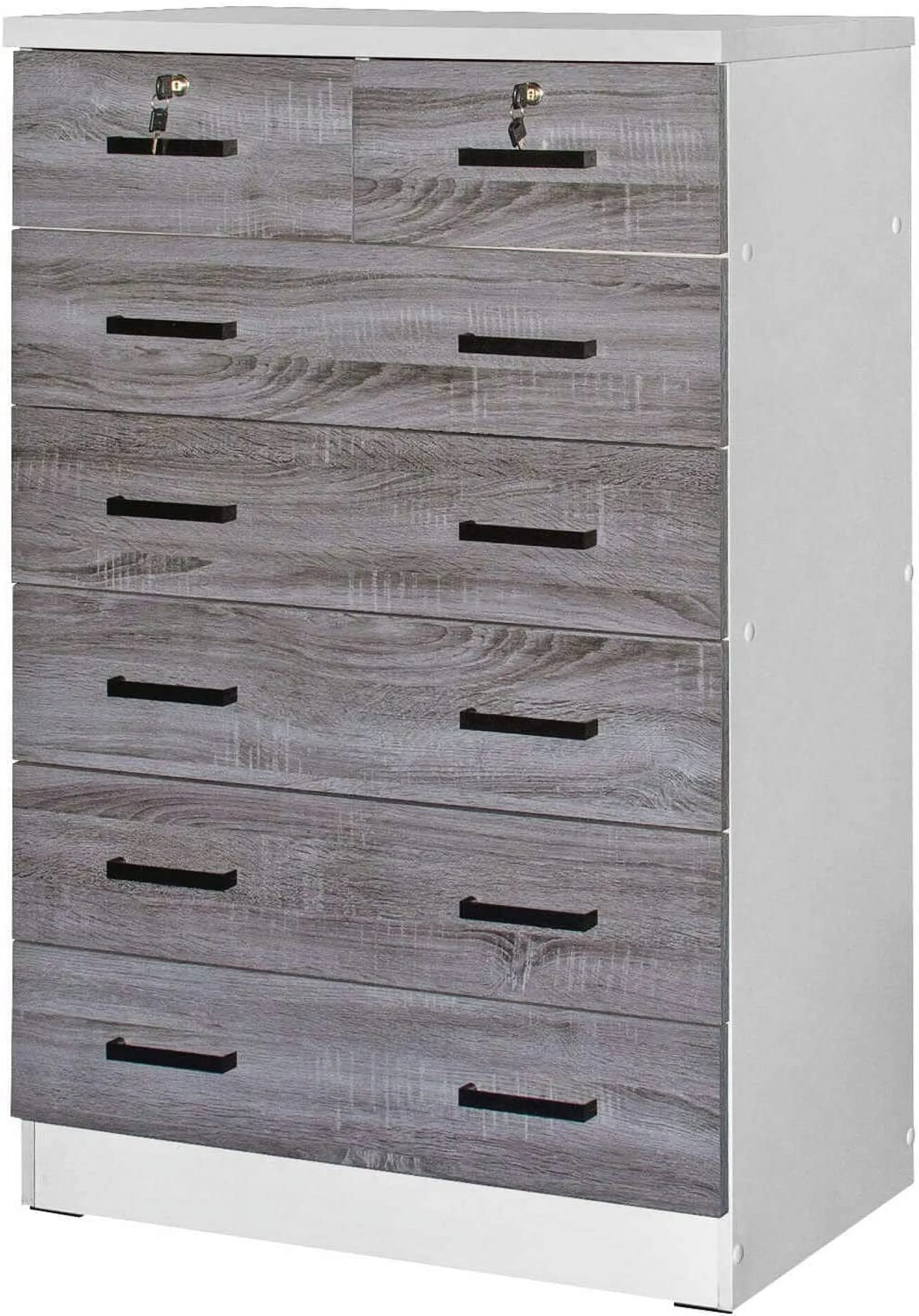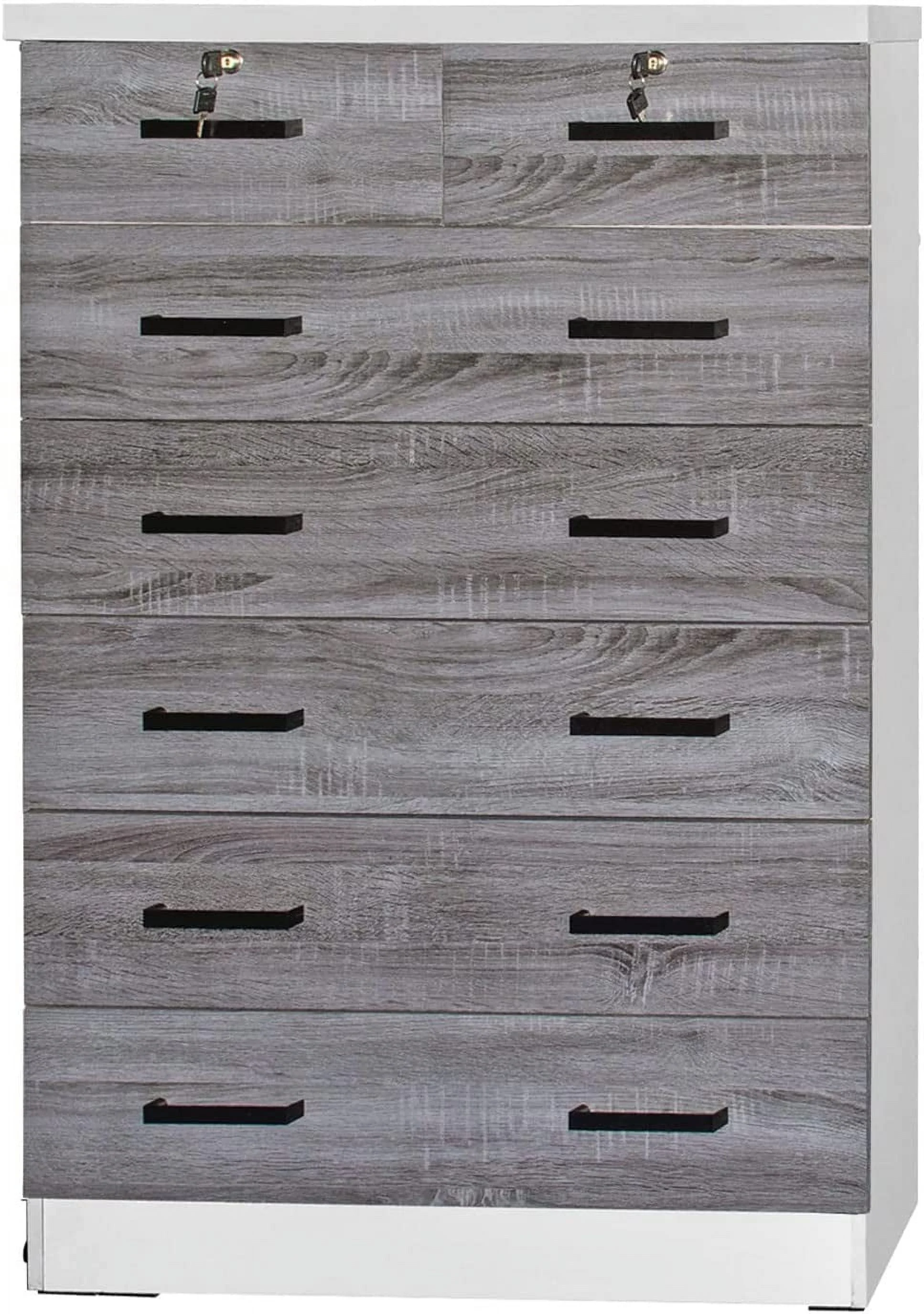 LIHONG 7-Drawer Chest, Wood Storage Dresser Cabinet with Wheels, Black