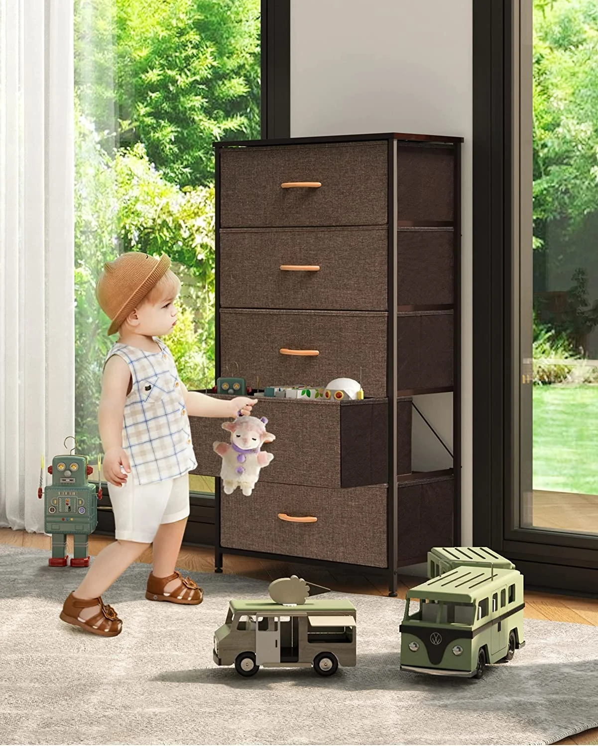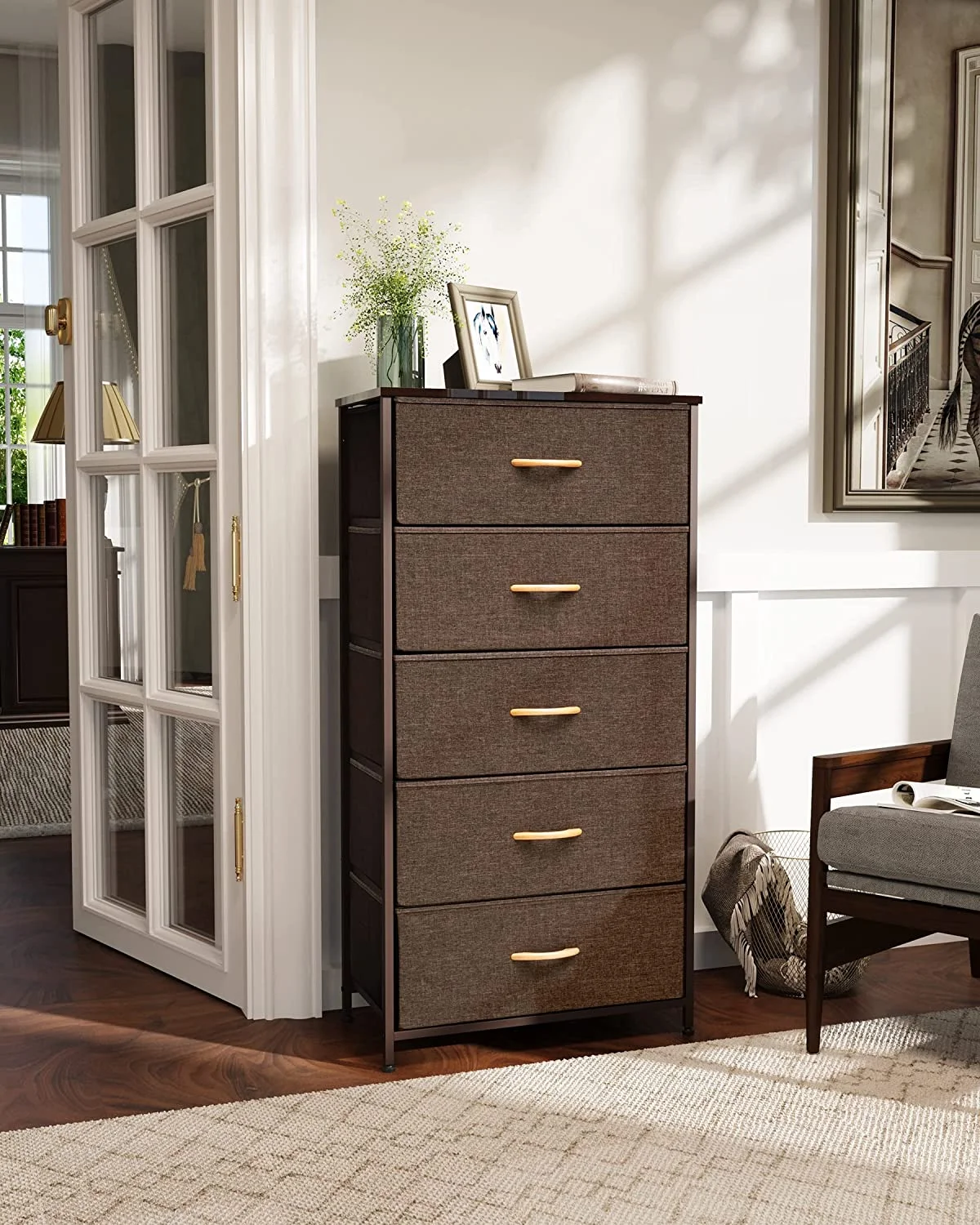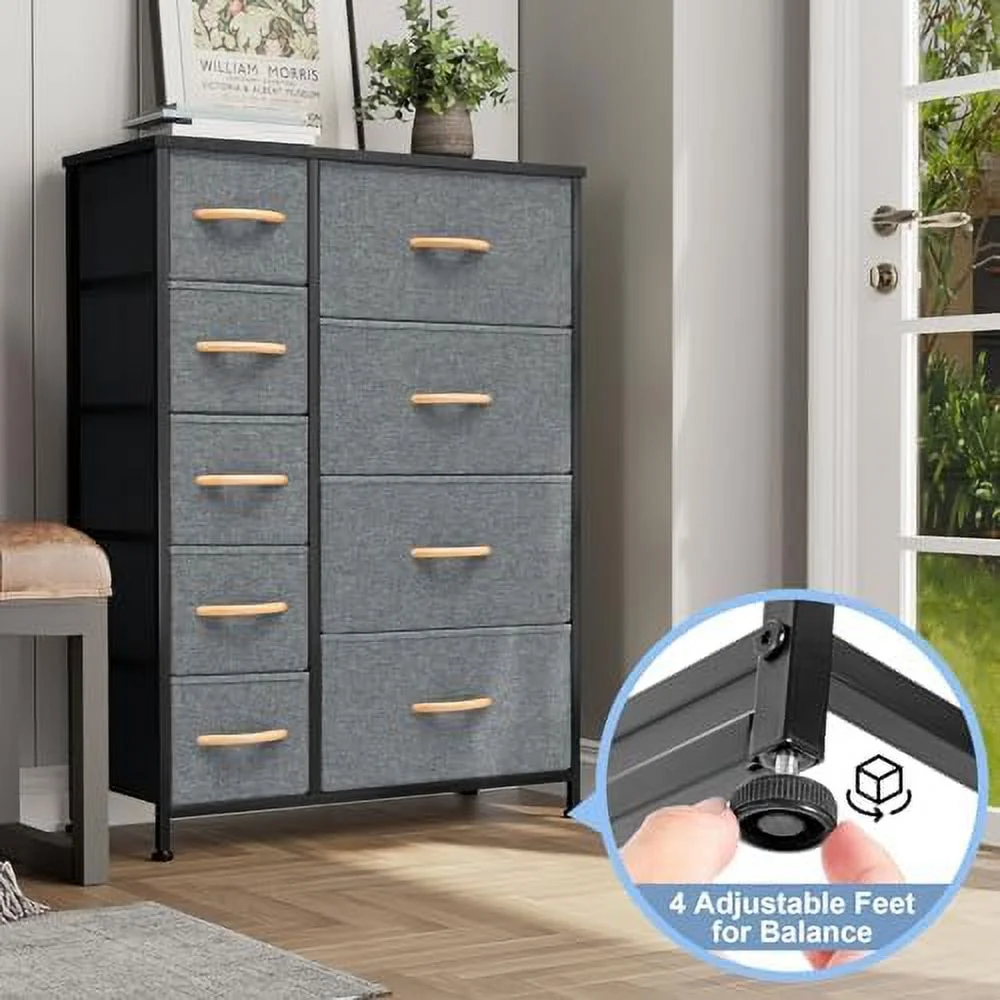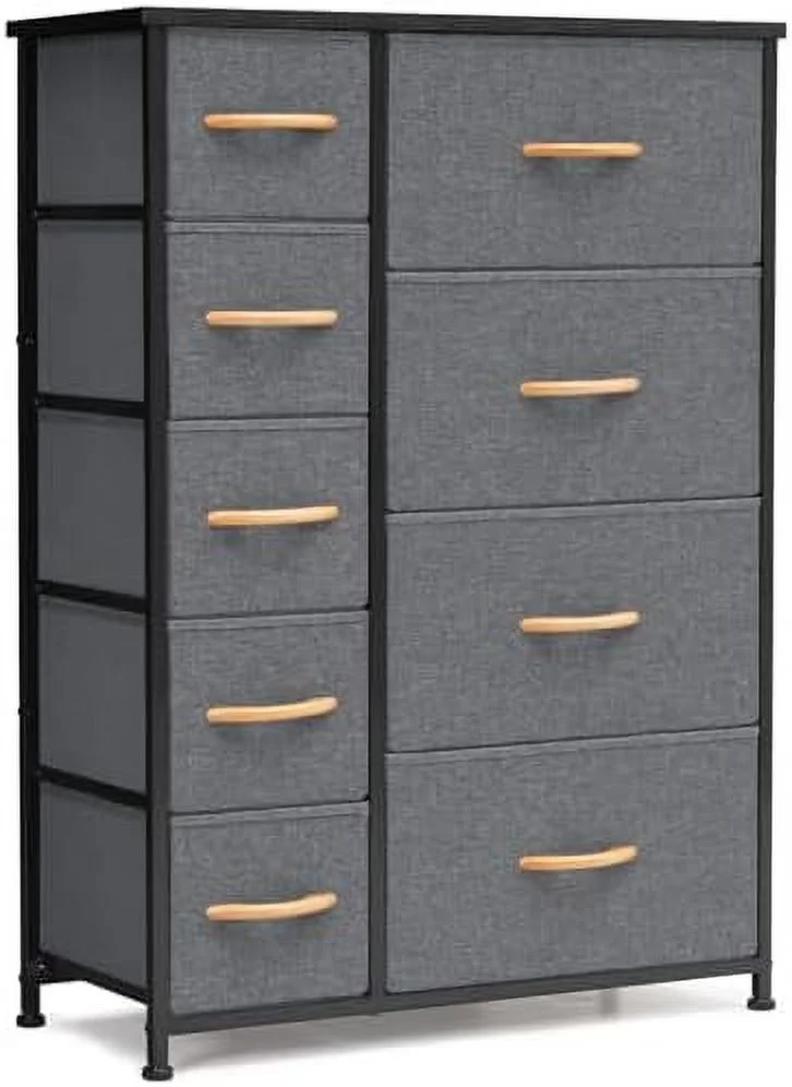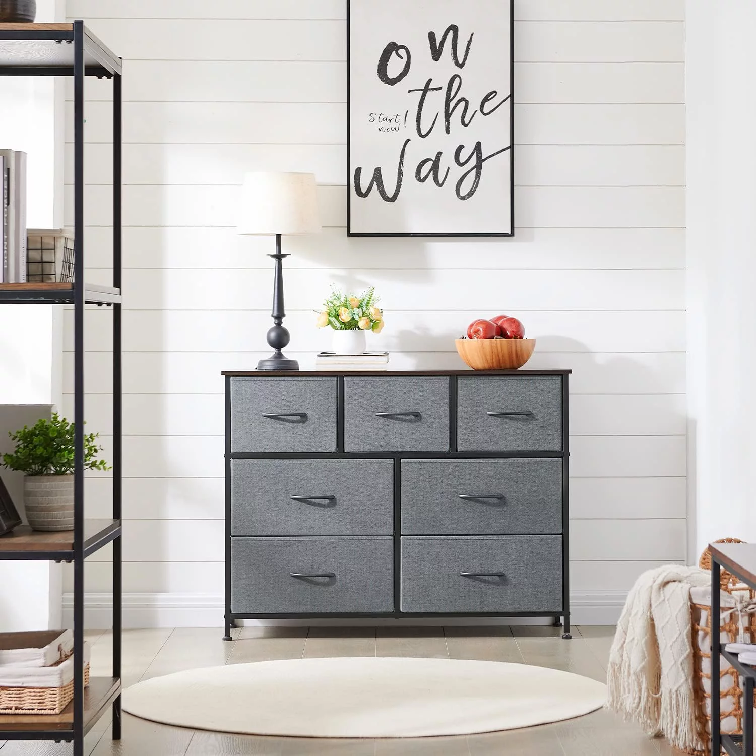 LIHONG 7-Drawer Chest, Wood Storage Dresser Cabinet with Wheels, Black