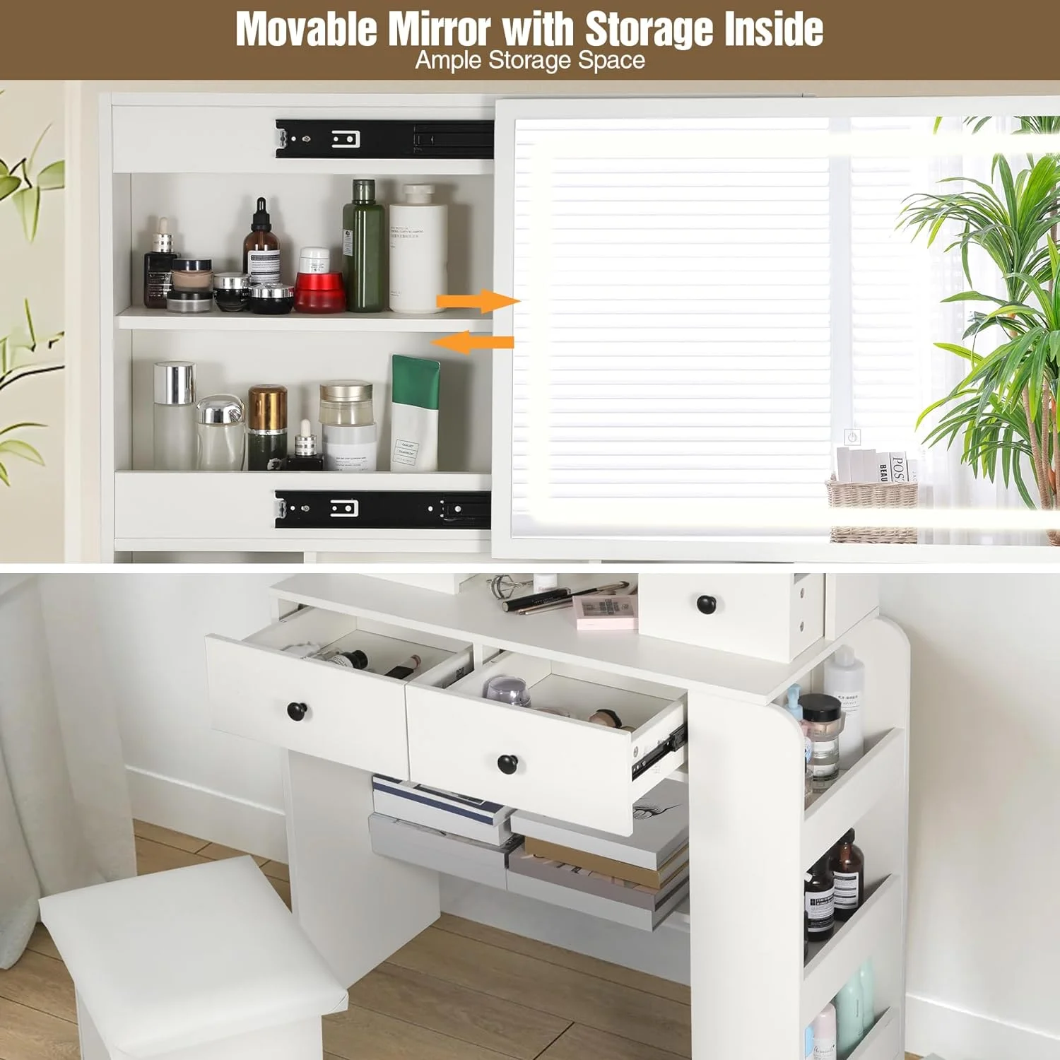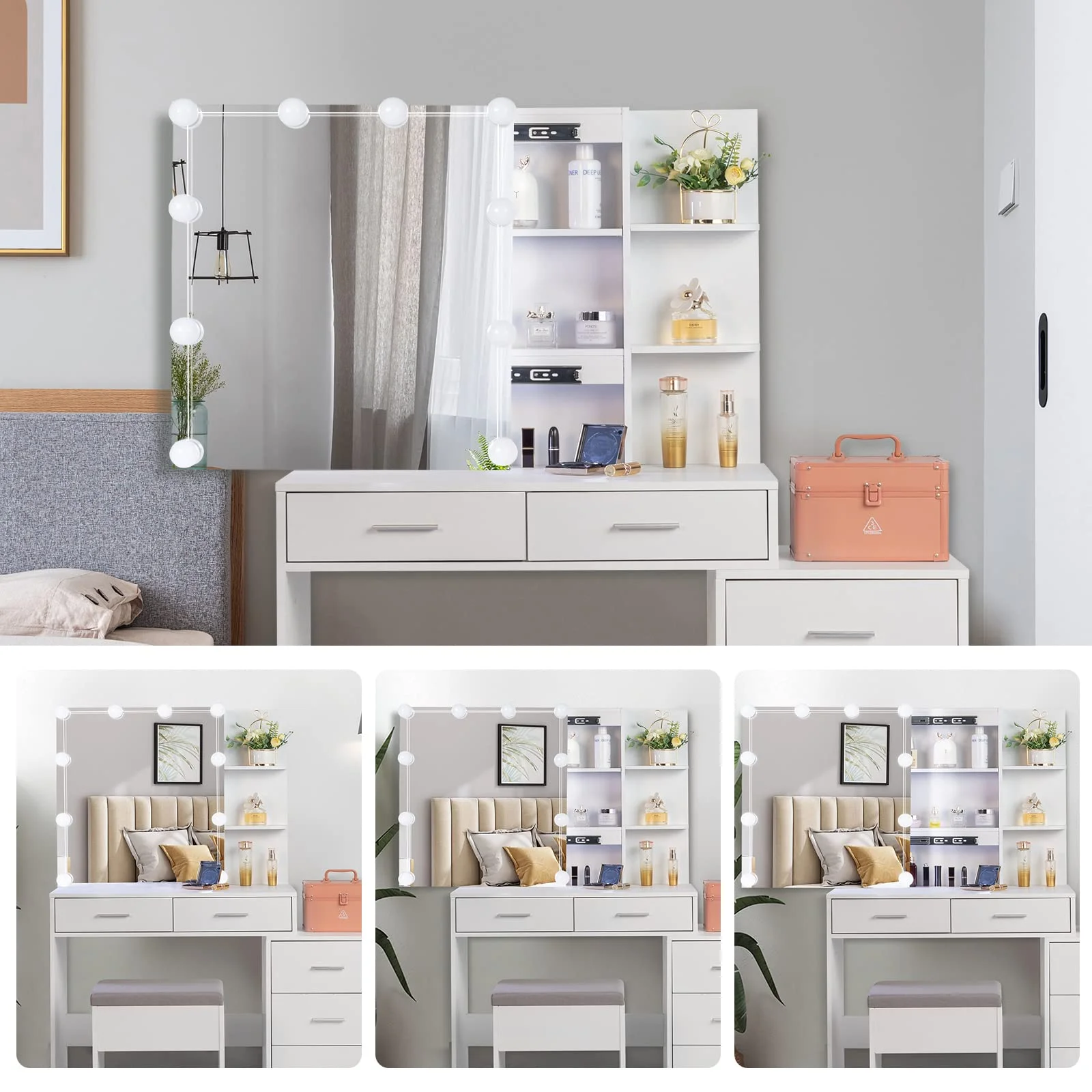 Jarbalai Makeup Vanity for Bedroom Makeup Table with Mirror and Lights, White
