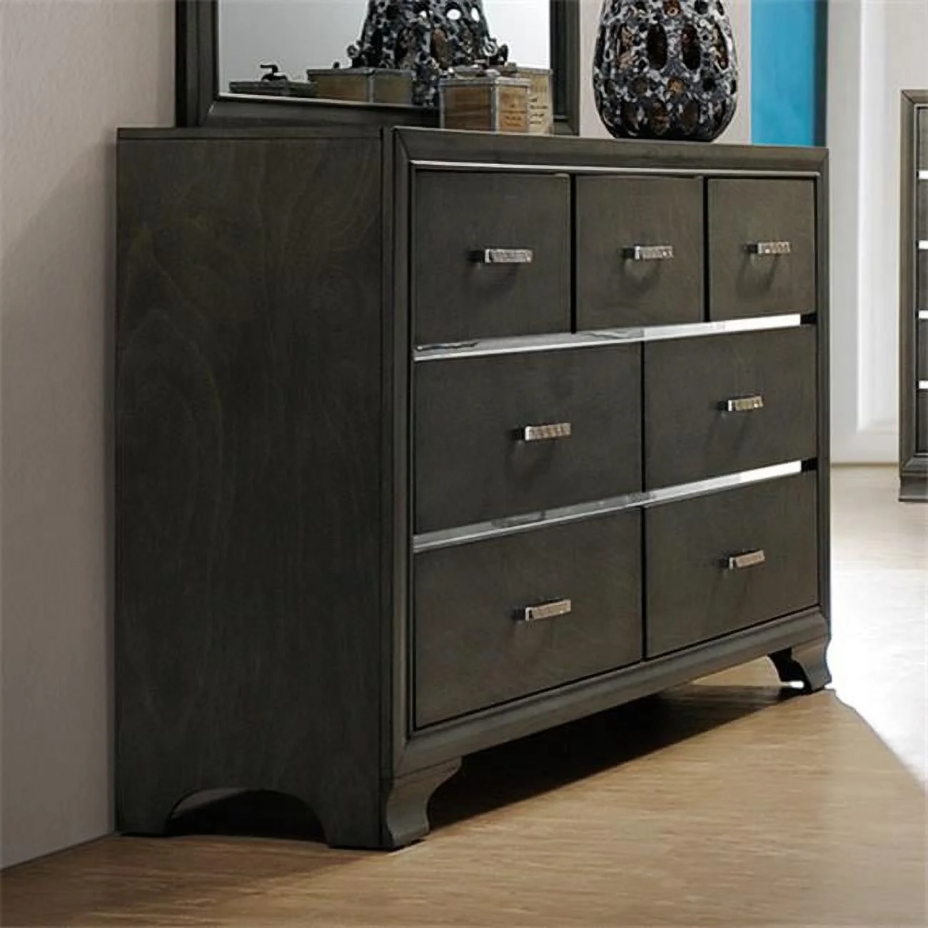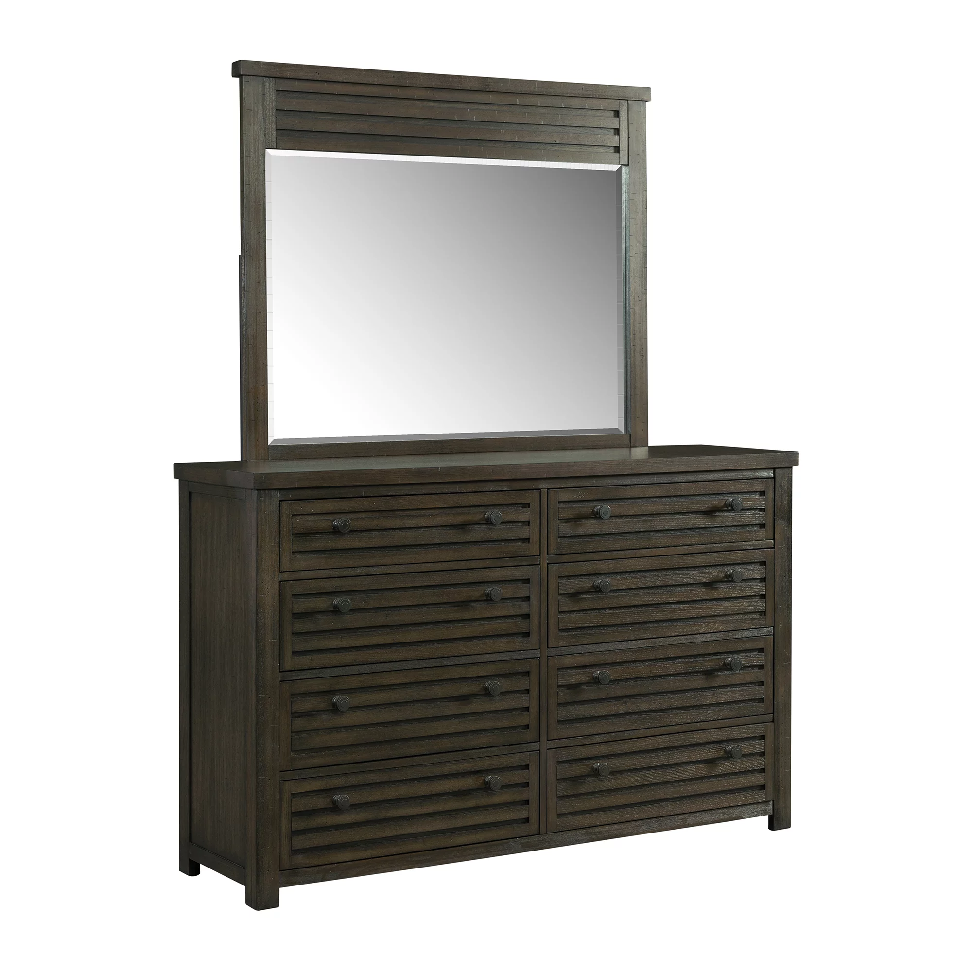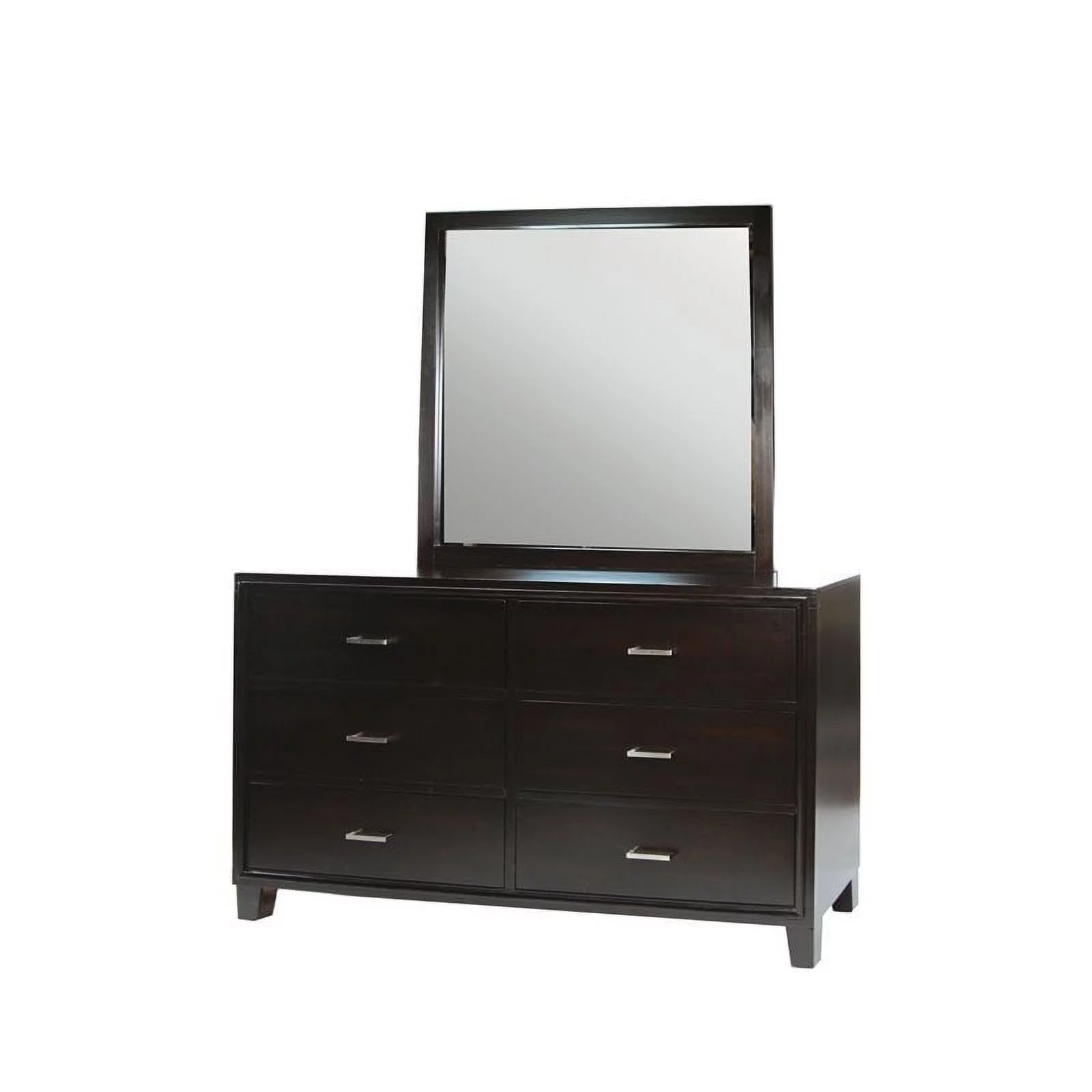 Bowery Hill Contemporary Solid Wood Dresser and Mirror in Chocolate