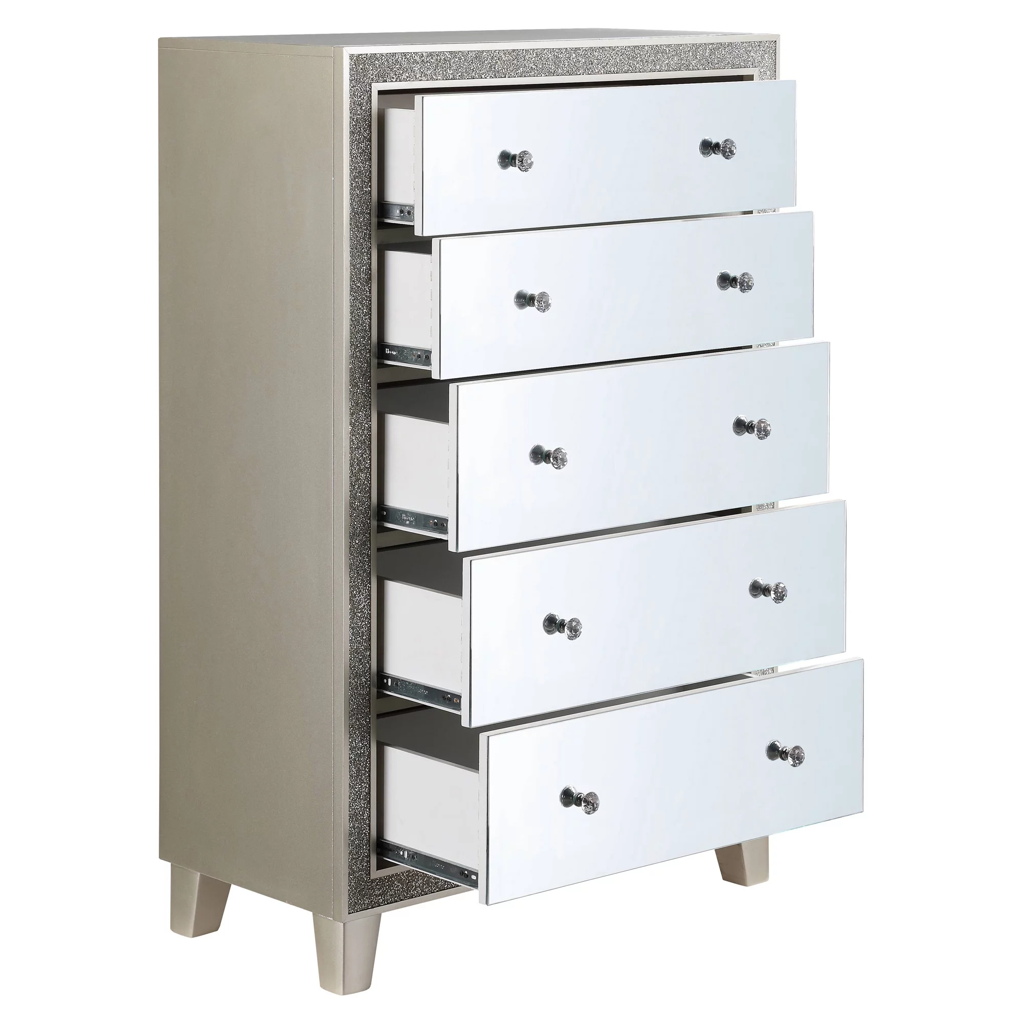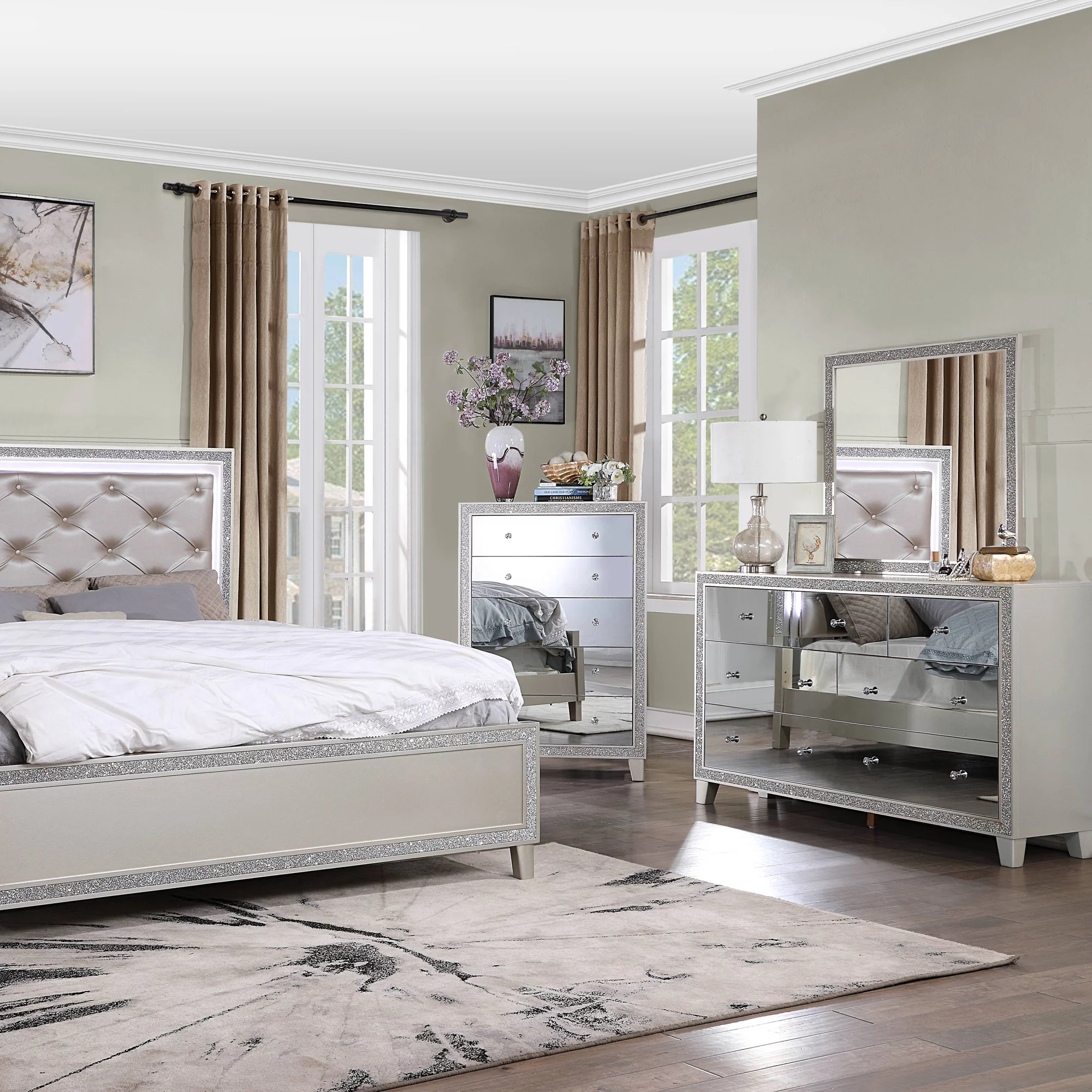 Furniture of America Mary Hollywood Glam Vanity Chest and Mirror with USBs & Outlets by White