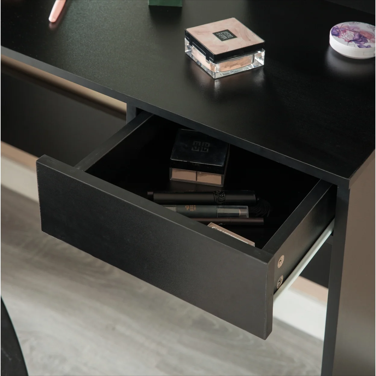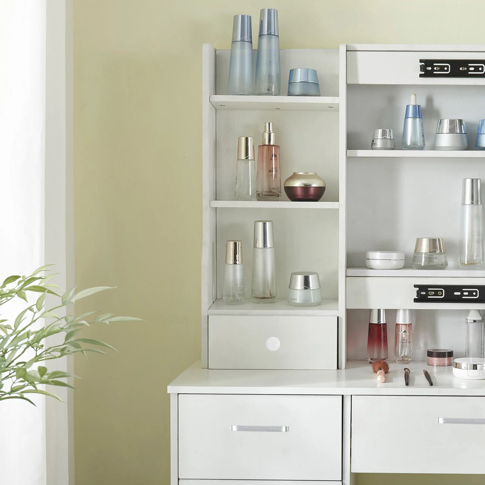 Modern Wooden Dressing Table with Drawer, Mirror and Shelves for The Dining Room, Entryway and Bedroom