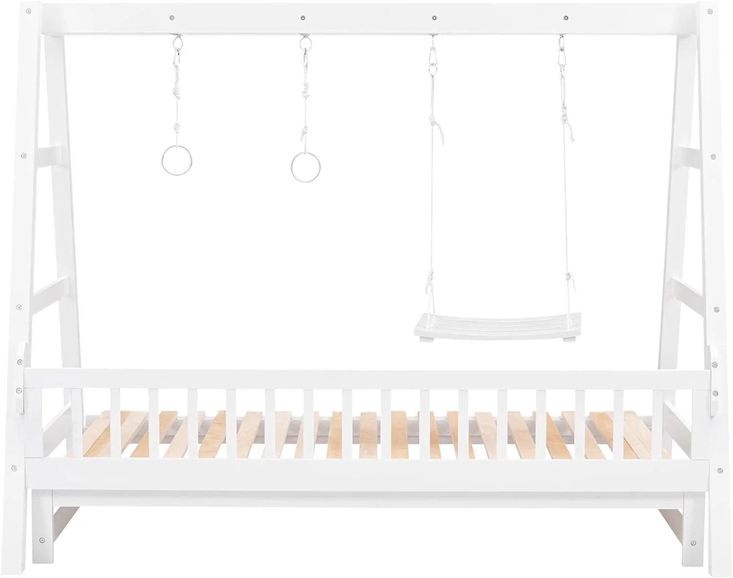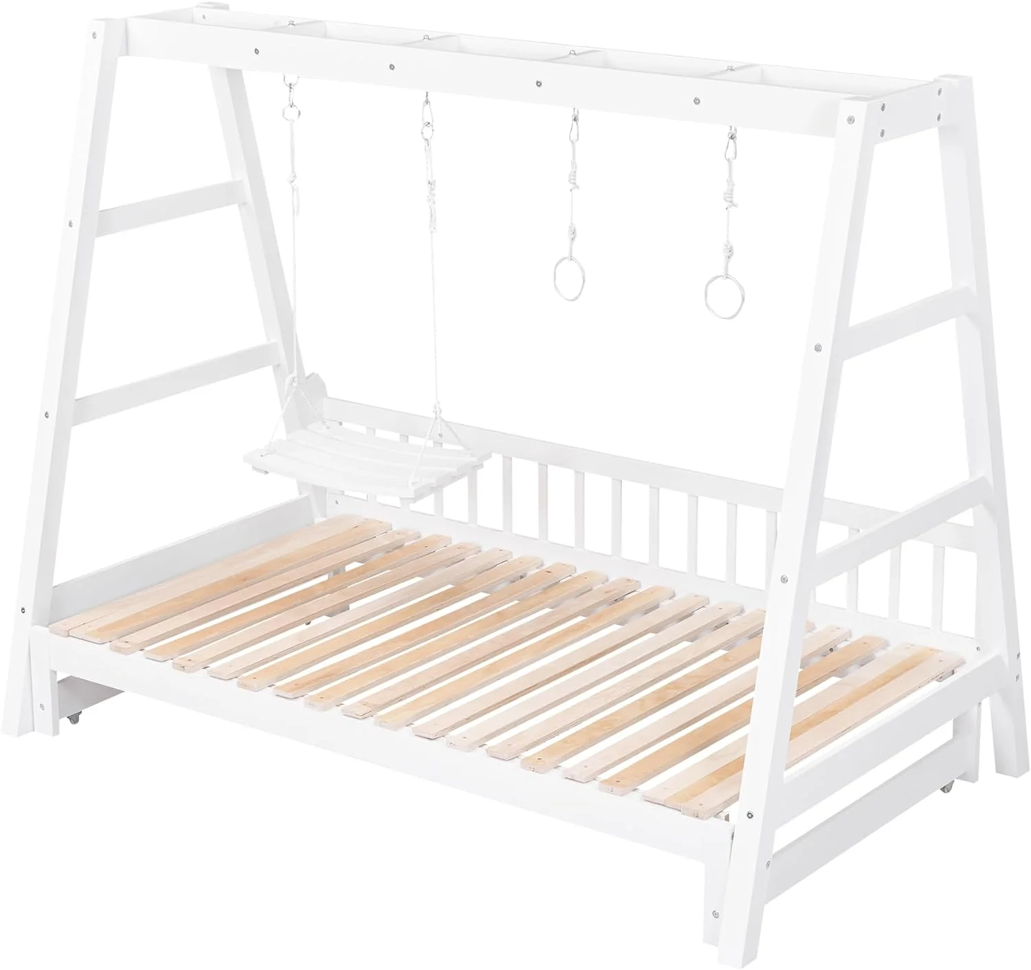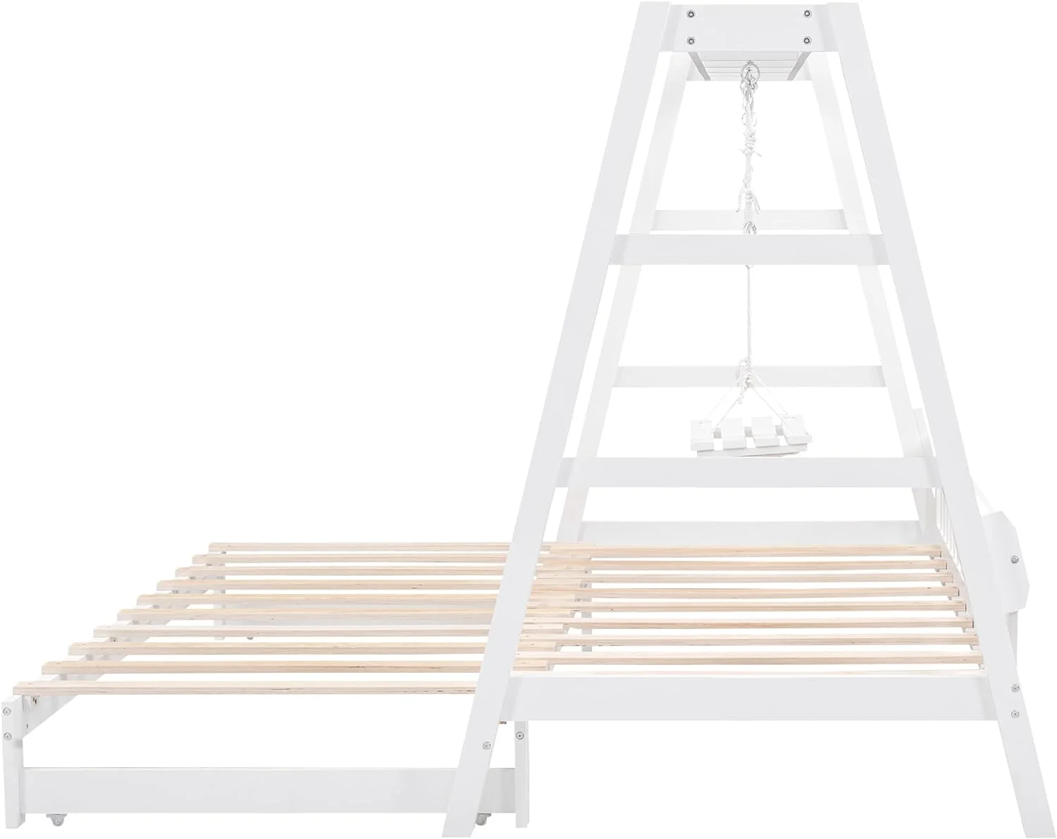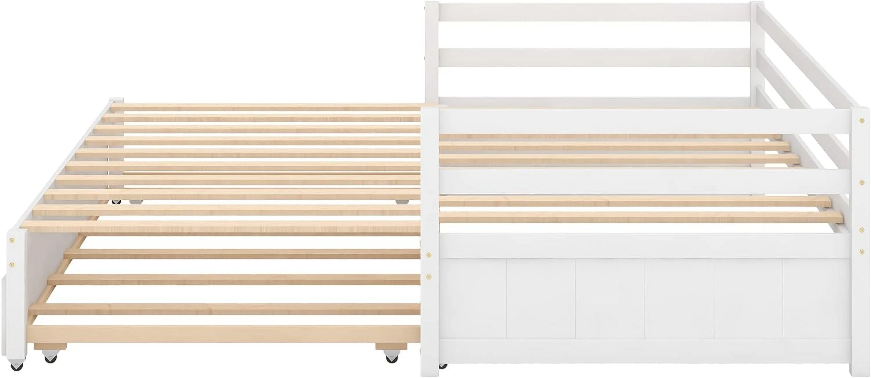 Extedable Daybed With Trudle, Swig Ad Rig Hadles, Double Size Bed, Woode Daybed With Trudle For Kids Girls Boys - White