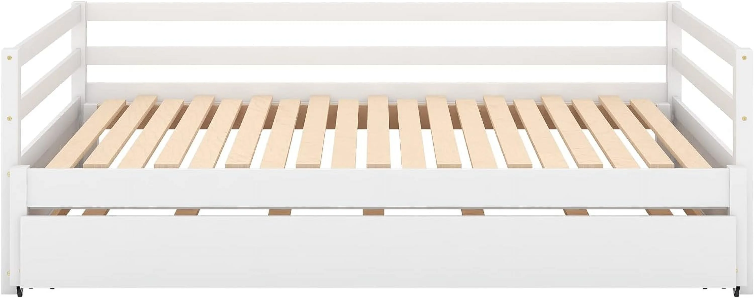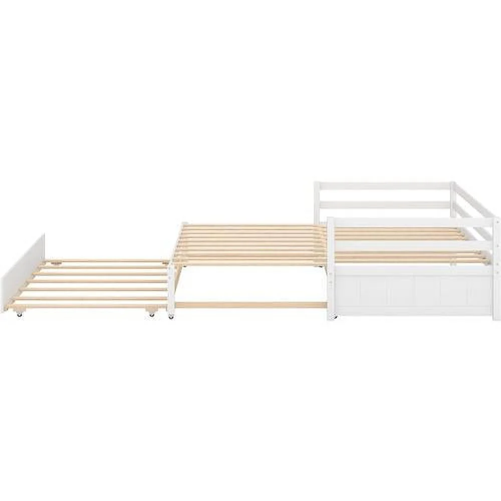 Daybed With Trudle Wood Extedable Day Bed Frame To Double Size Daybeds Woode Sofa Beds For Livig Room Bedroom, White