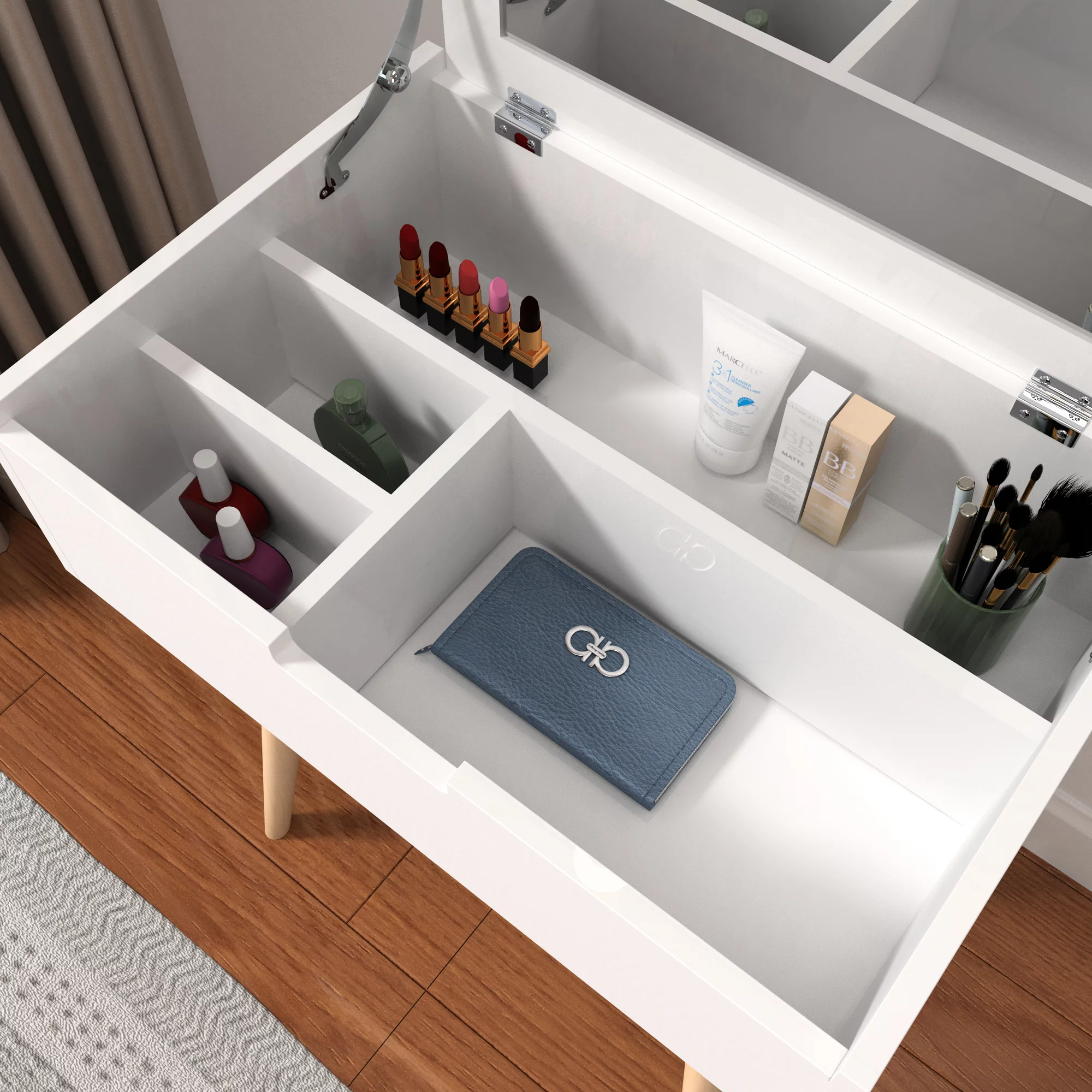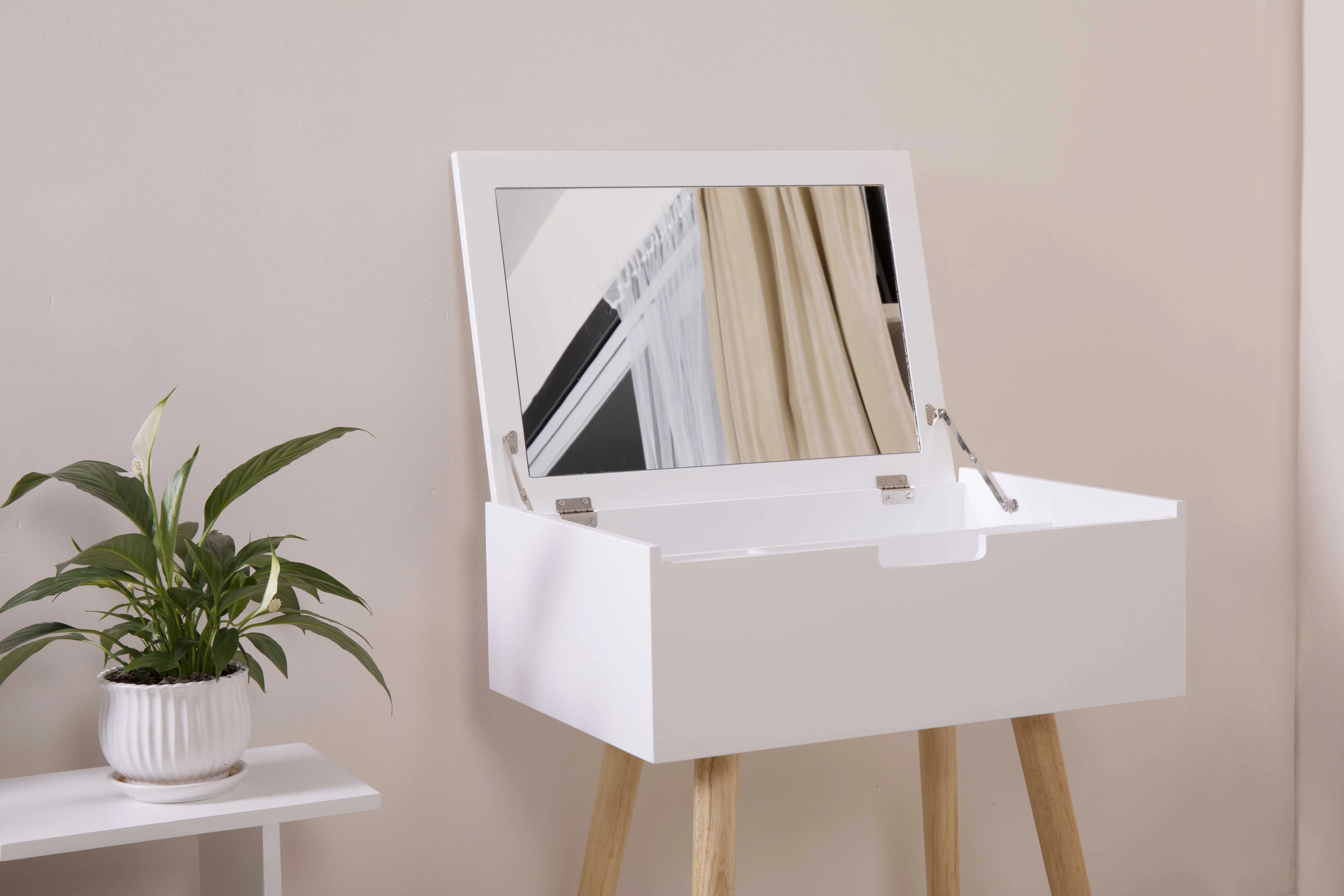 Organizedlife Makeup Dressing Table with Flip Mirror with Divided,Vanity Table Storage Box White