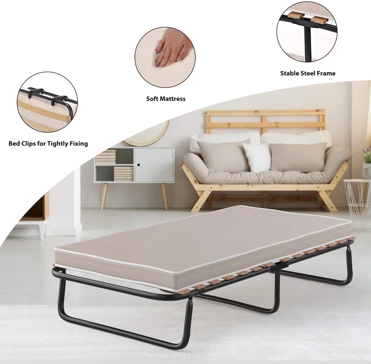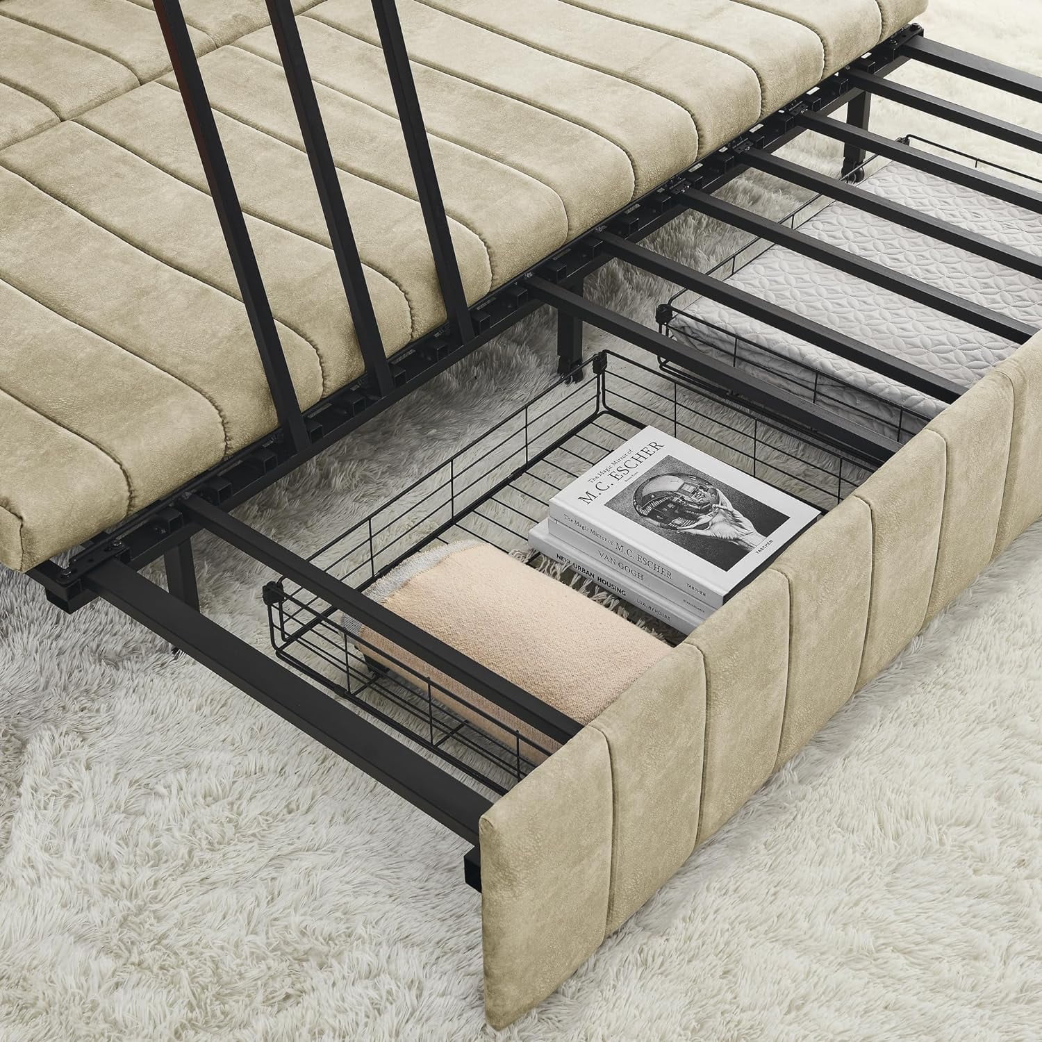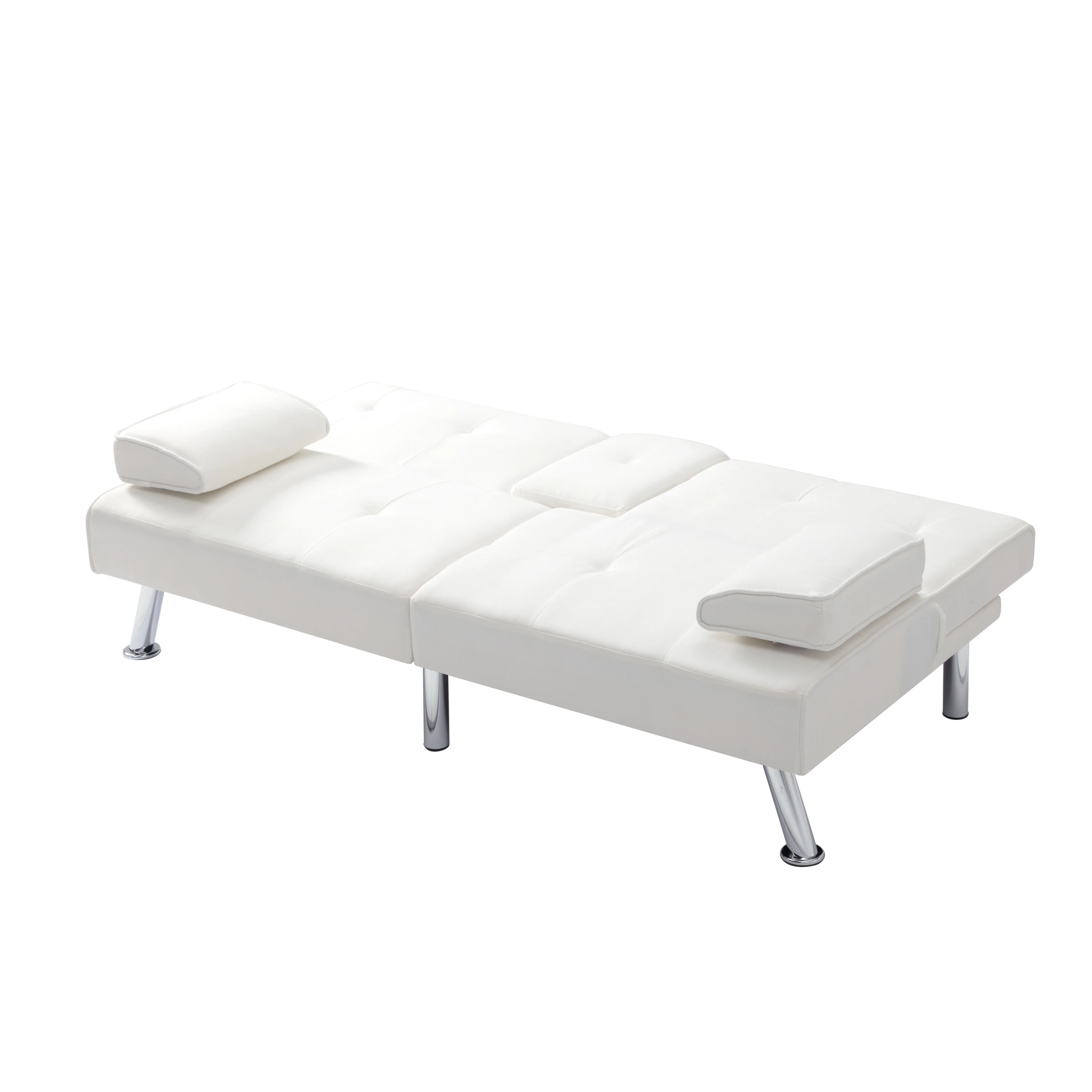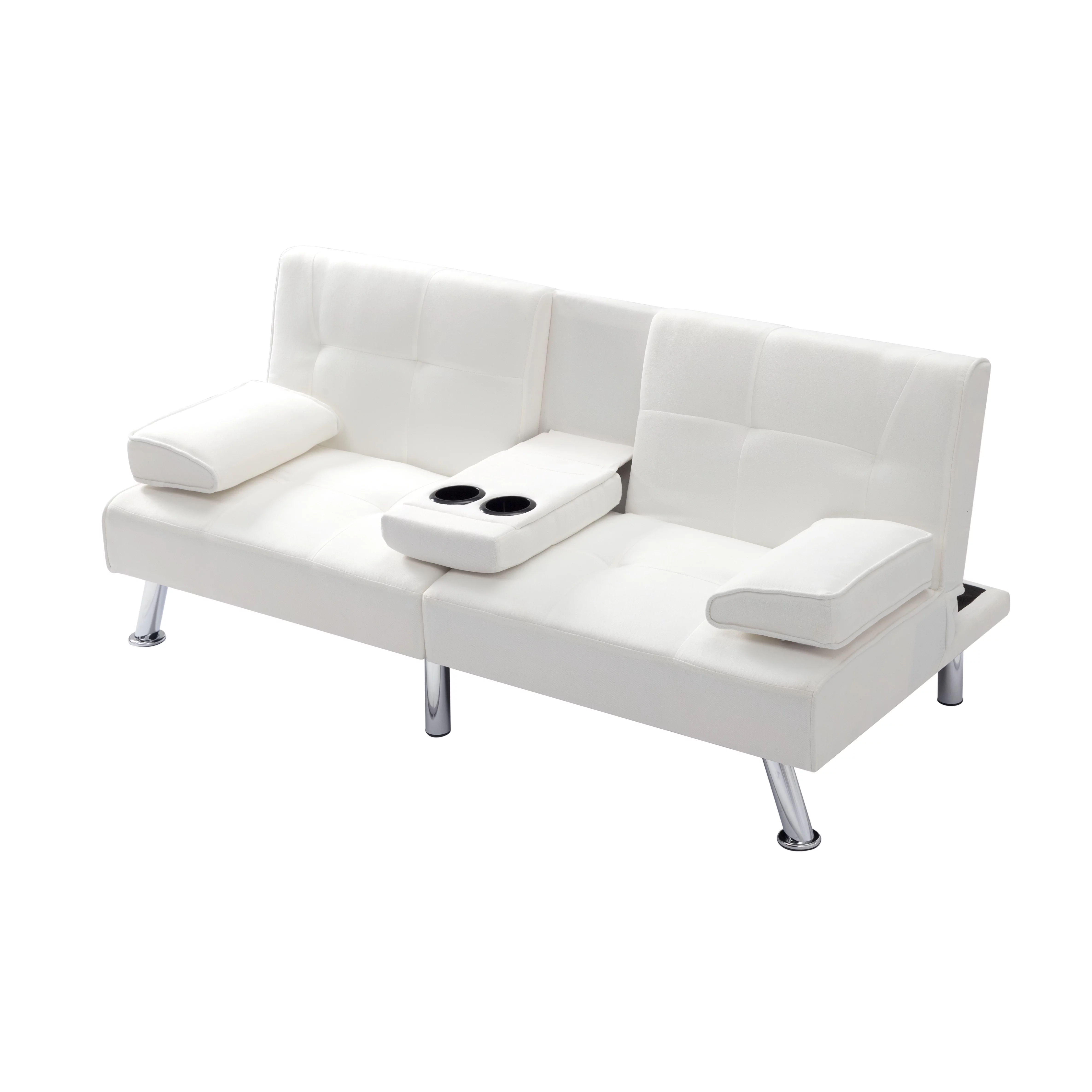 BSHTI 66.9 inch Futon Velvet Sleeper Sofa Bed and Drop Down Middle Back with 2 Cup Holders(Beige)