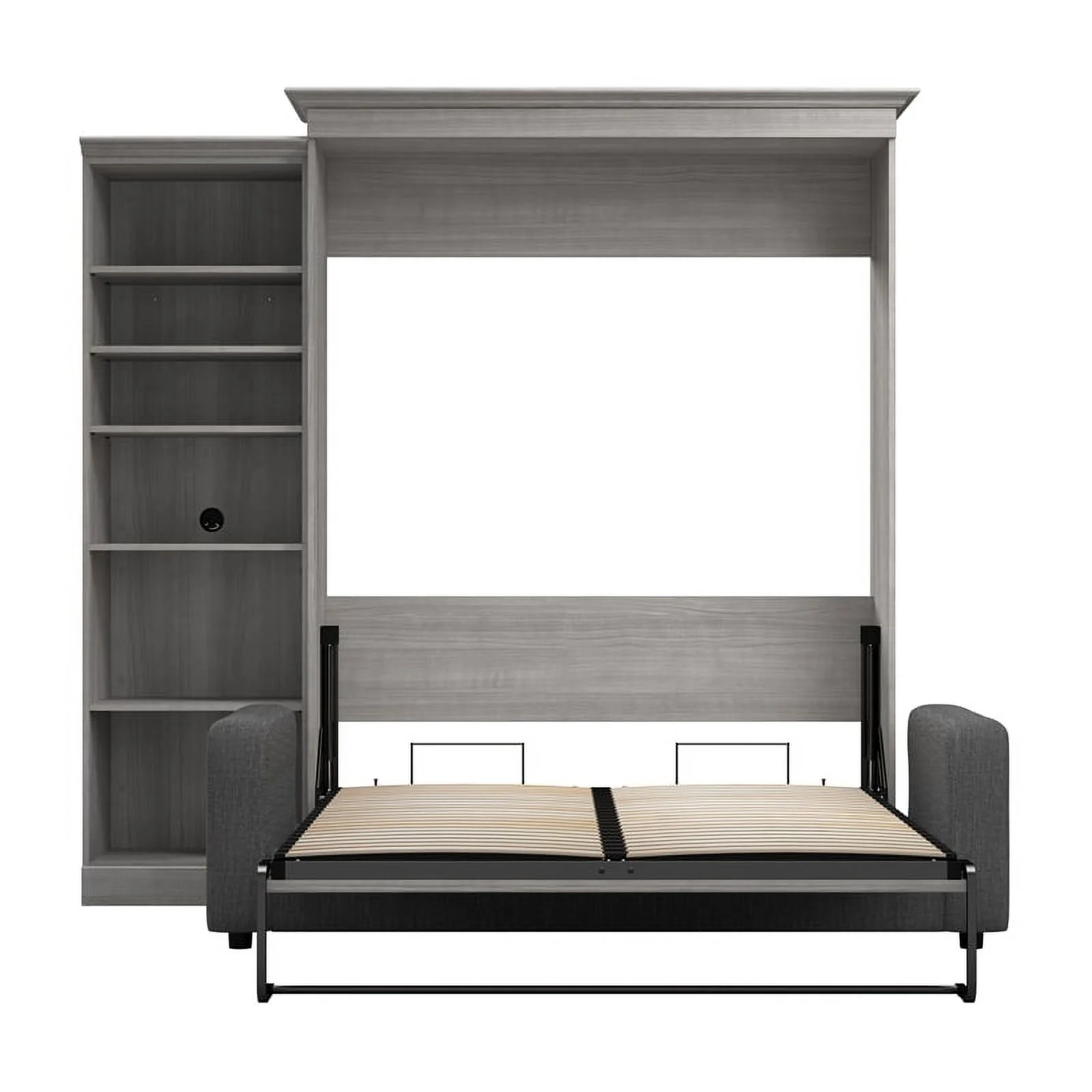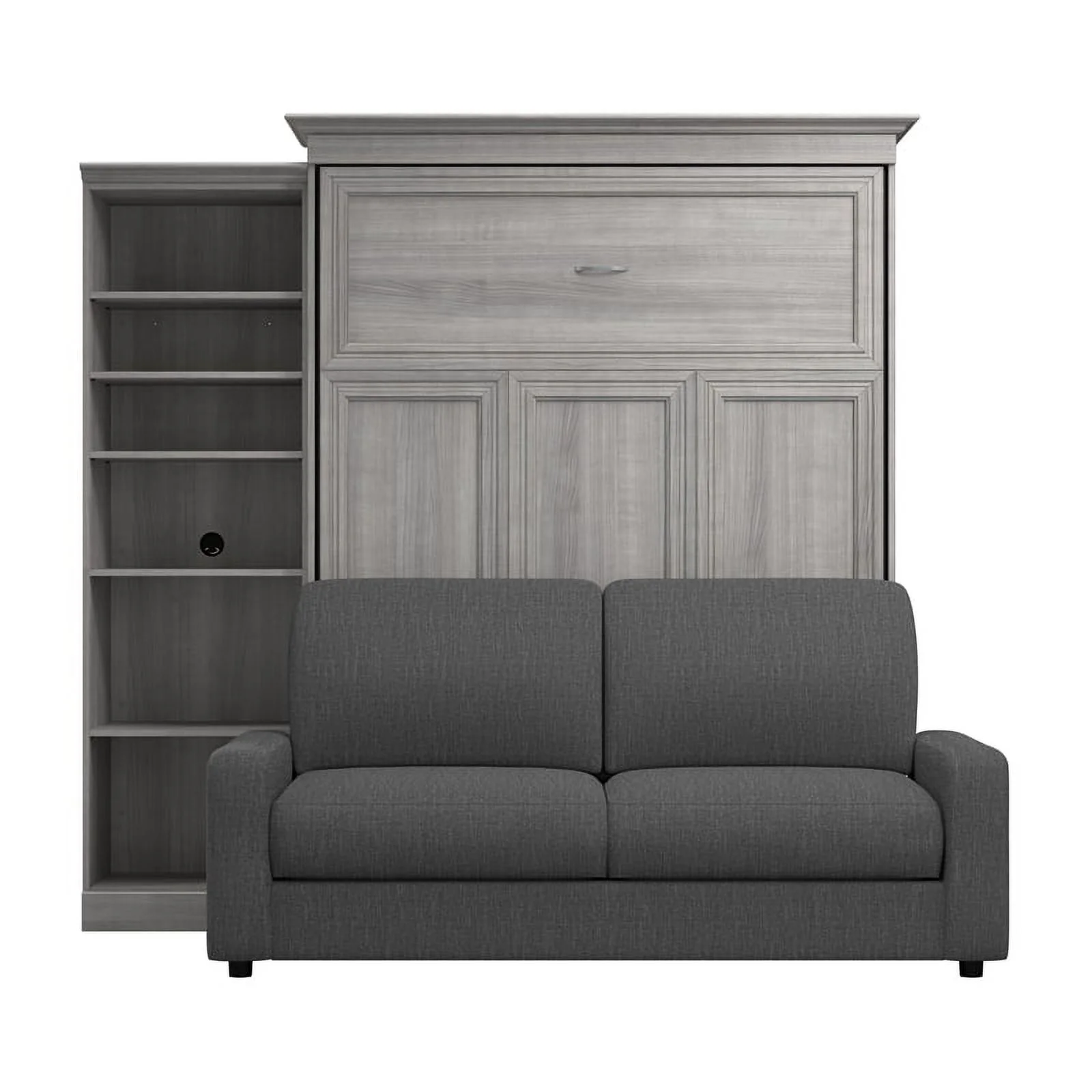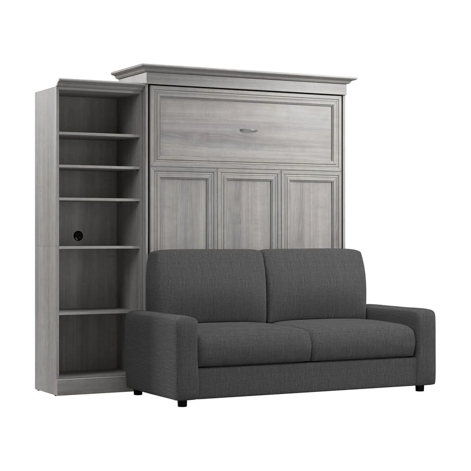Bestar Versatile Engineered Wood Queen Murphy Bed with Sofa & Organizer in Gray