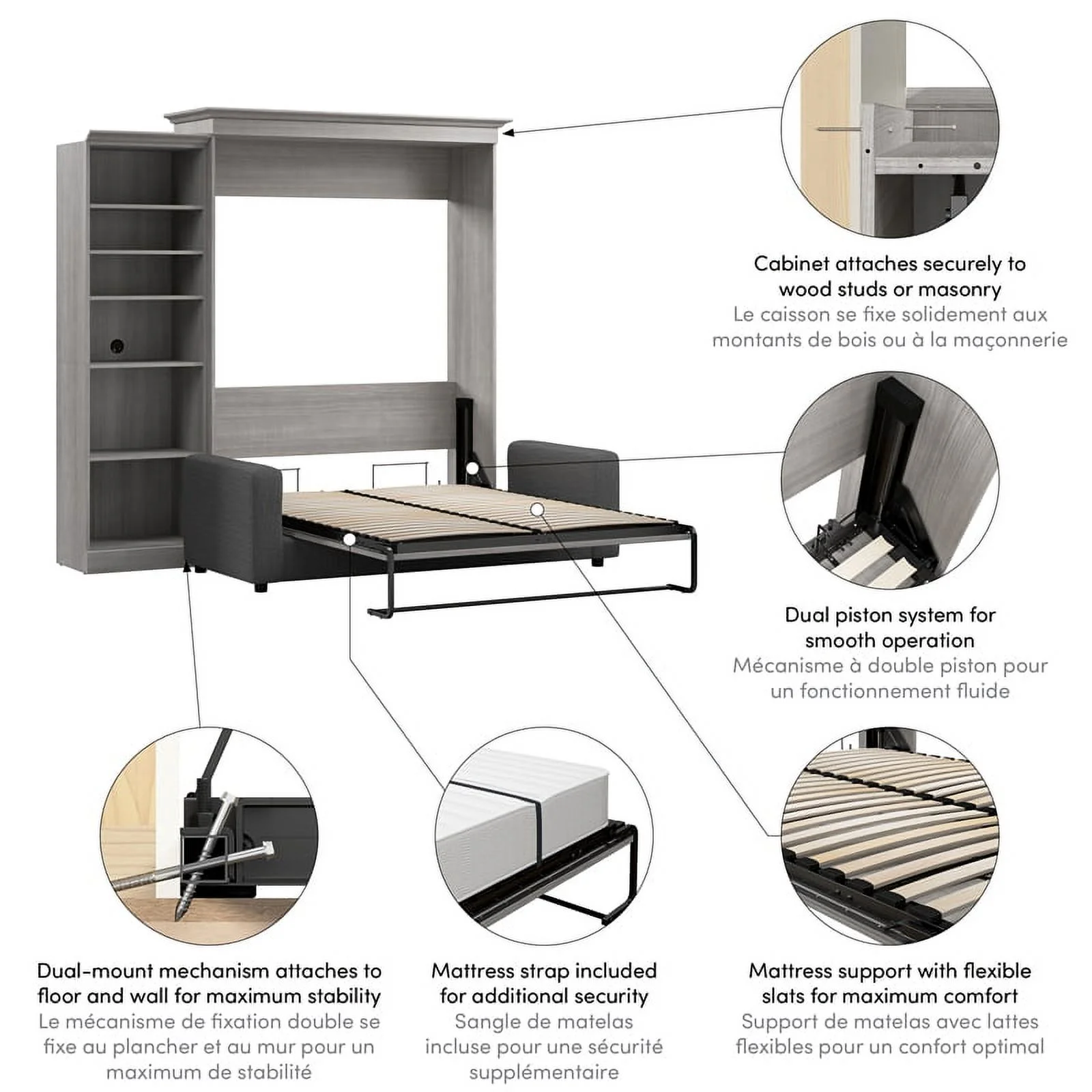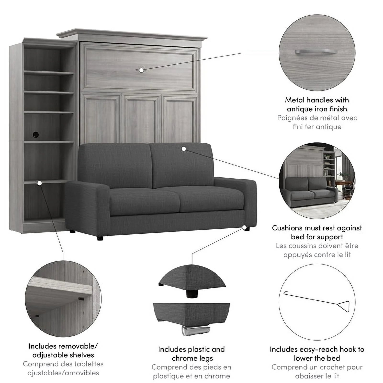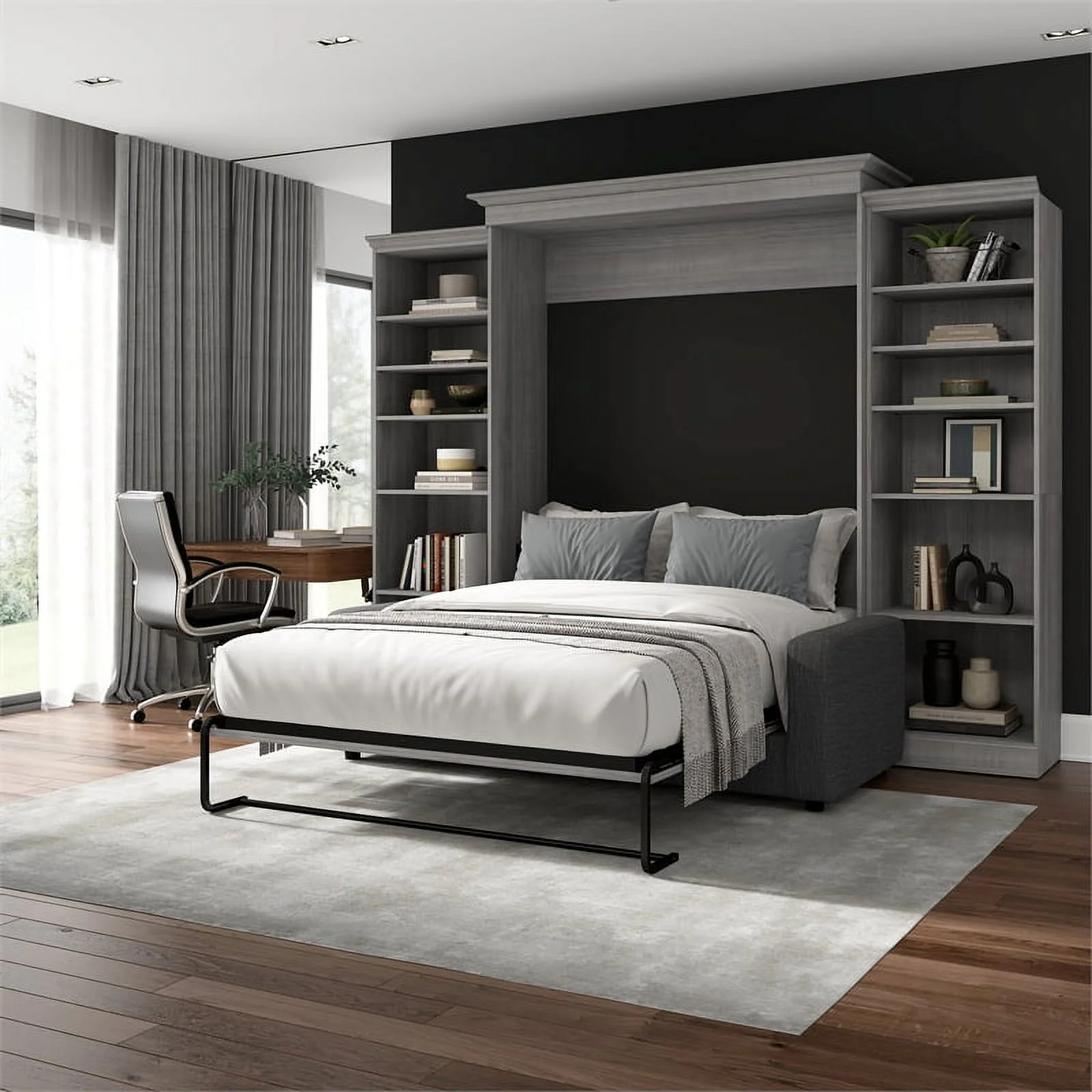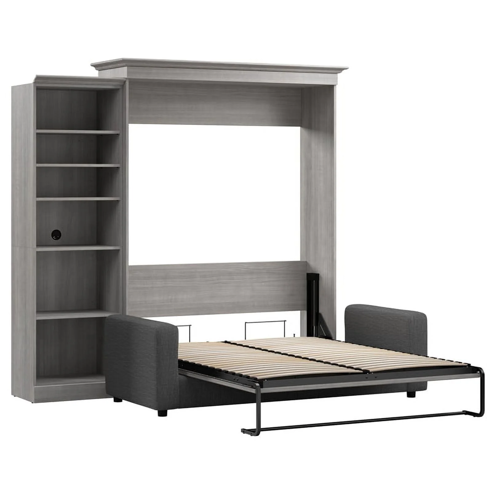 Bestar Versatile Engineered Wood Queen Murphy Bed with Sofa & Organizer in Gray