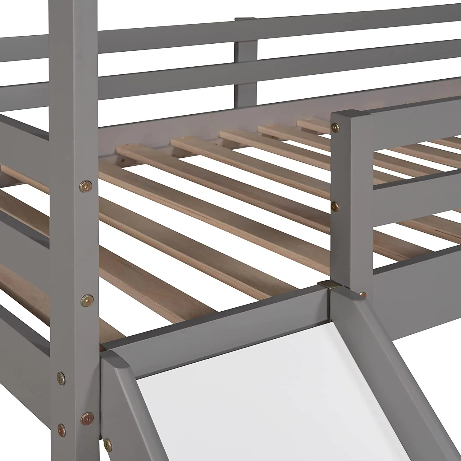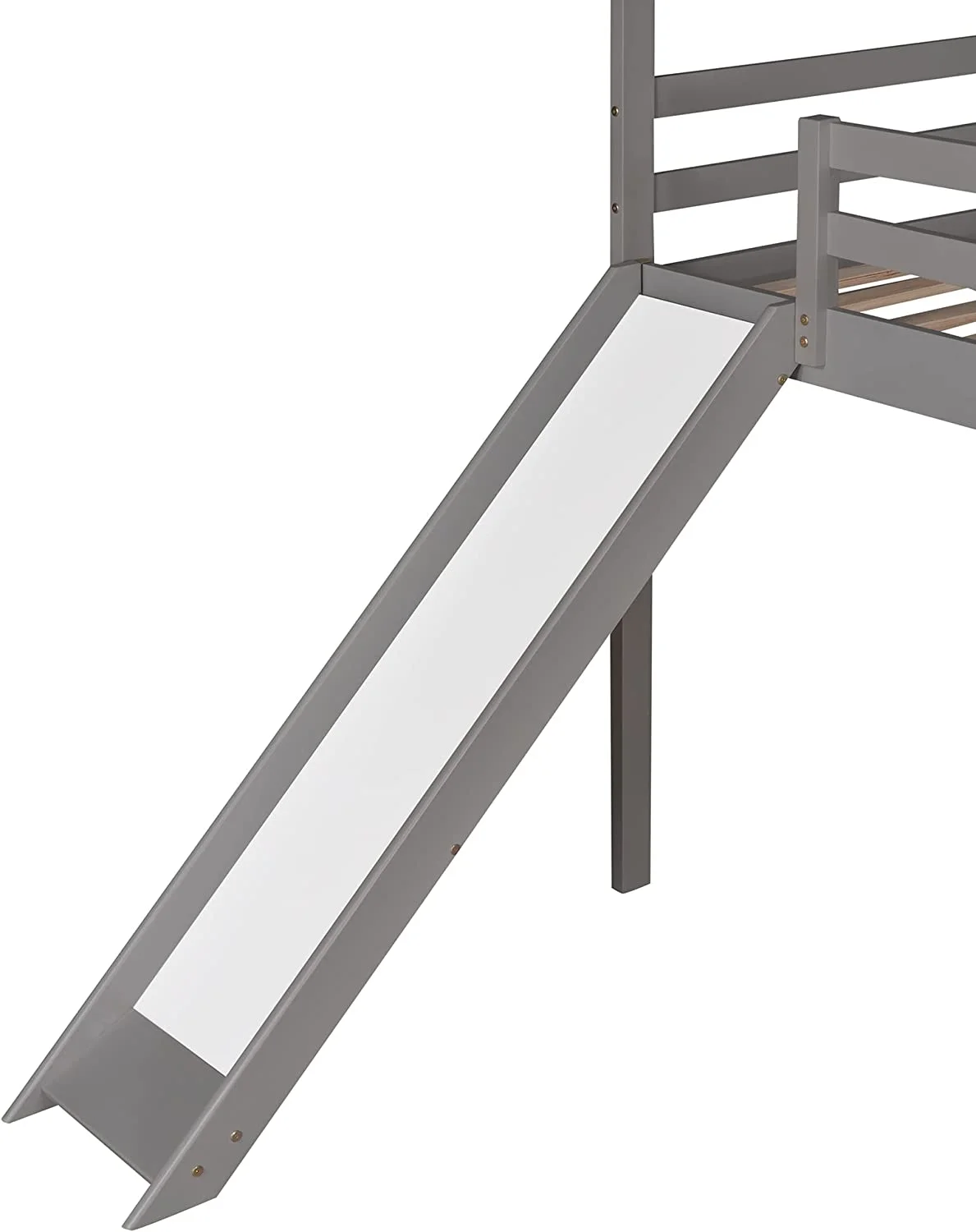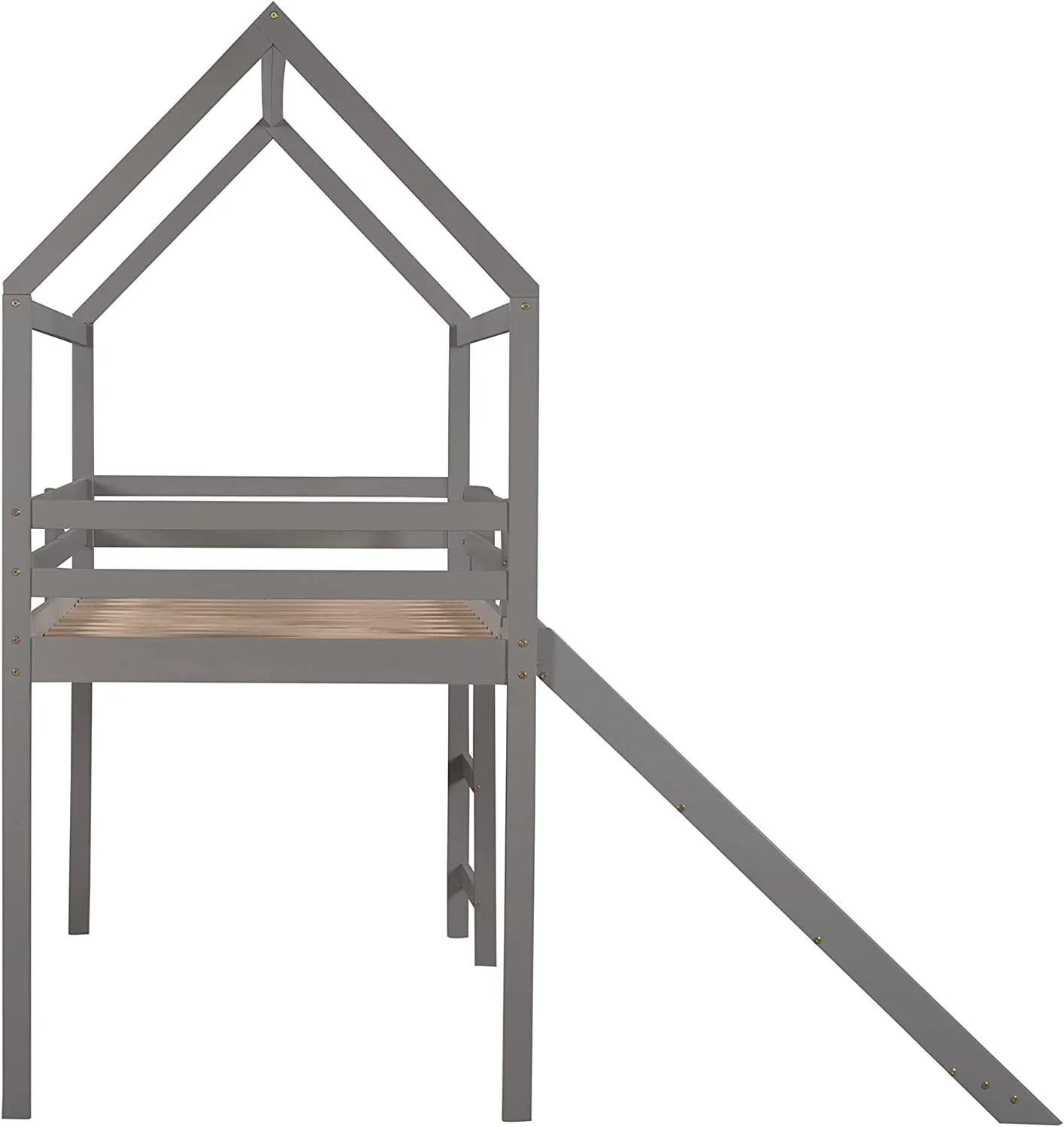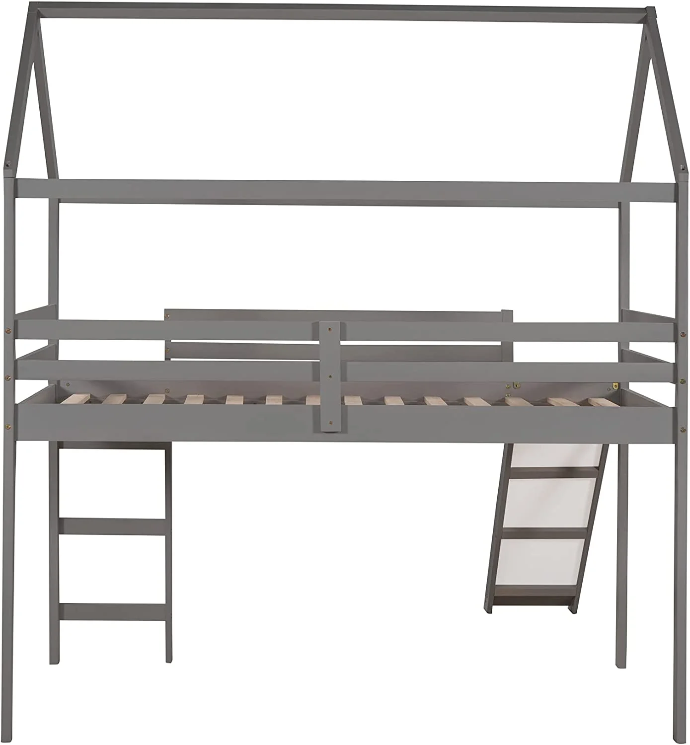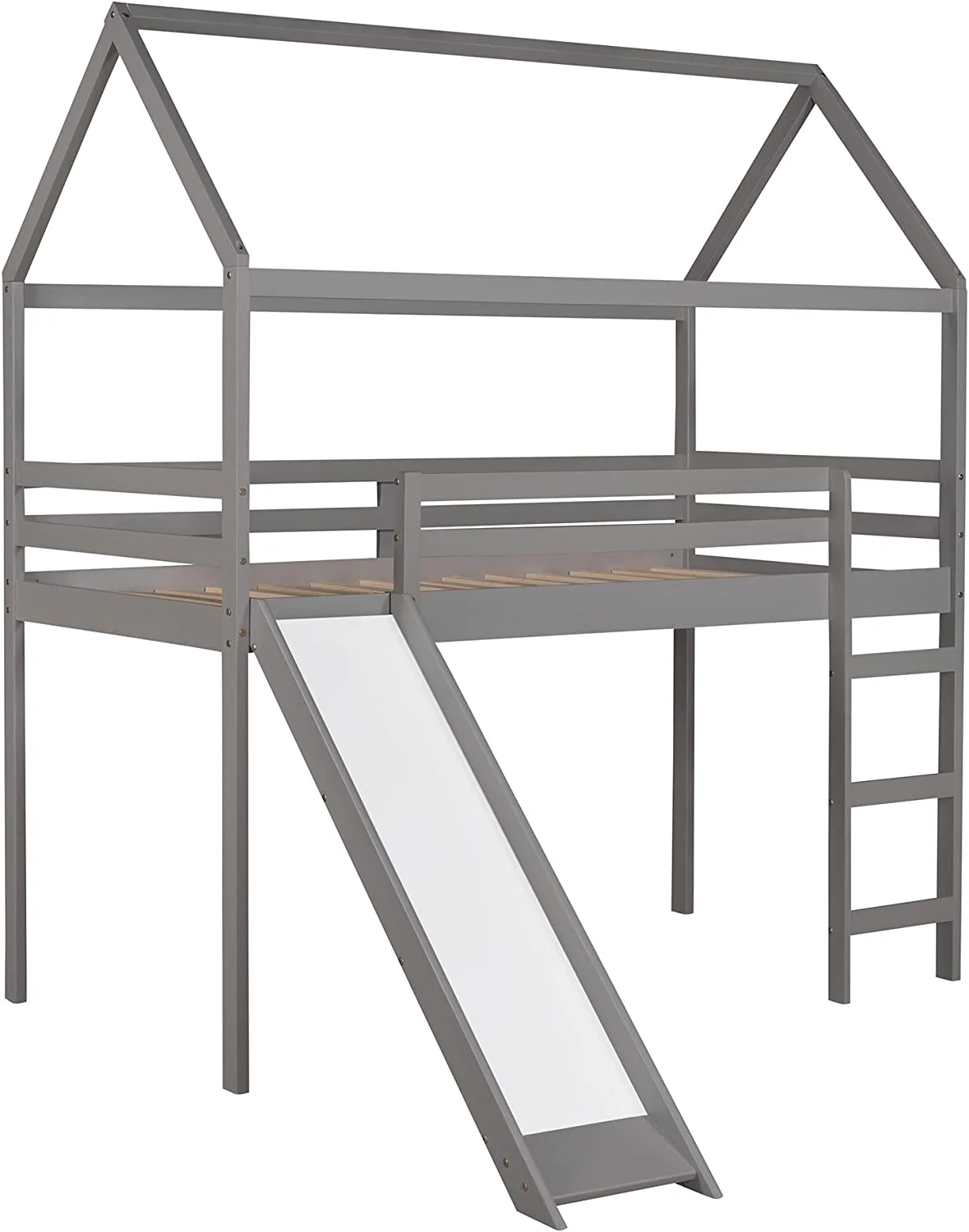 Full Size Loft Bed With Slide And Ladder, Wood House Bed Frame With Roof For Kids Boys Girls, Gray