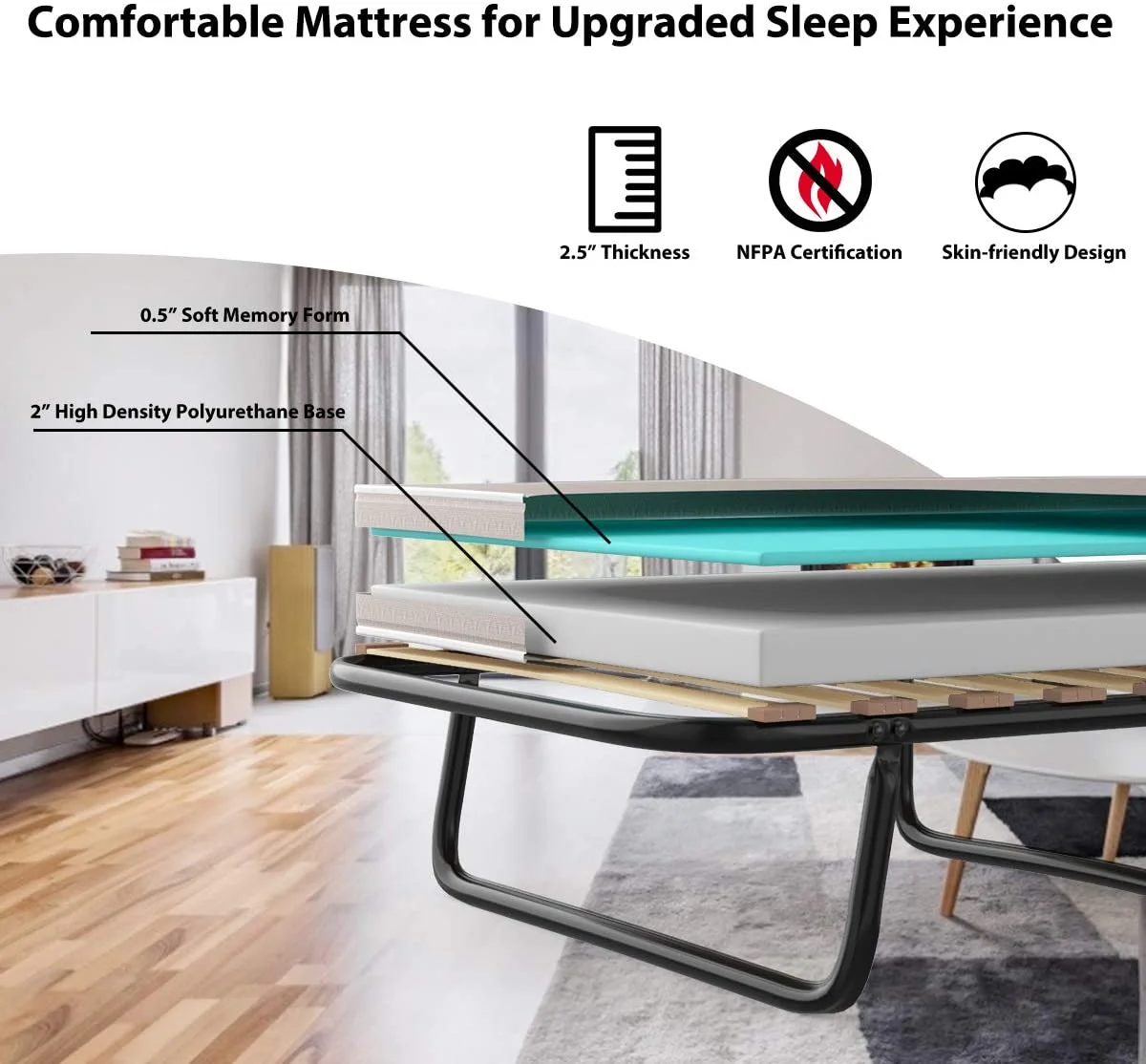 SKYSHALO Metal Bed Frame Platform Noise Free Full Size Bed Frame 18 inch 1500 lbs
