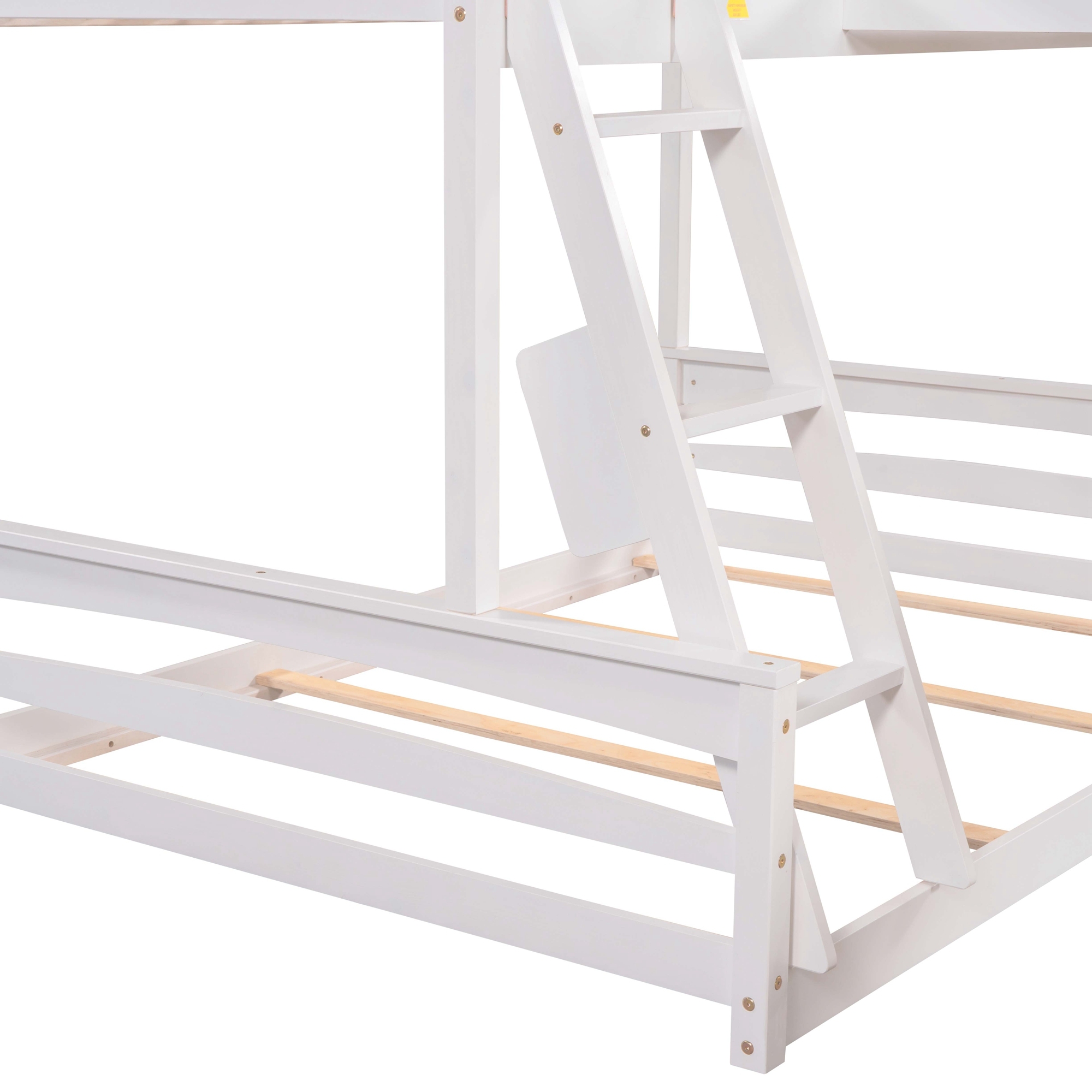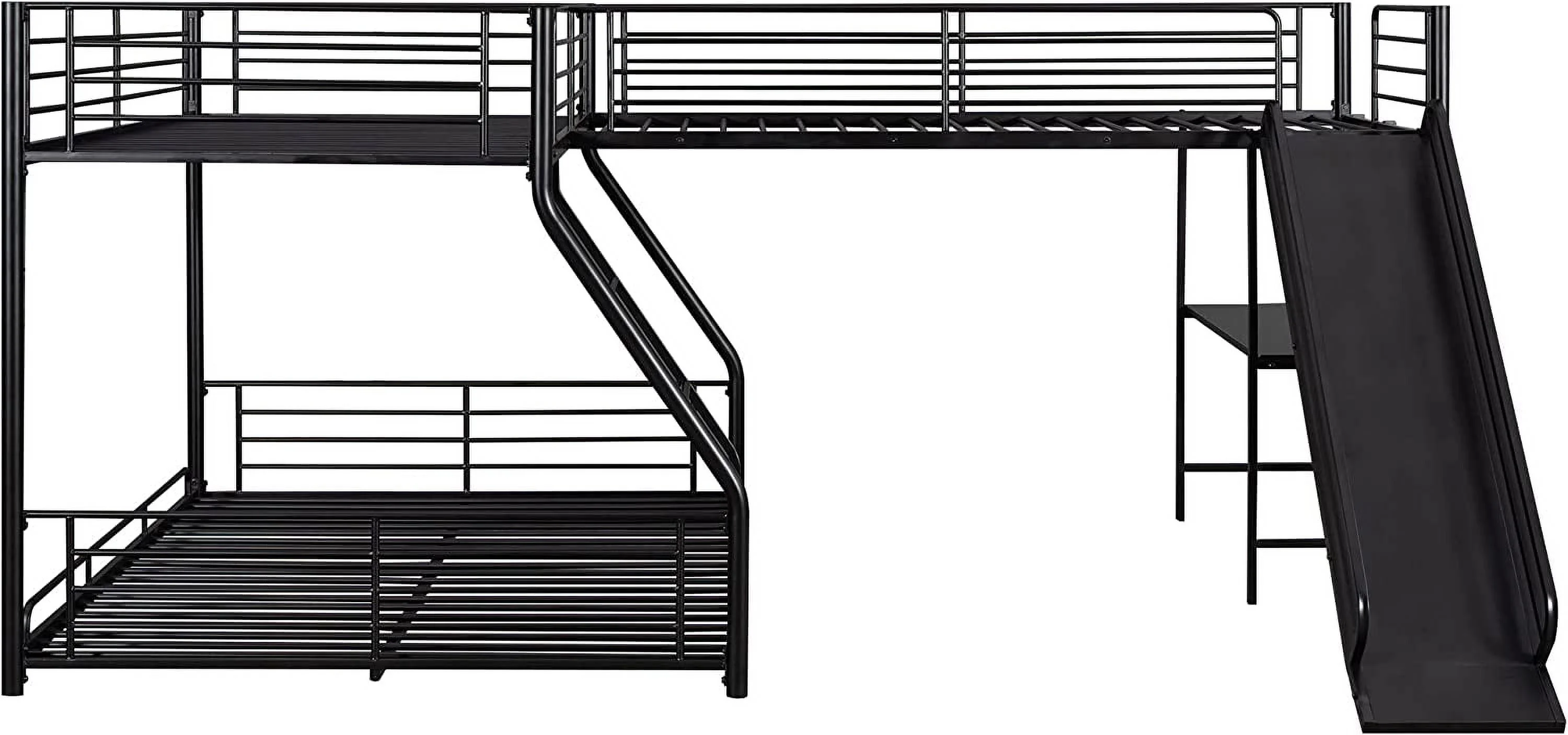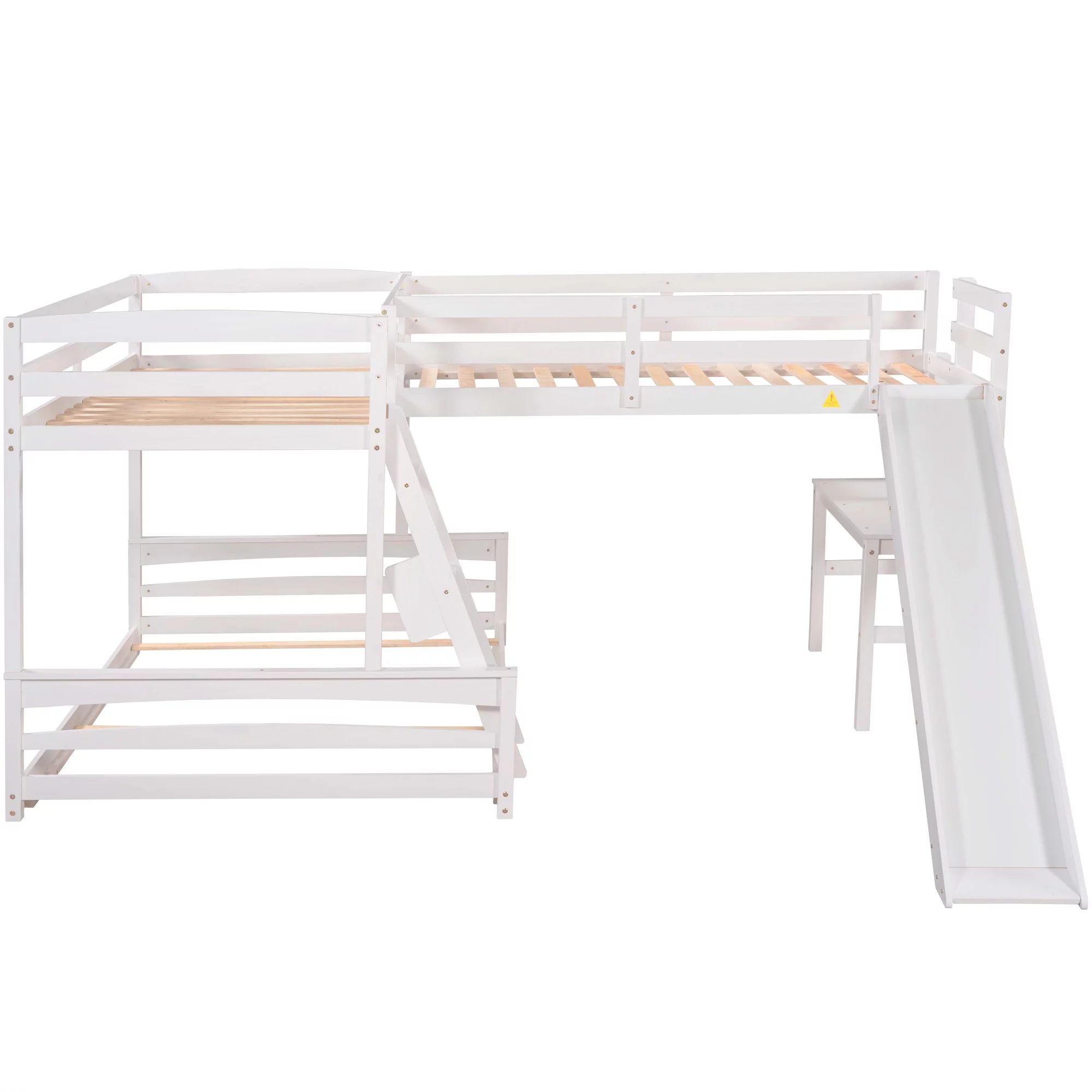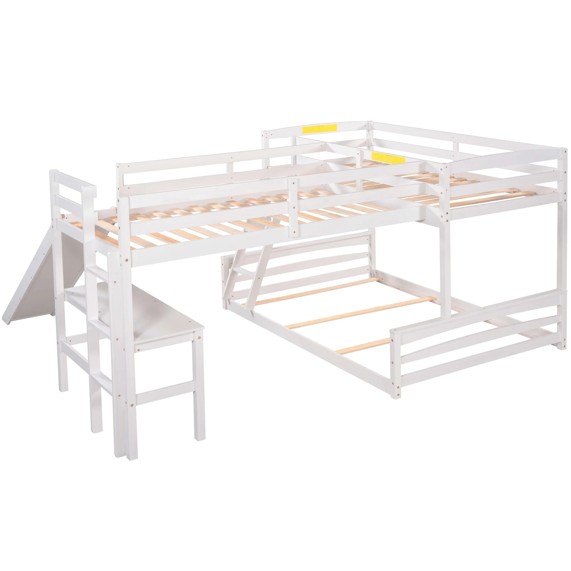 Dawn Whisper Twin over Full Bunk Bed with Twin Size Loft Bed with Desk and Slide, Full-Length Guardrail, White