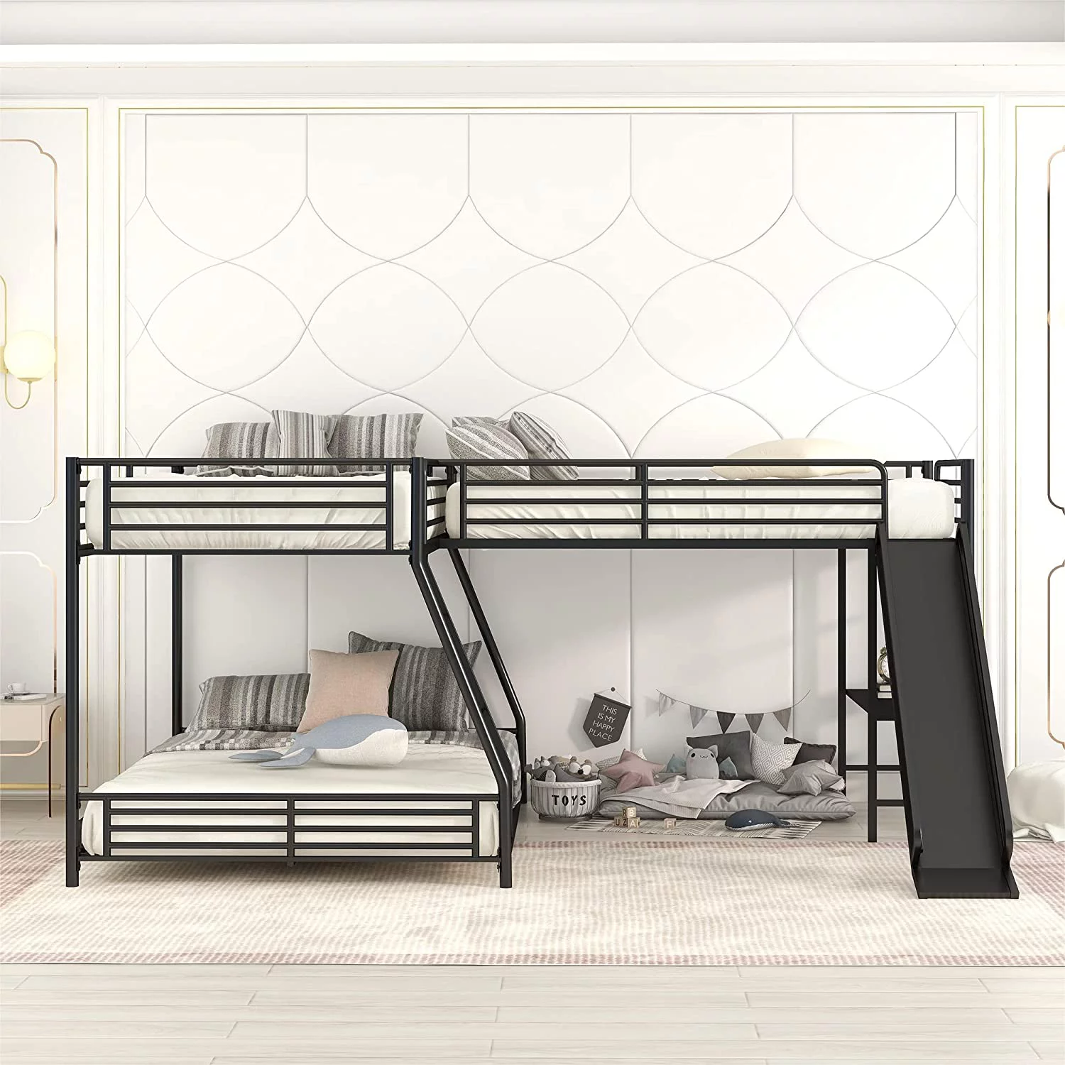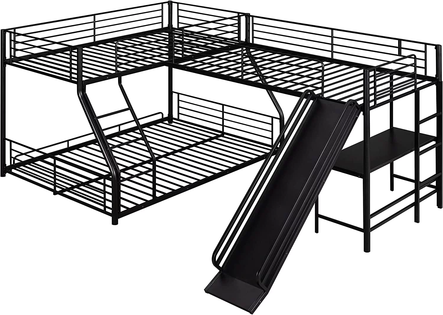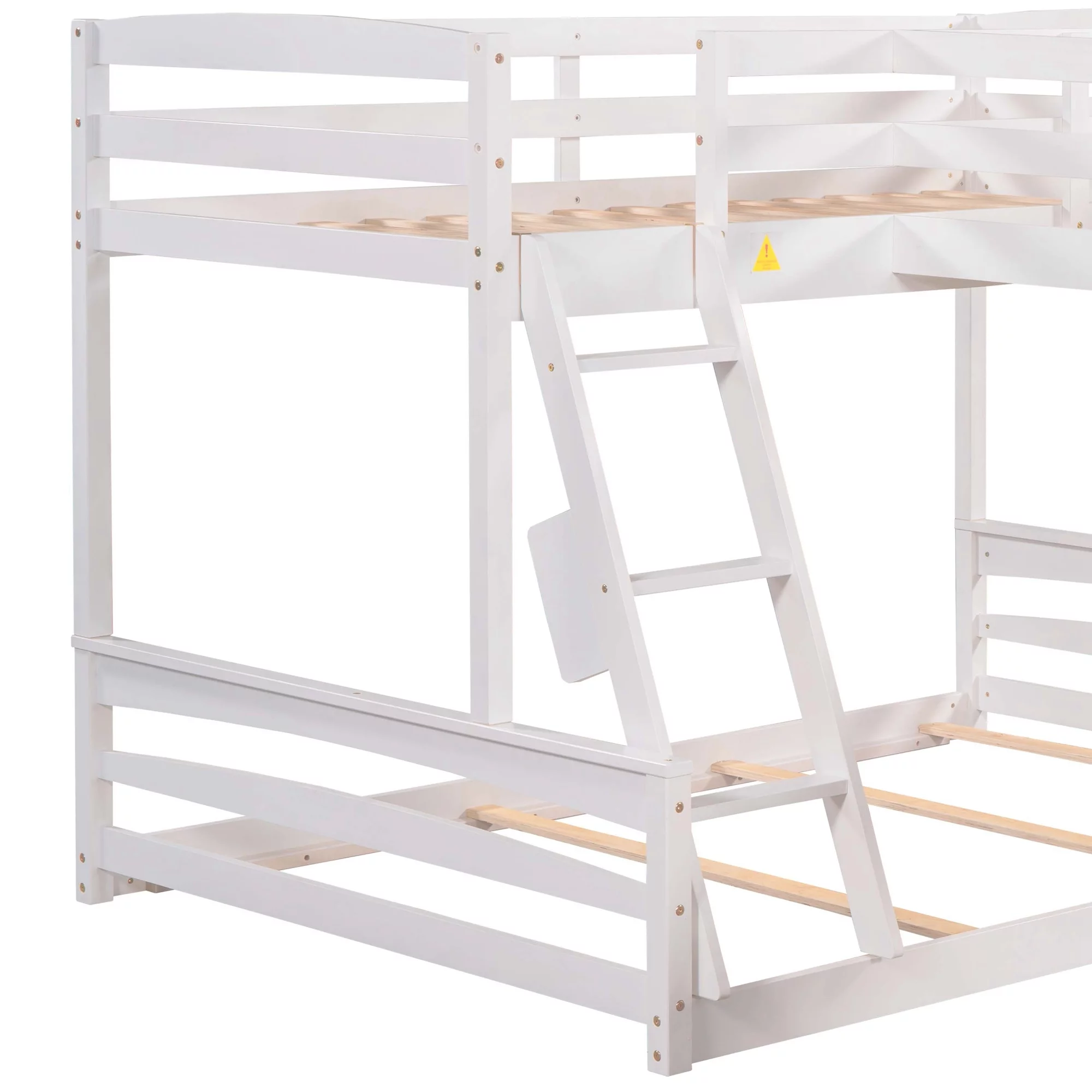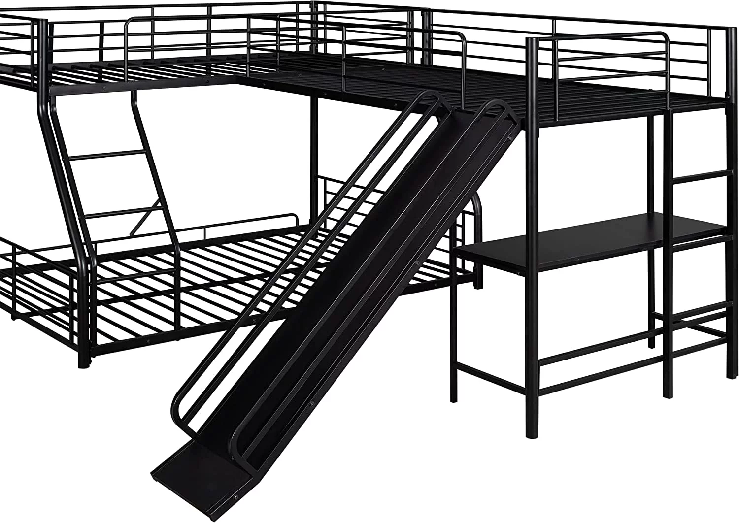 Dawn Whisper Twin over Full Bunk Bed with Twin Size Loft Bed with Desk and Slide, Full-Length Guardrail, White