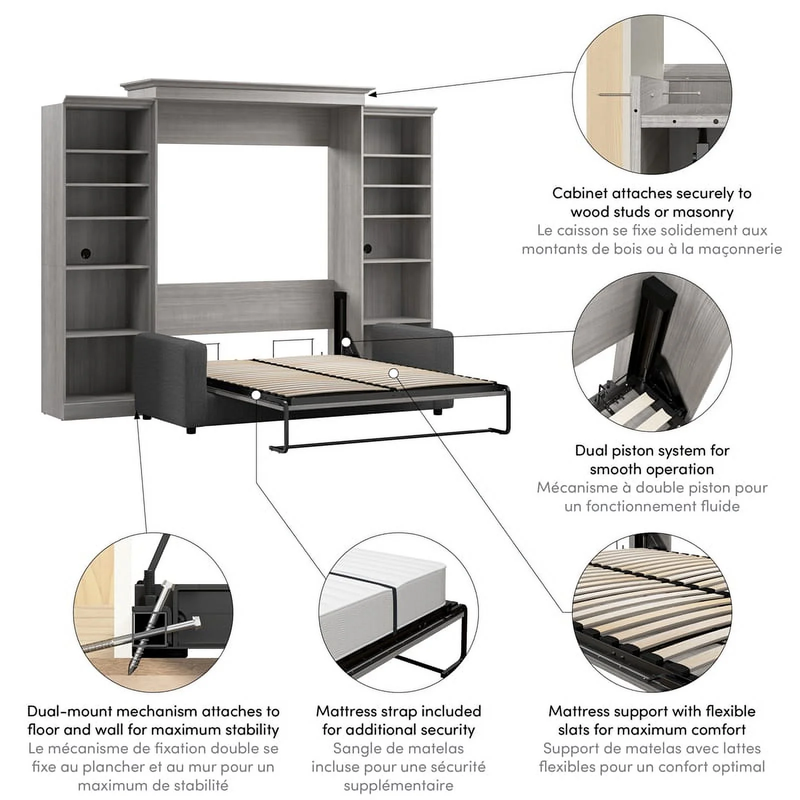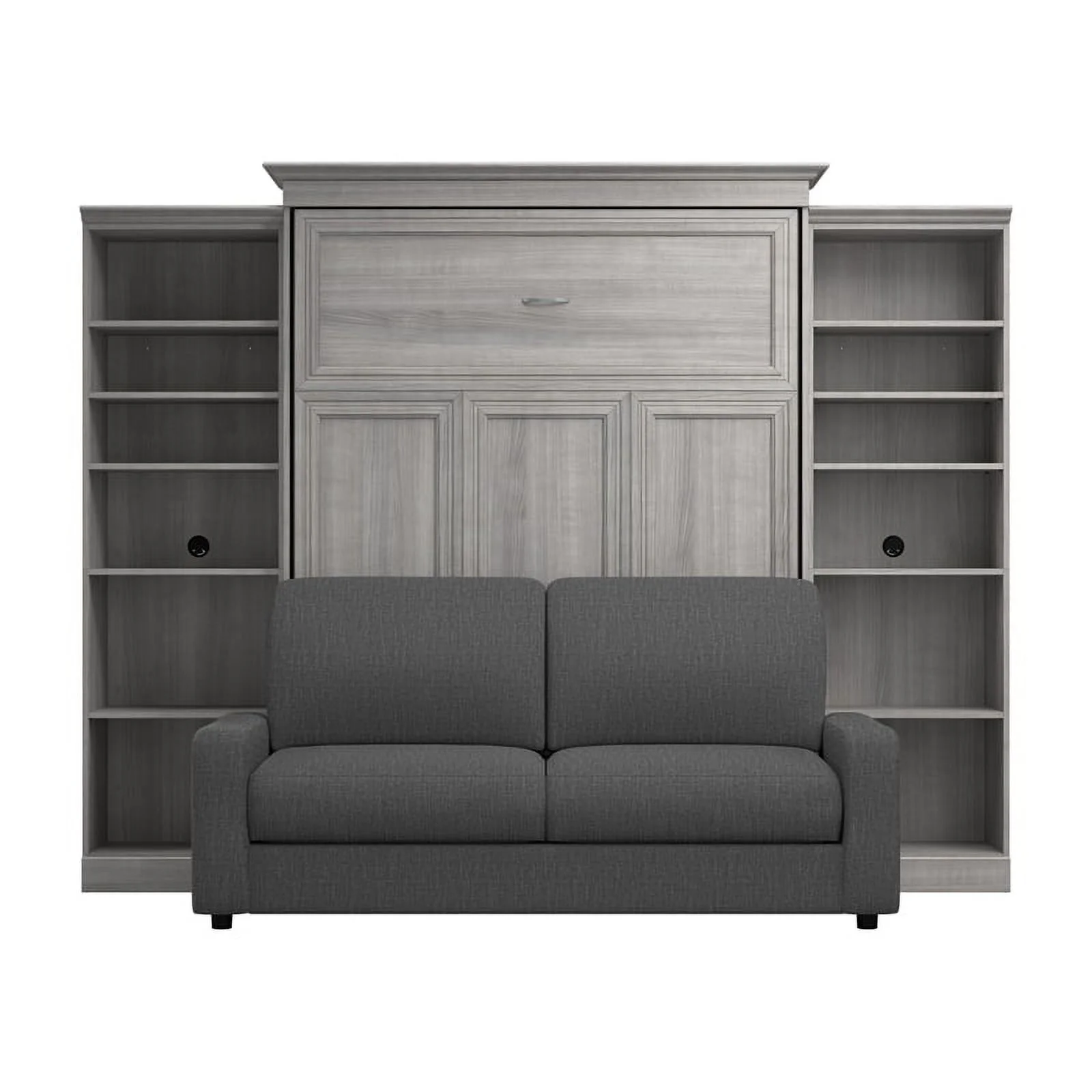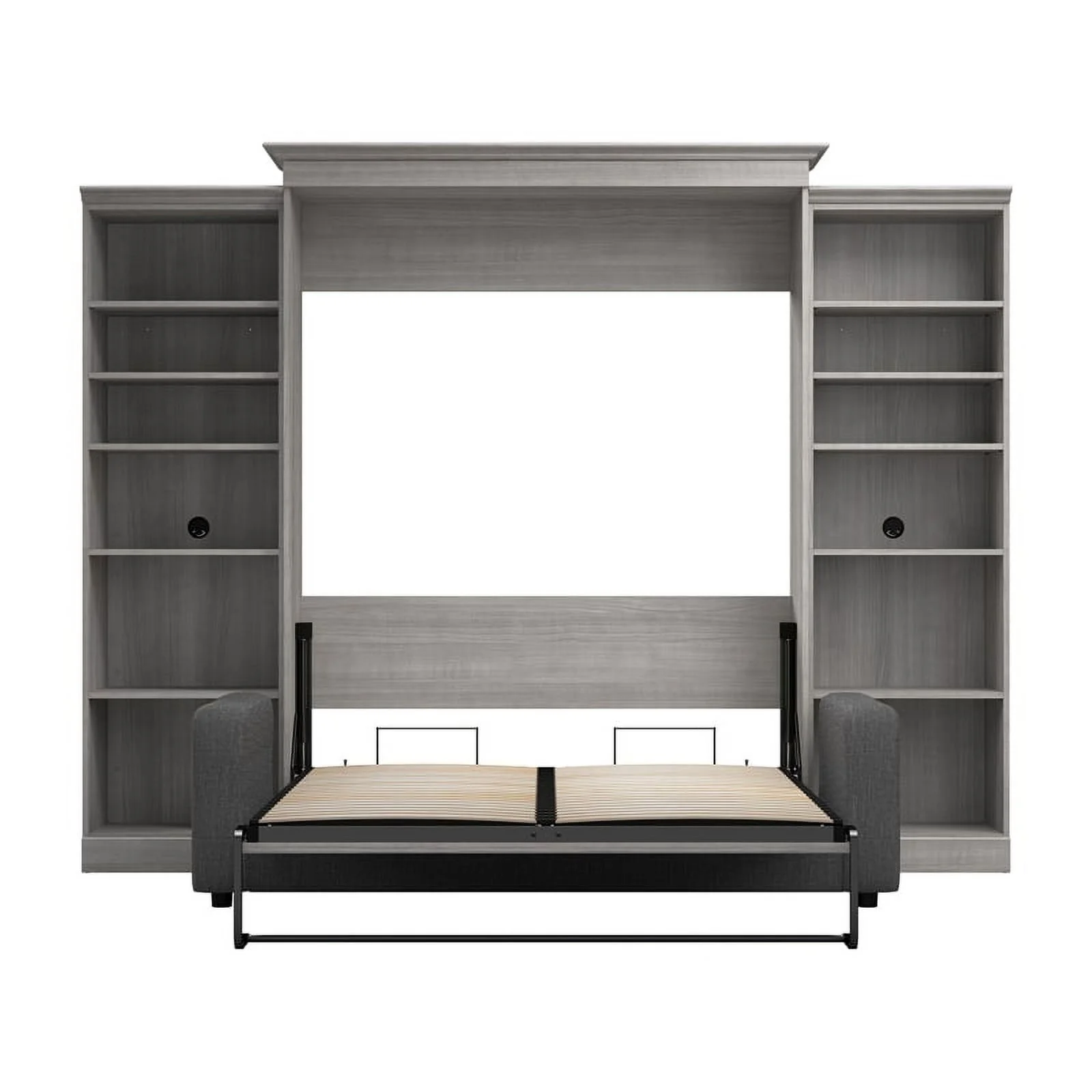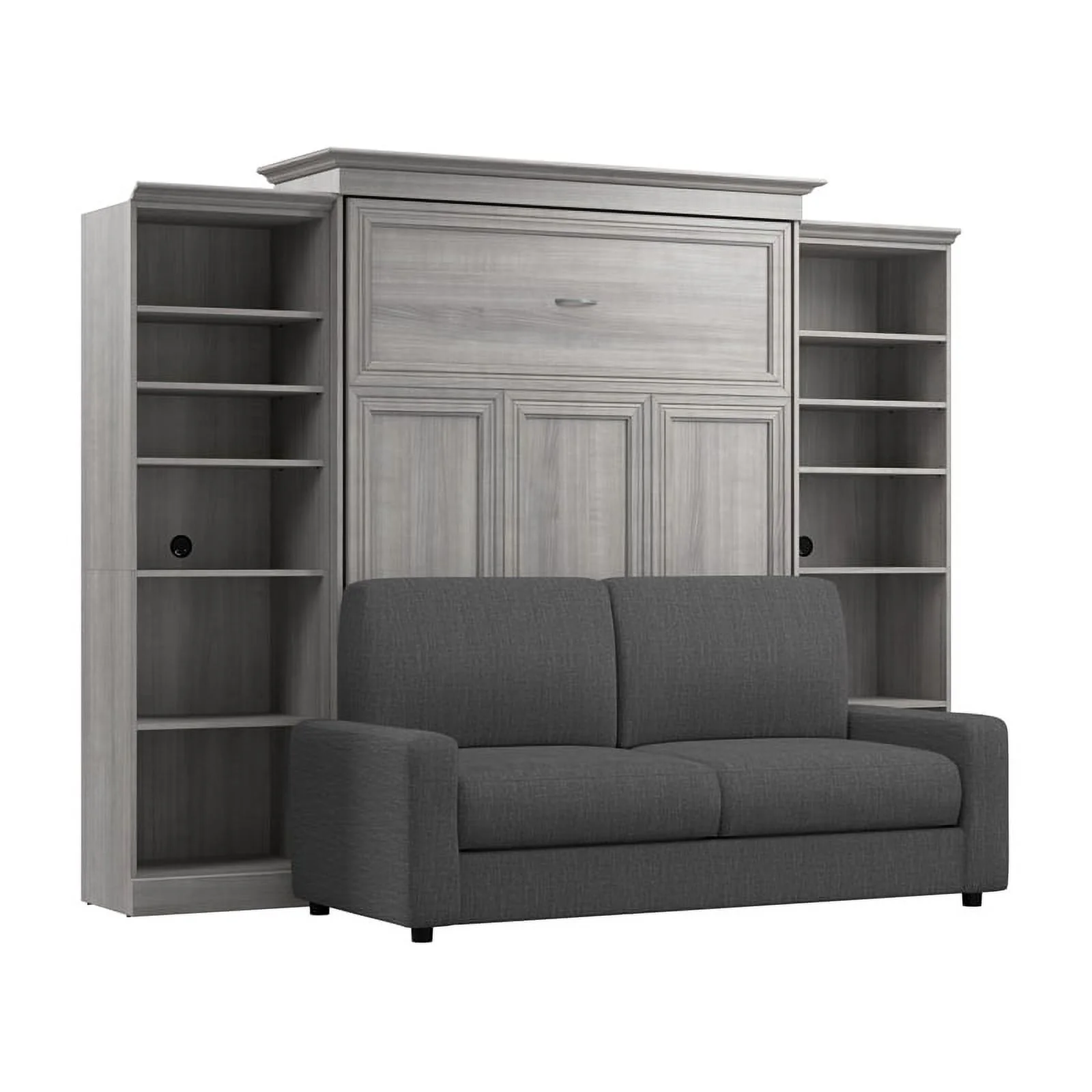 Bestar Versatile Engineered Wood Queen Murphy Bed with Sofa & Organizers in Gray