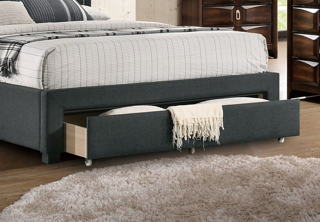 Charcoal Burlap Fabric Tufted Headboard Storage Footboard Twin Size Bed 1pc Bedroom Furniture Particle Board
