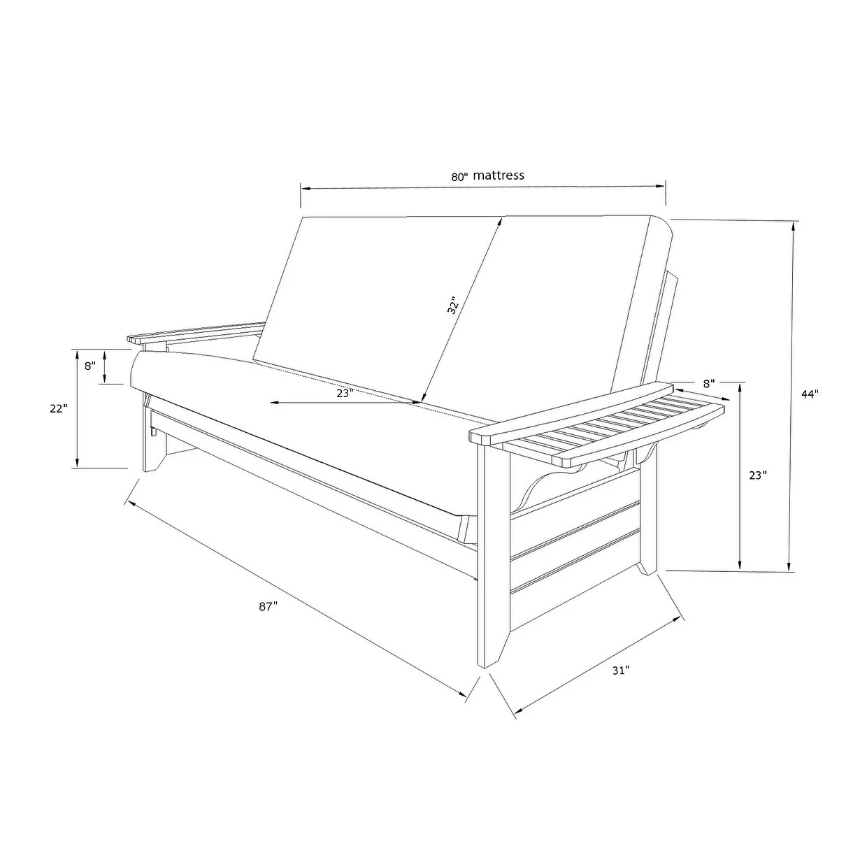 Kodiak Furniture Washington Queen-size Wood Storage Futon-Thunder Gray Mattress