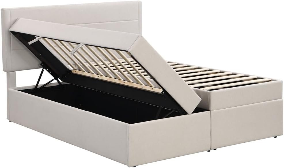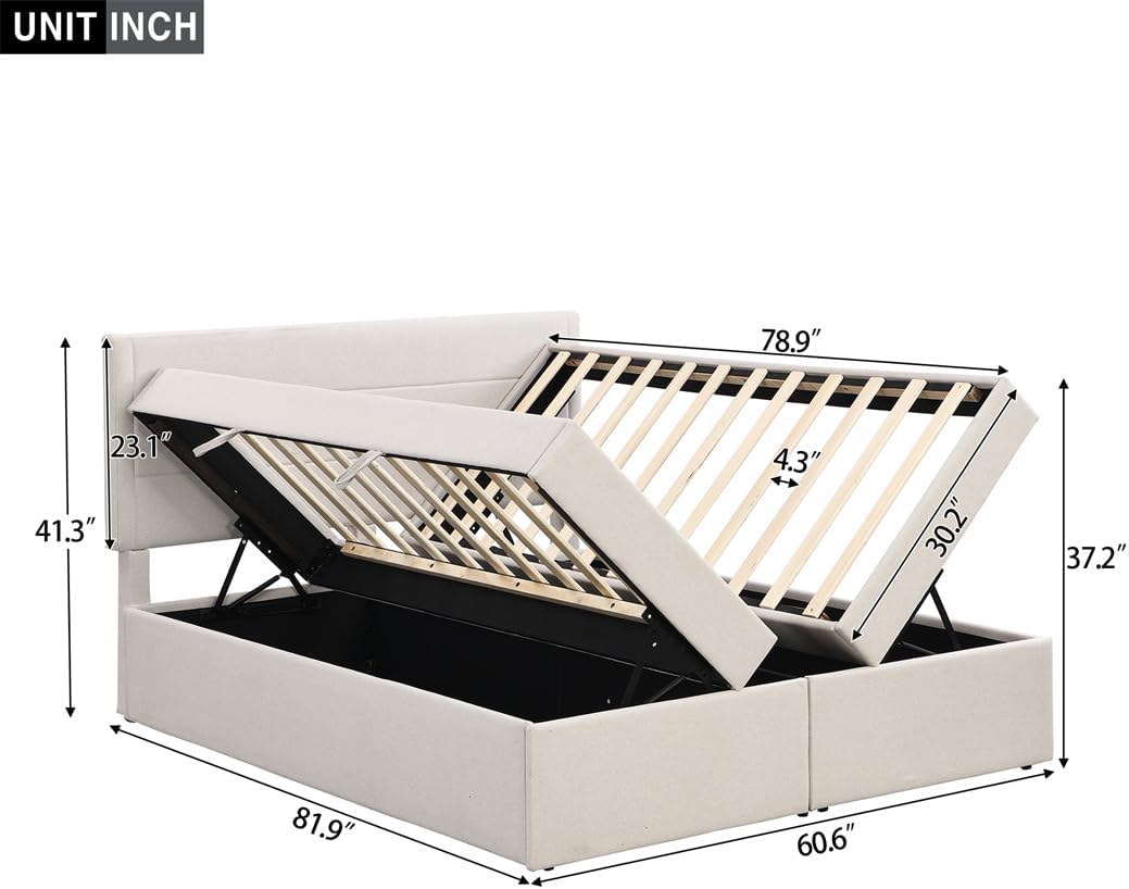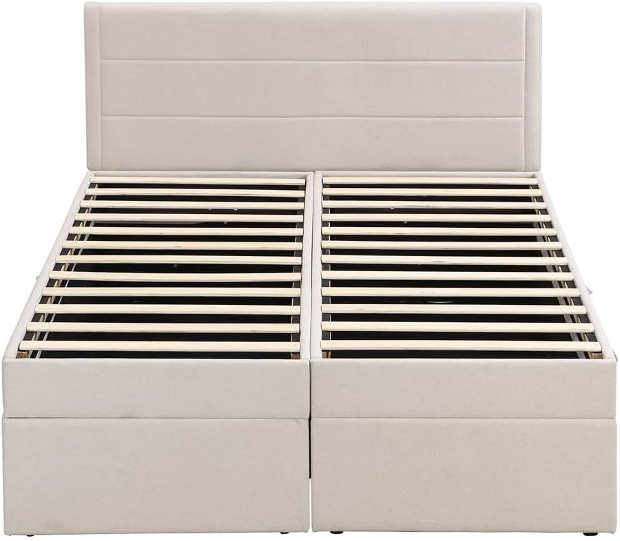 Upholstered Platform Bed Queen Size,with Cotton and Linen Fabric Headboard and Storage Underneath