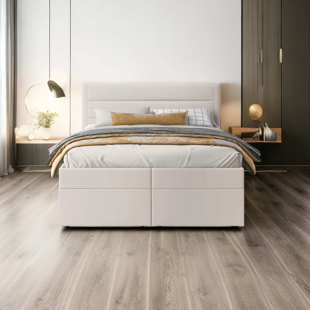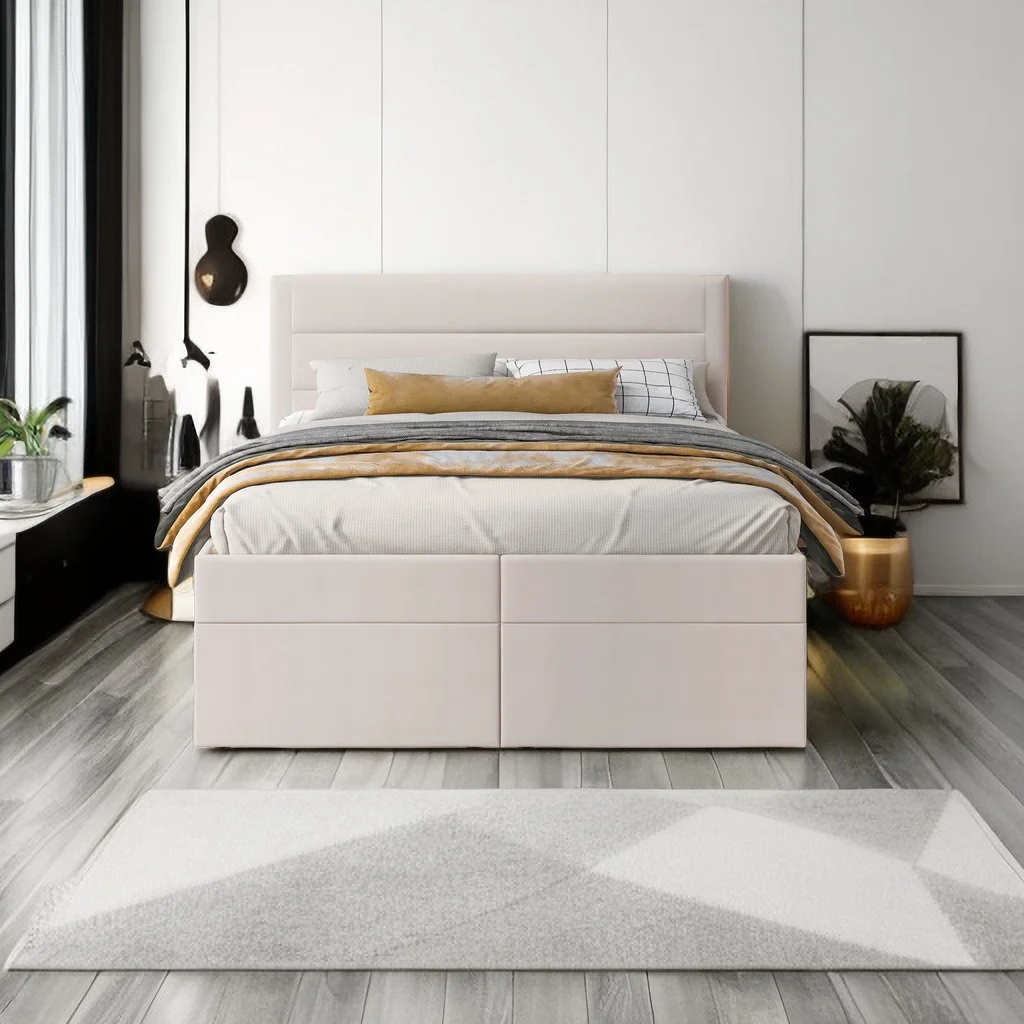 Maklaine Modern Fabric 55.5''H x 146''W x 86.5''D Cream Velvet Queen Bed