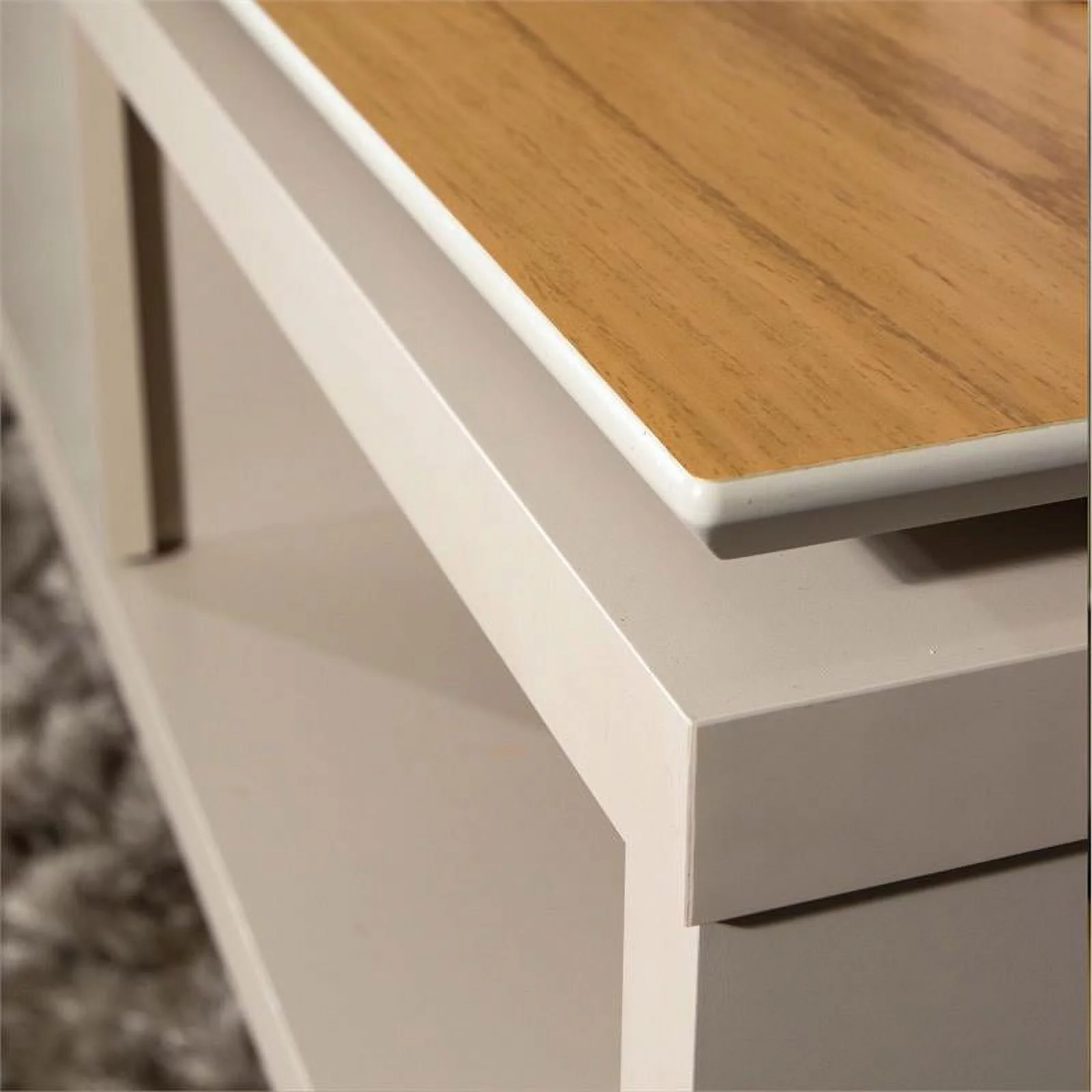 Manhattan Comfort Lincoln 85.43" TV Stand with 4 Shelves in Off White and Cinnamon