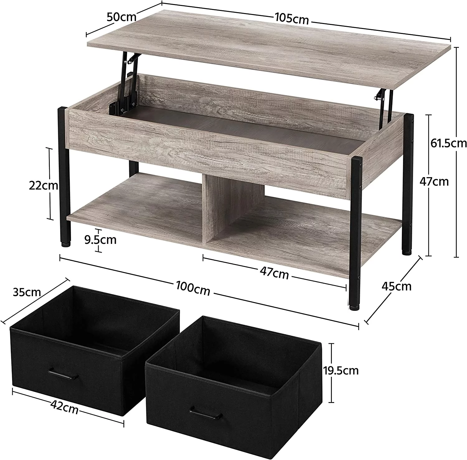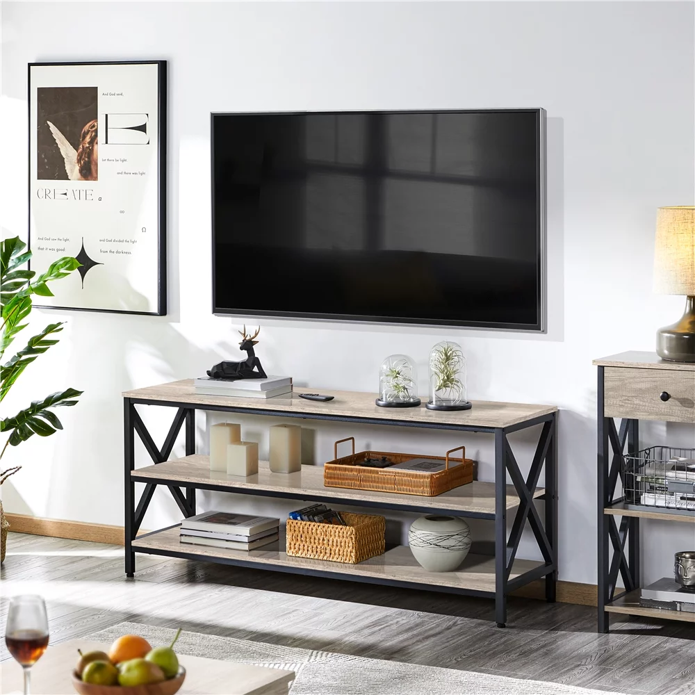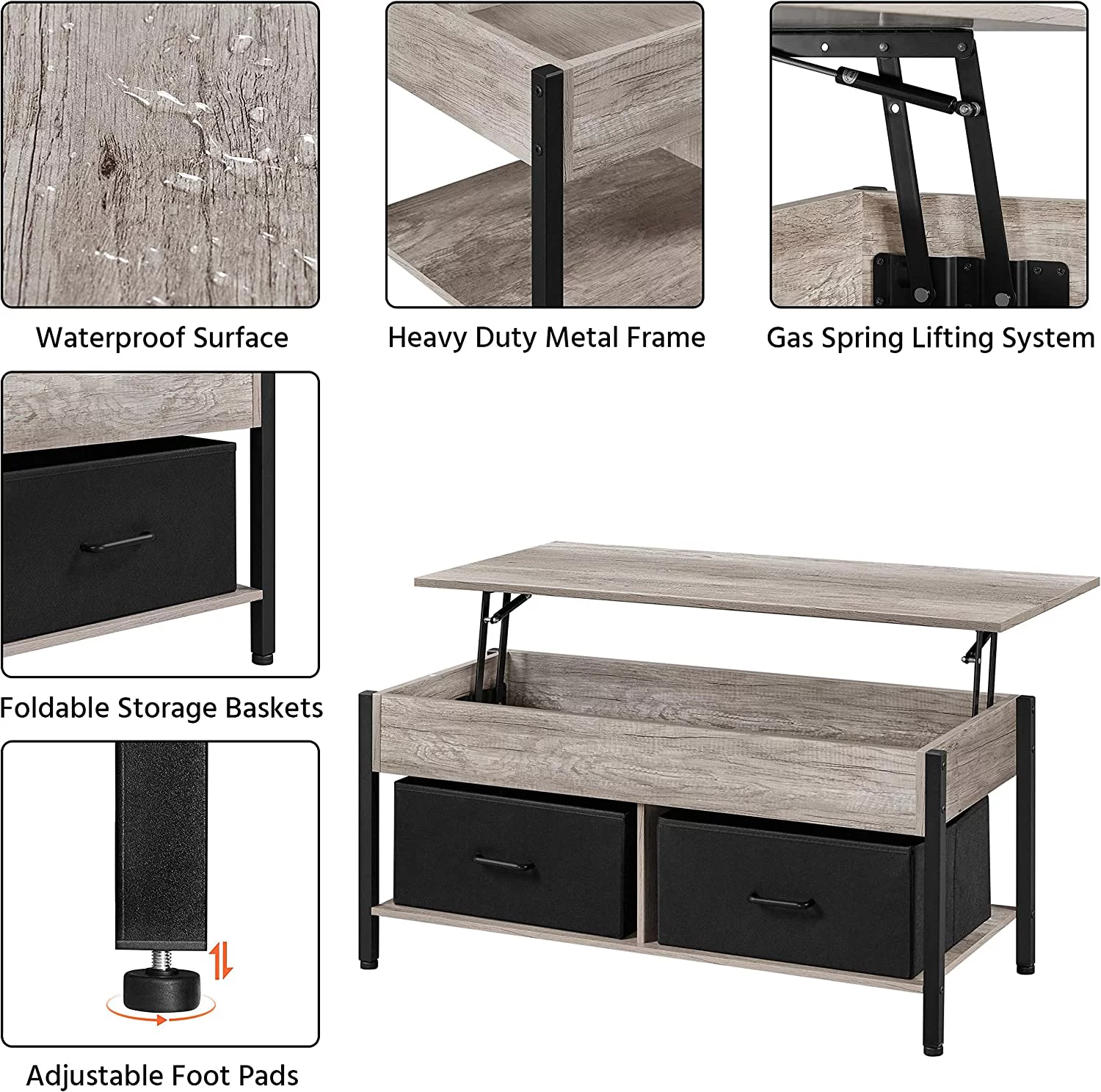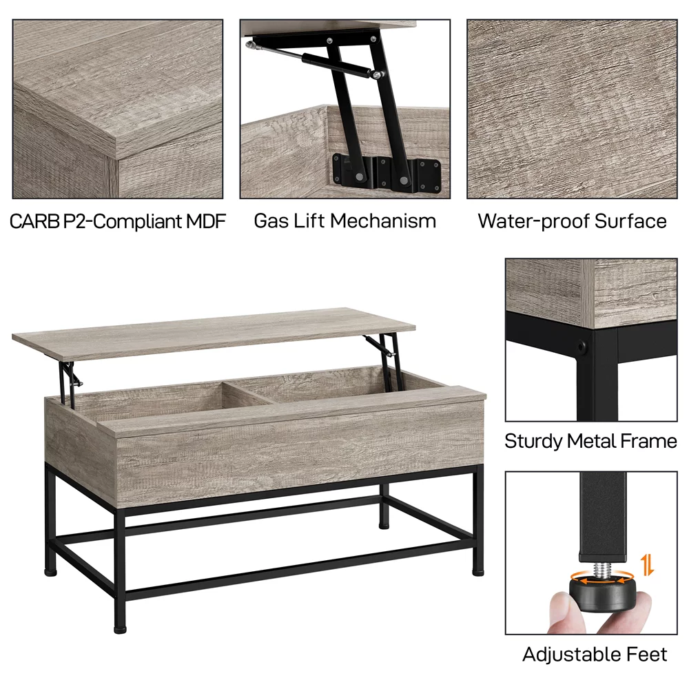Easyfashion Living Room Furniture Table Set - Lift-Top Coffee Table with TV Console, Gray