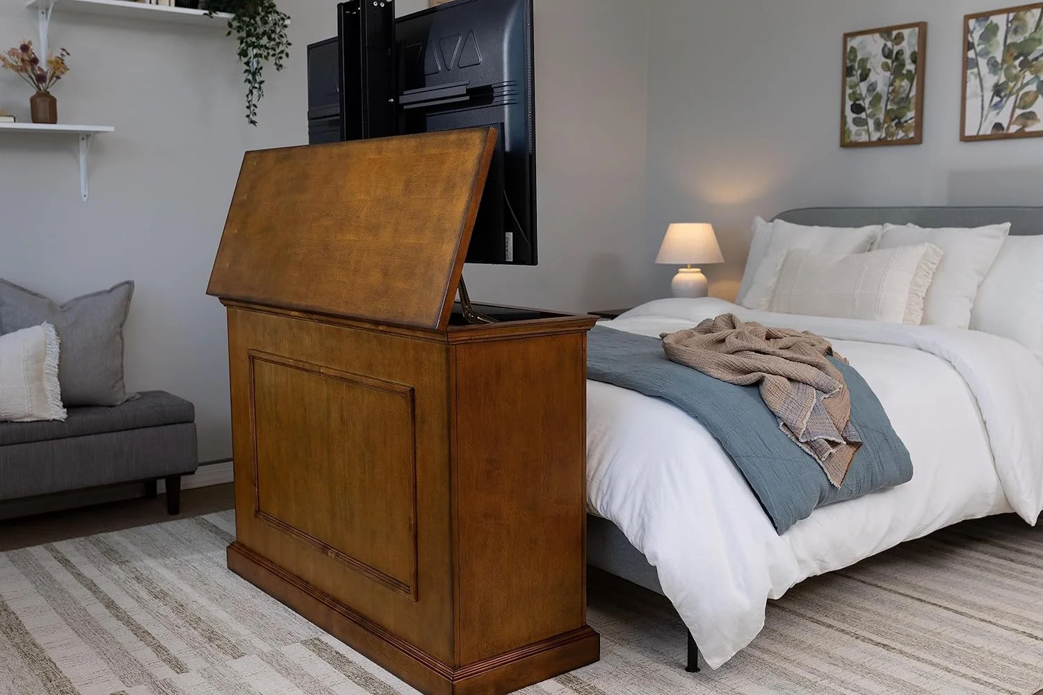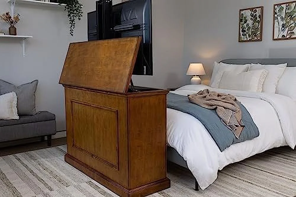 72009 - Elevate TV Lift Cabinet - Tvs Up To 50 Inch Diagonal (45” Wide TV) – Oak - 50 In Wide - SRV 3900 TV Lift - Wired & Wireless RF