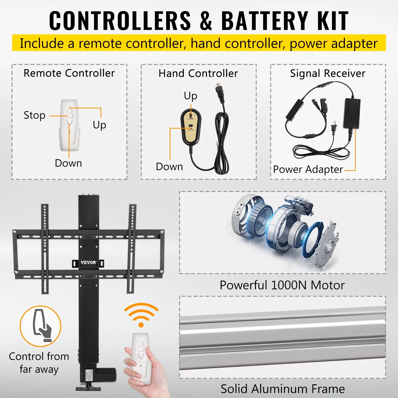 Wuzstar TV Mount Vertical Lift Motorized,Lift Speed 0.78"/s Motorized Television Stand with Remote Control