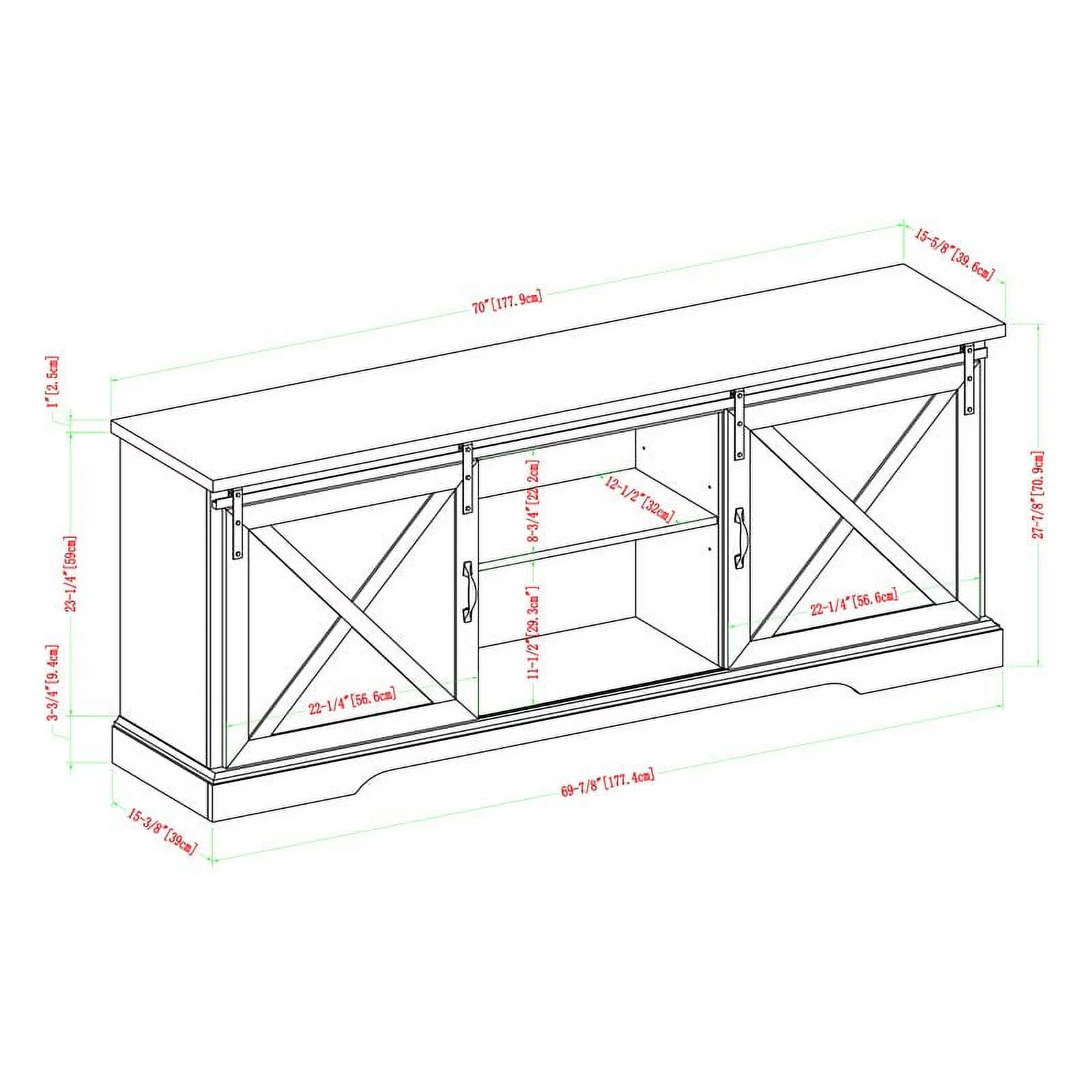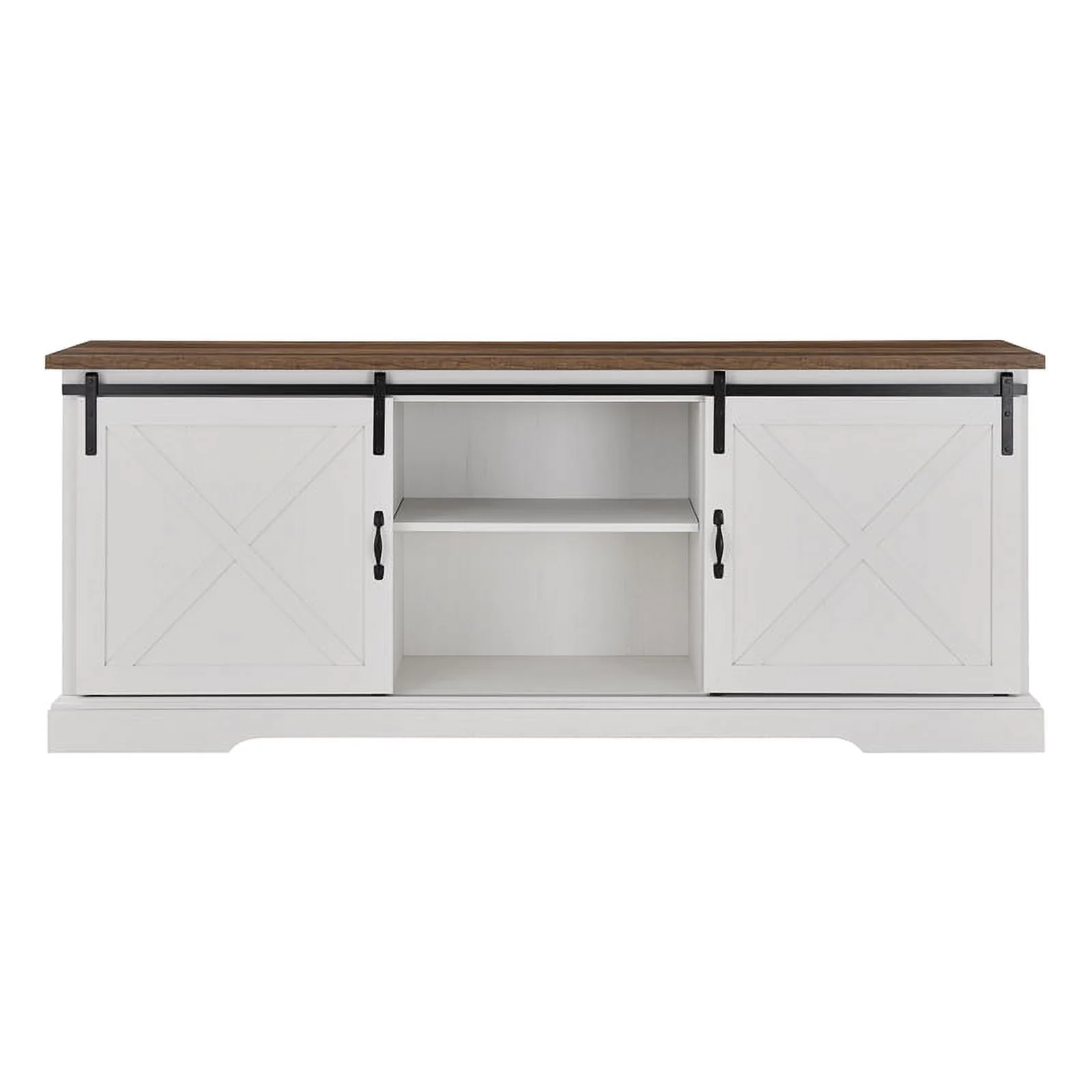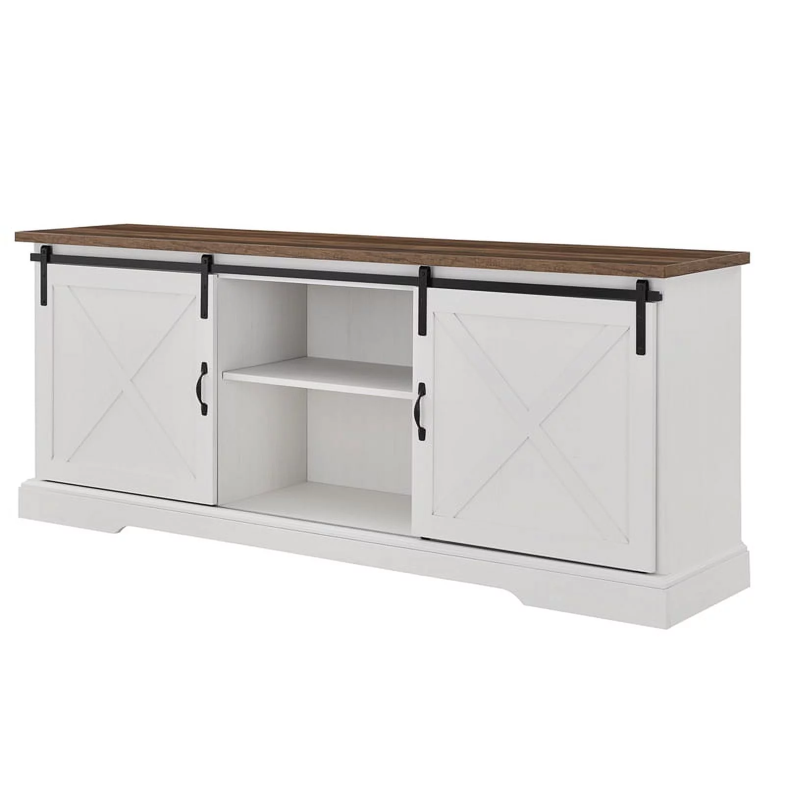 Walker Edison Sliding Barn Door 70" Farmhouse Wood TV Stand in White/Black