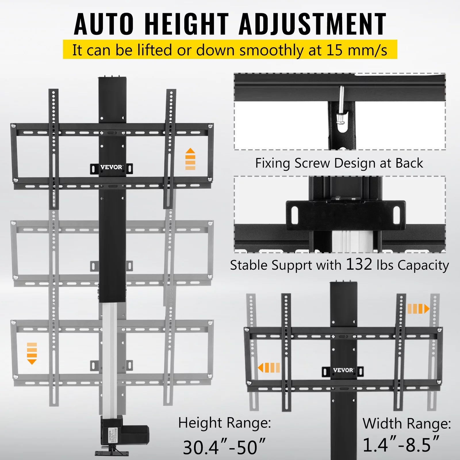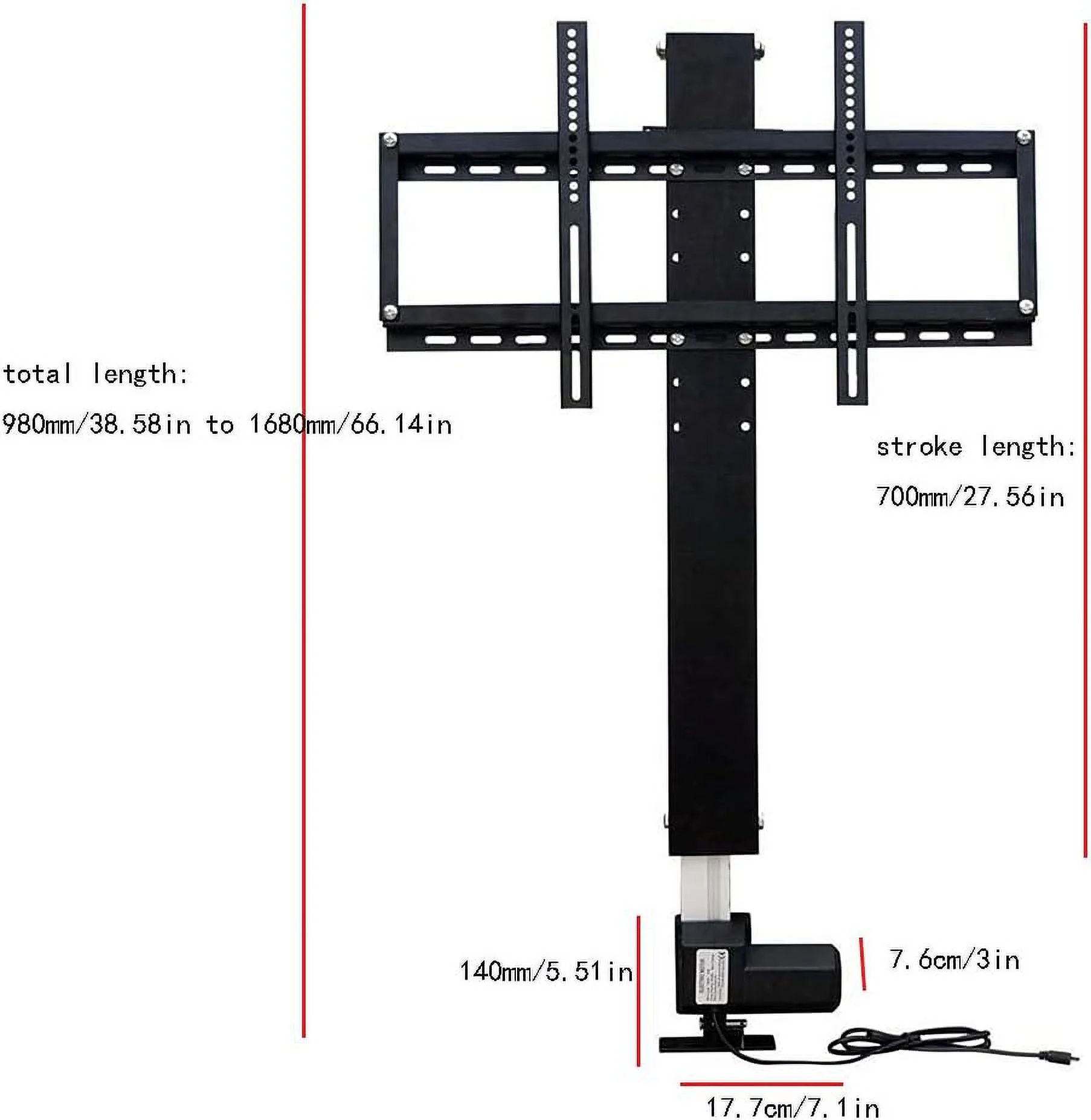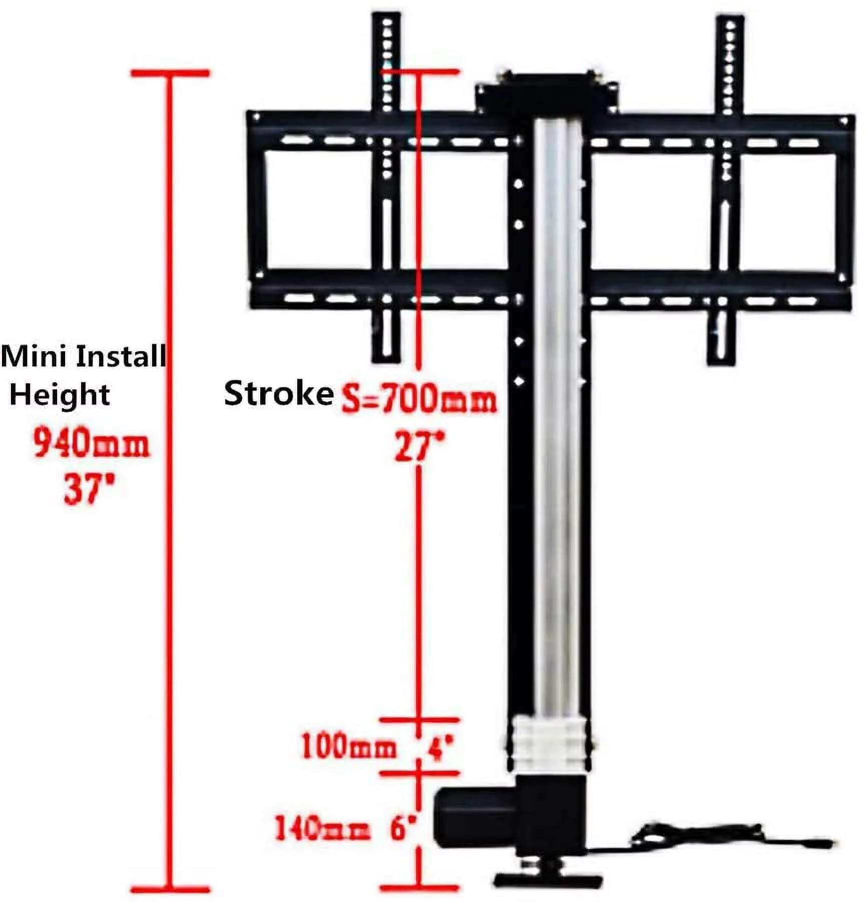 Fichiouy 700mm Electric Lift Bracket TV Telescopic Stand with Remote Control for LCD 26-57" TV Black