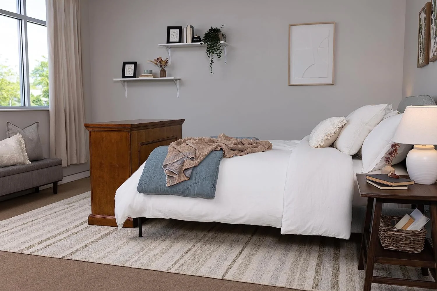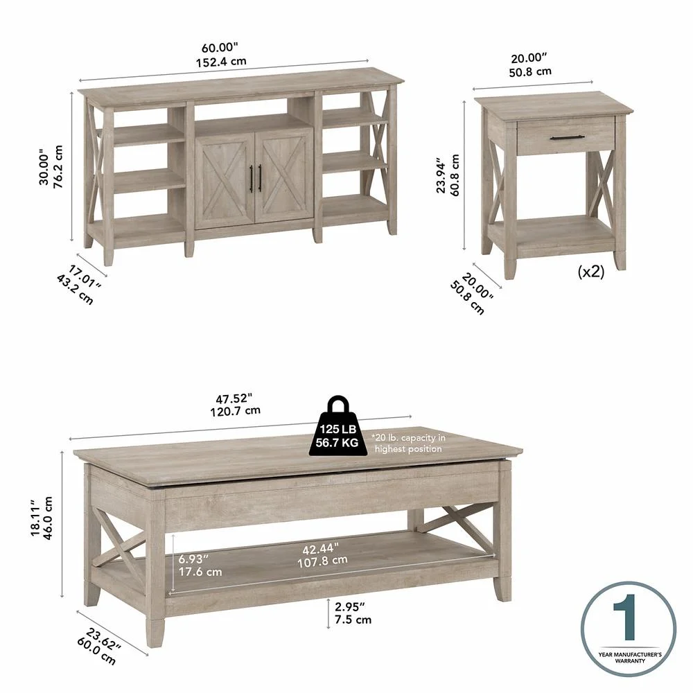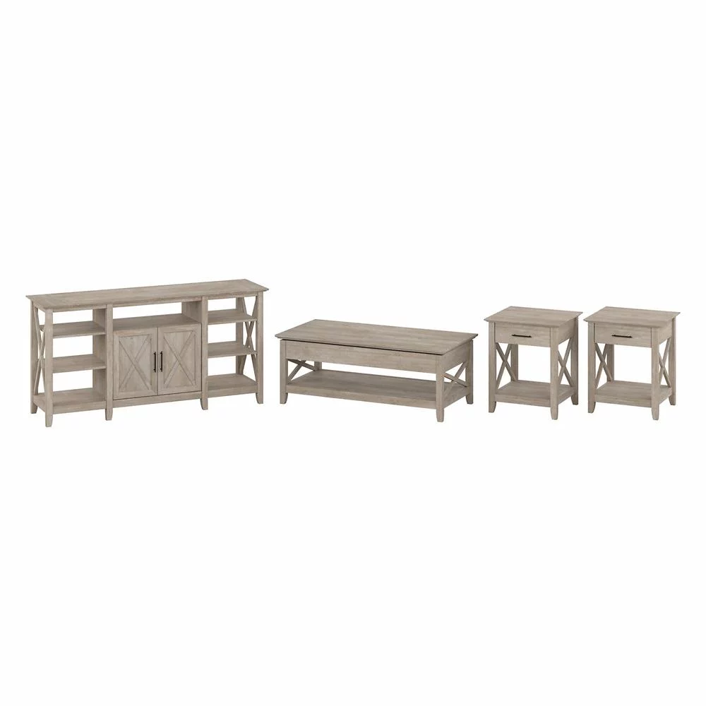 Key West Tall TV Stand with Lift Top Coffee Table & End Tables in Washed Gray