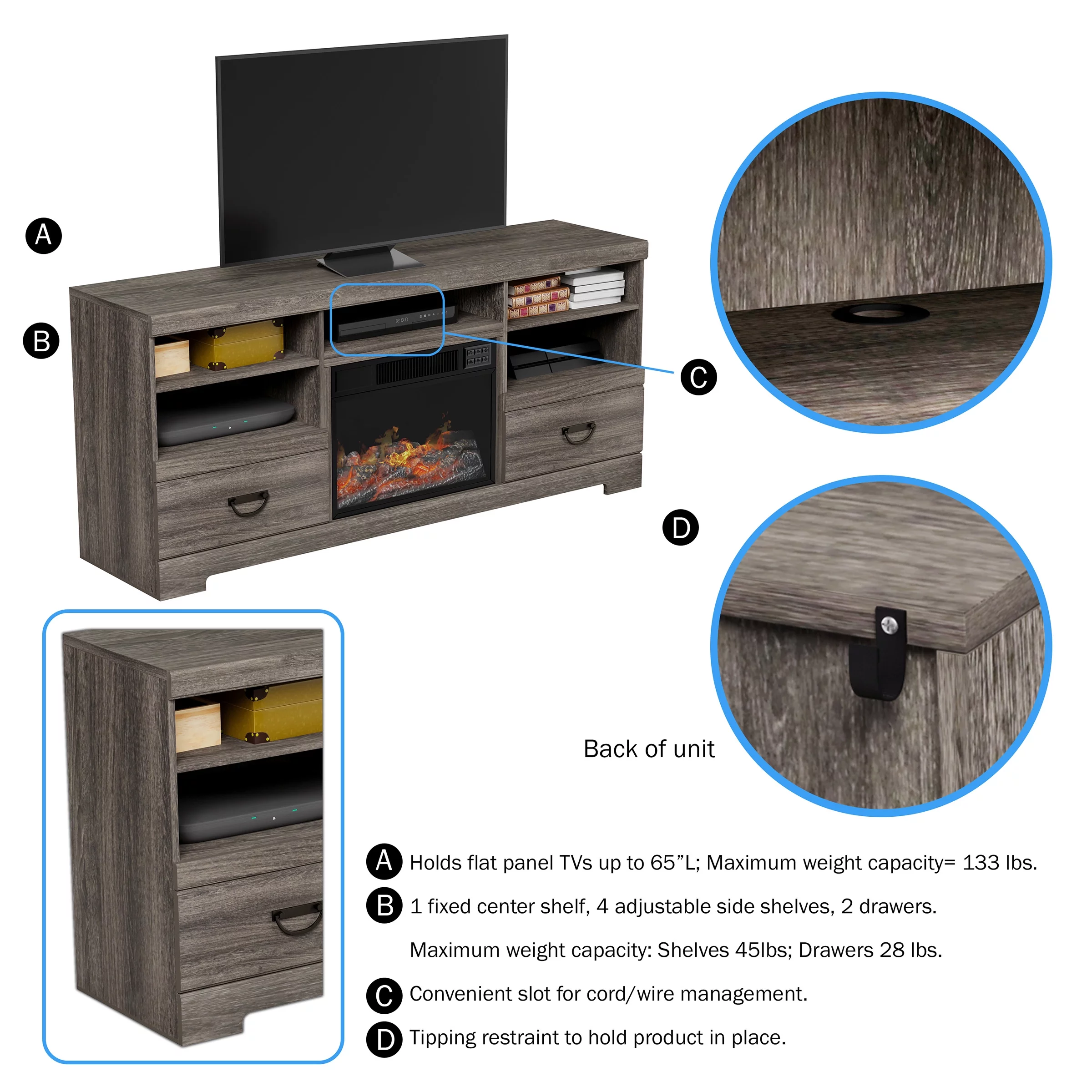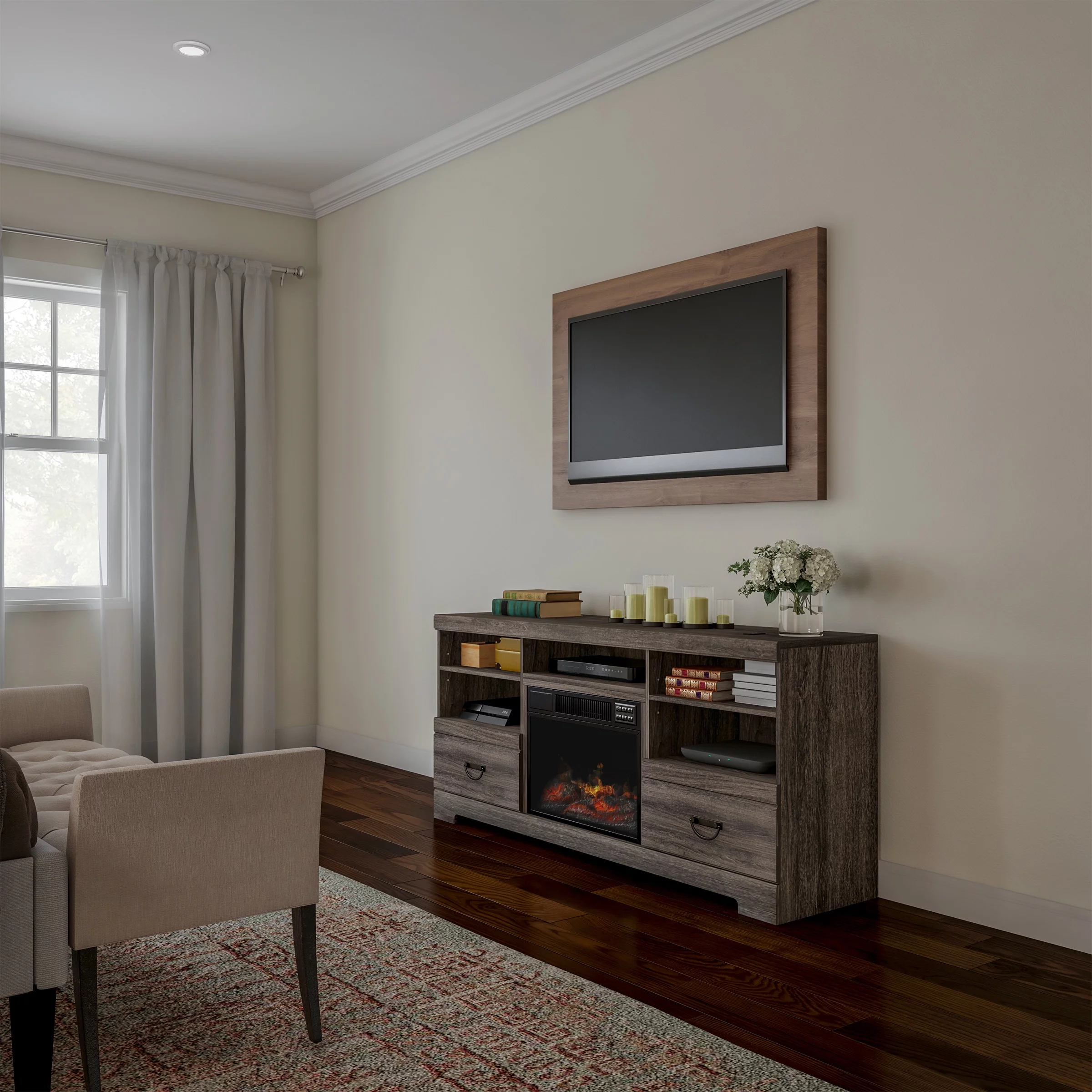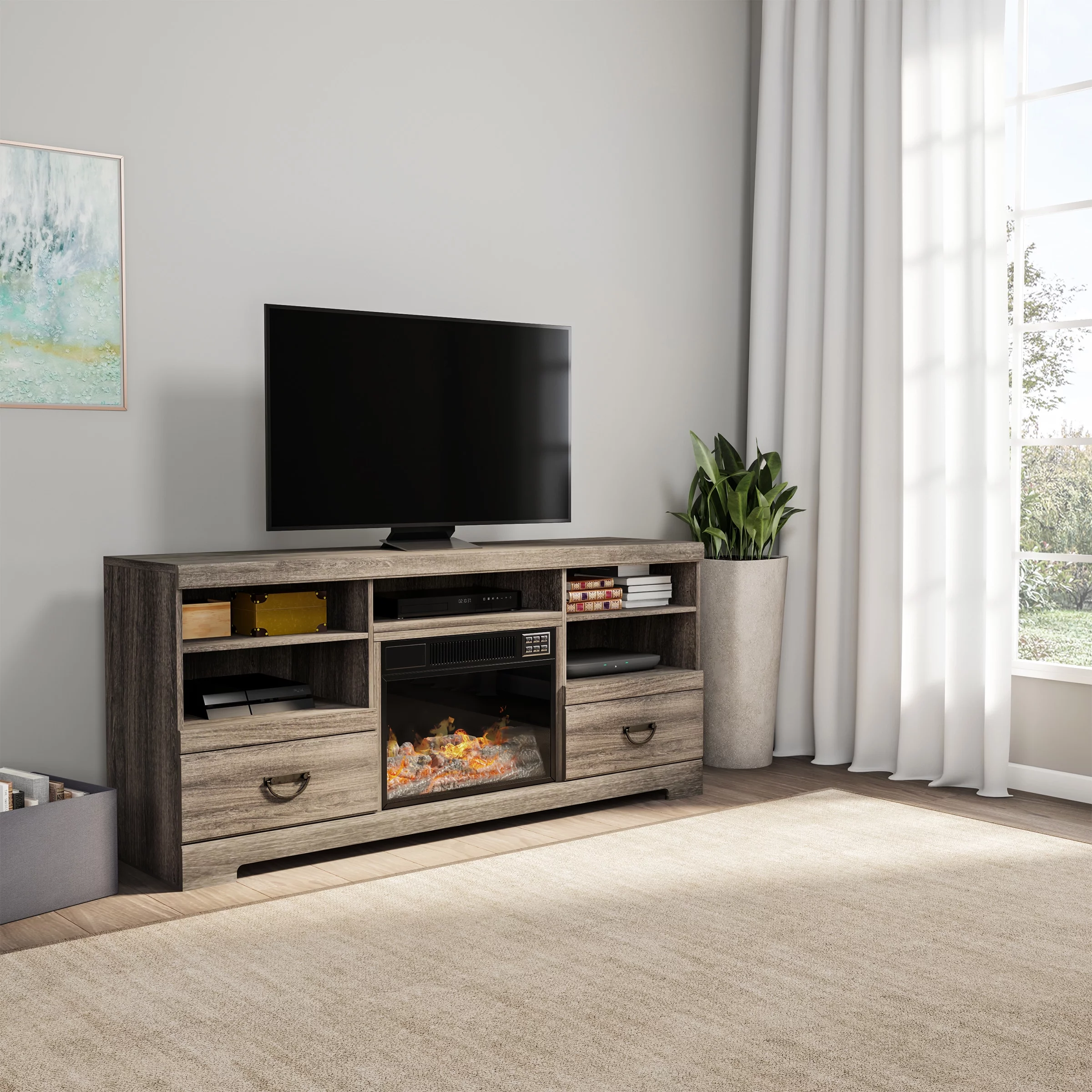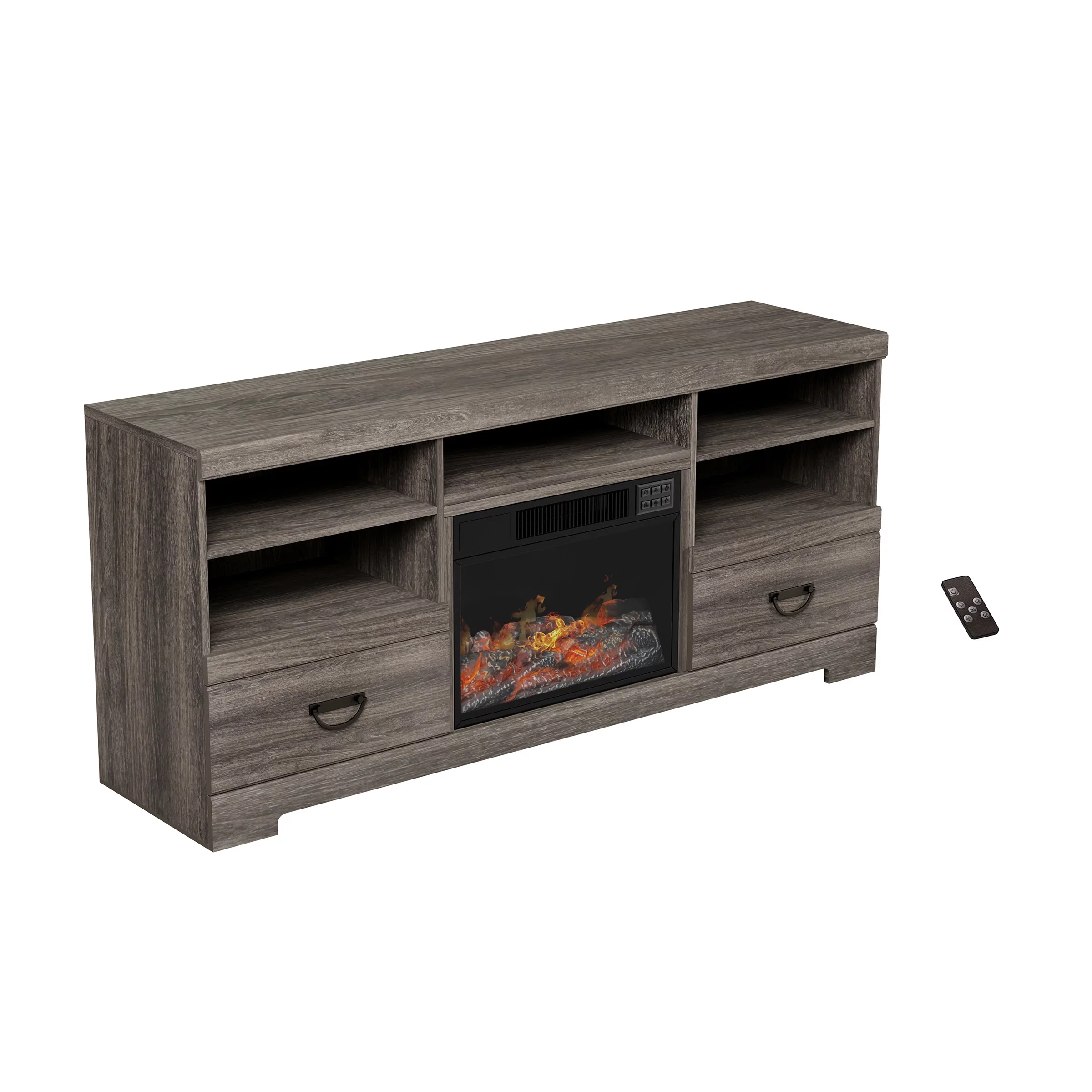 Northwest Fireplace TV Stand for TVs up to 65" with Adjustable Thermostat and LED flame, Grey