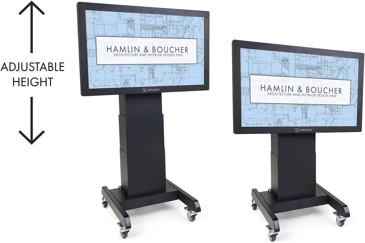 Displays2go Motorized Rolling TV Stand, 4 Wheels, Remote Controlled, Fully Adjustable - Black (DGMLTSBK)