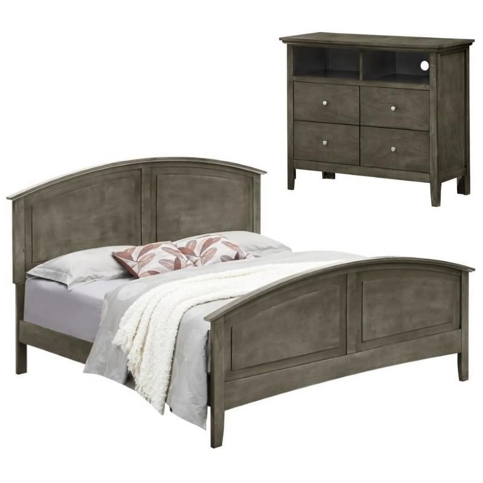 Home Square 2-Piece Set with King Panel Bed and 4-Drawer TV Stand in Gray