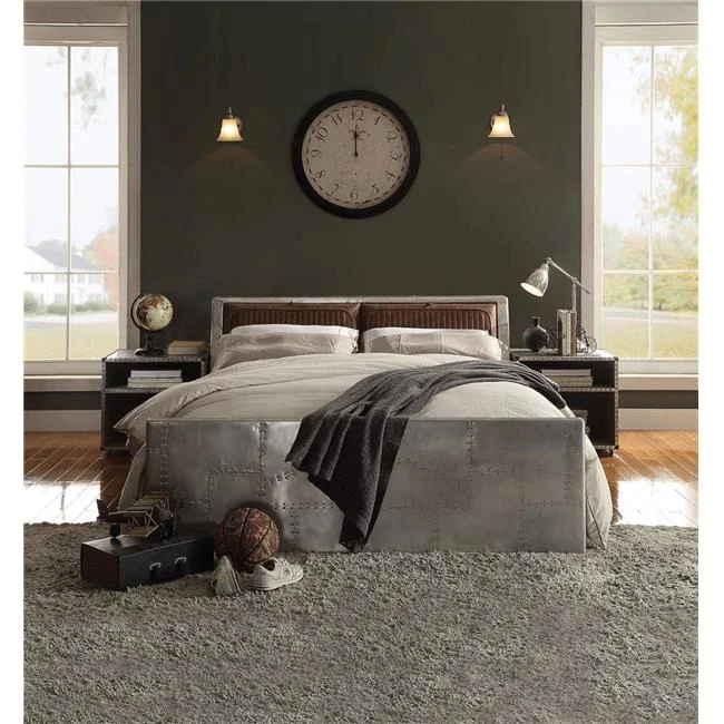 Brancaster Queen Size Bed with Storage - Retro Brown Top Grain Leather & Aluminum, 4 Piece
