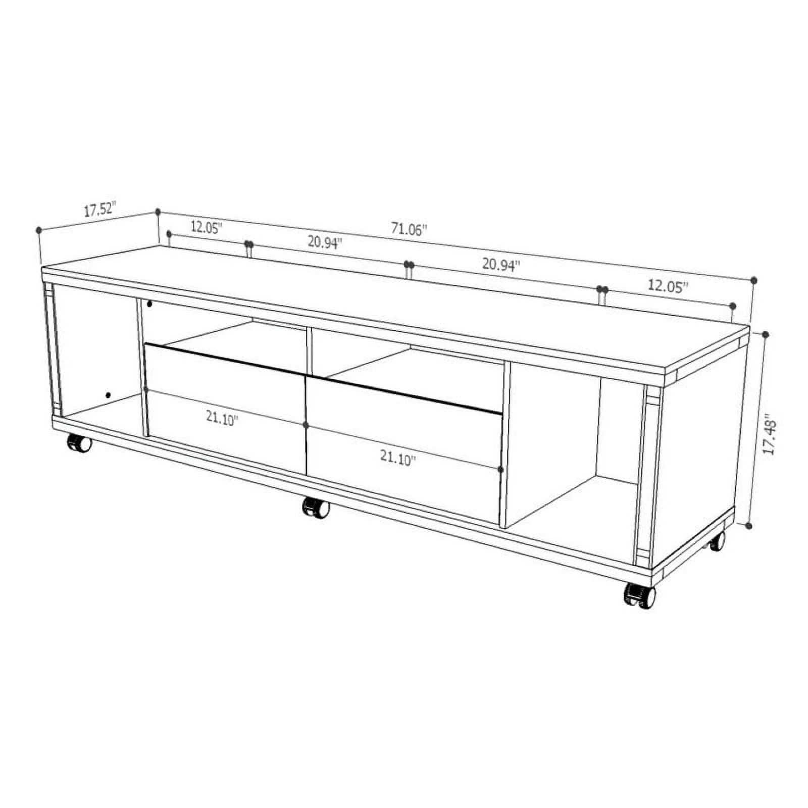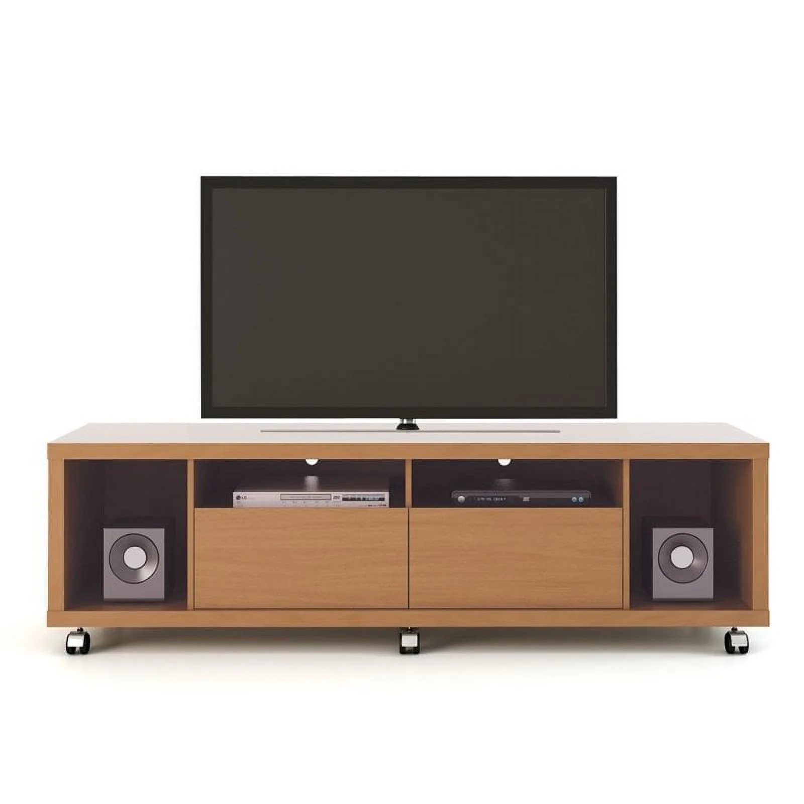 Pemberly Row Wood 71" TV Stand with Casters in Maple Cream & Off White