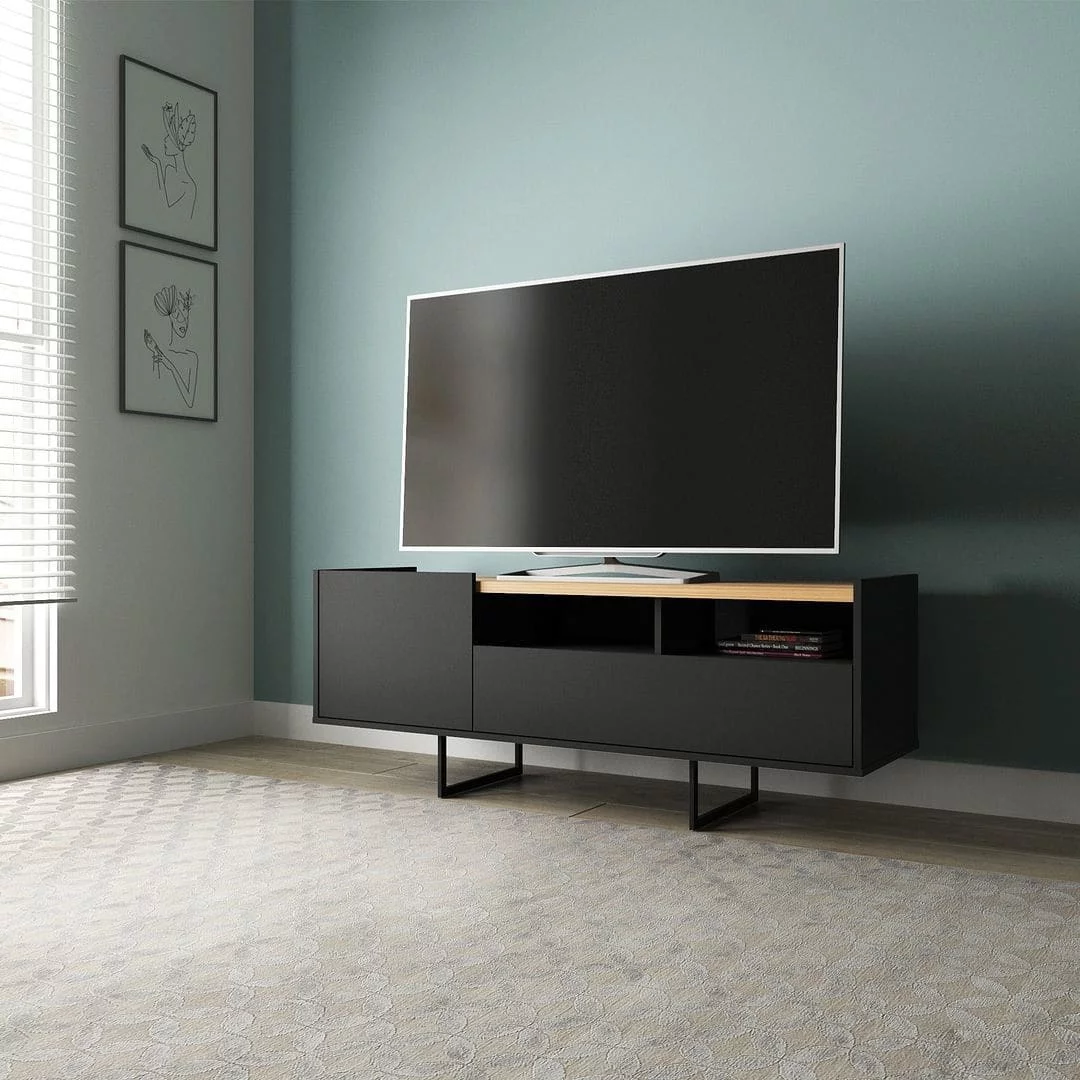 Manhattan Comfort Theodore TV Stand | Black, Cinnamon | Elevate Your Space