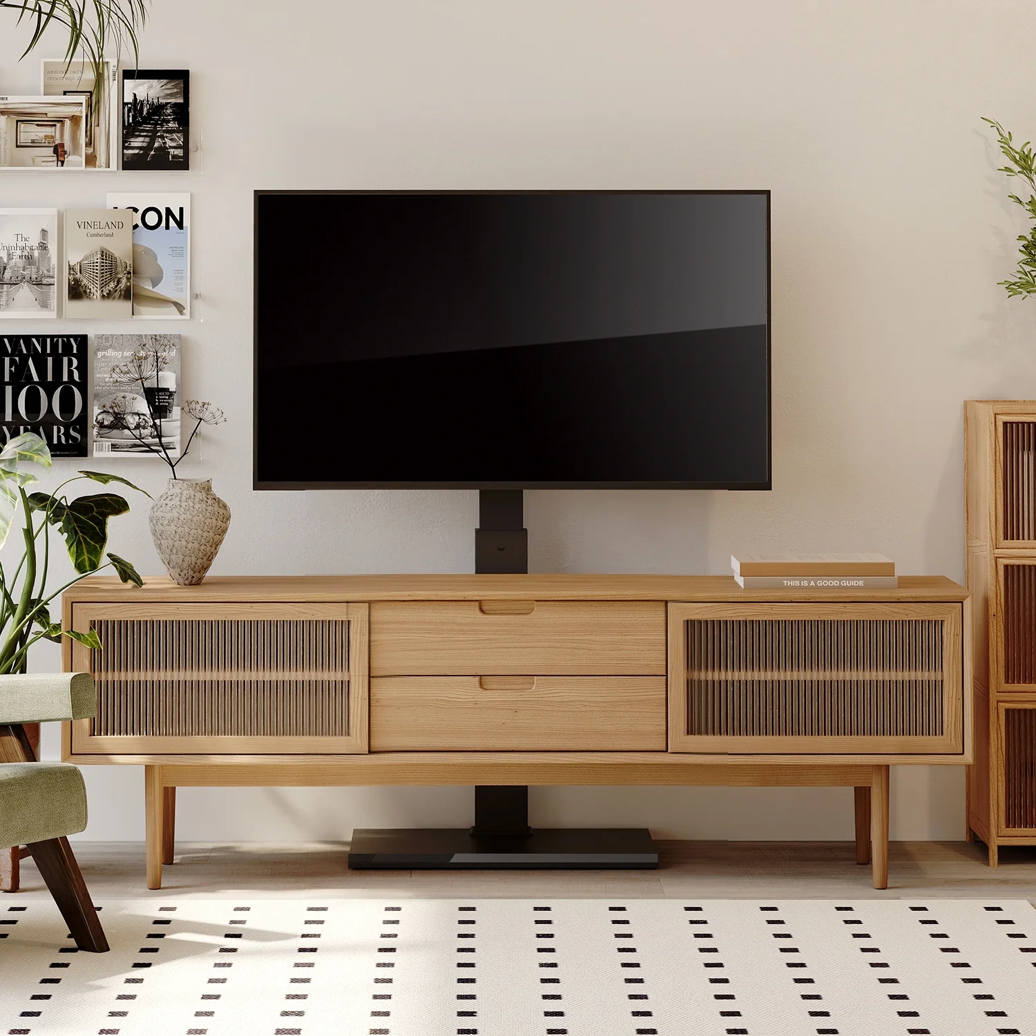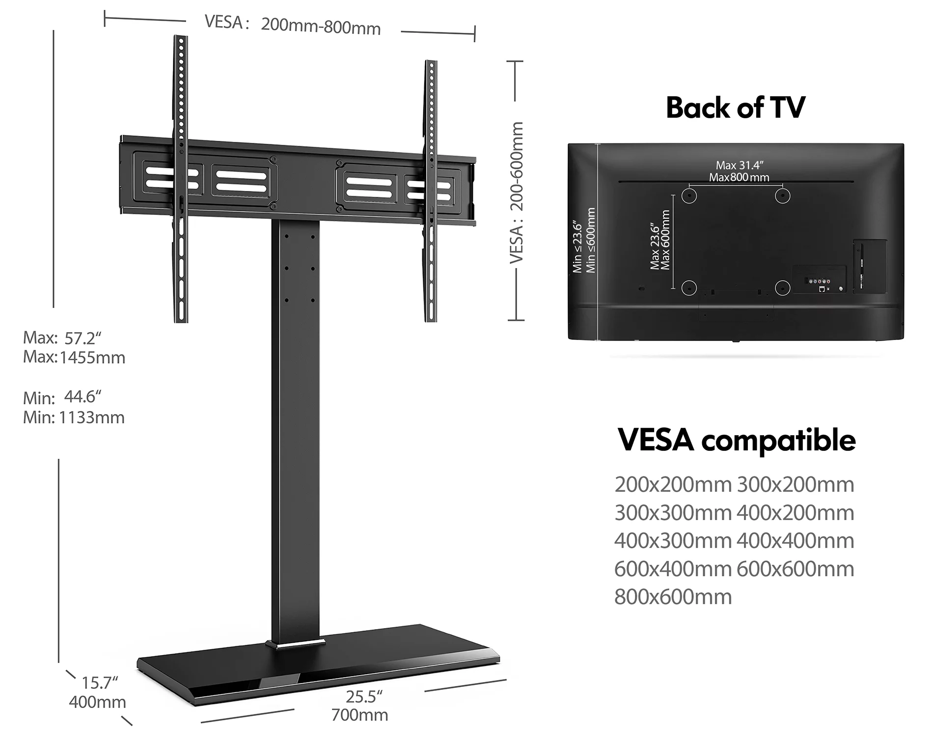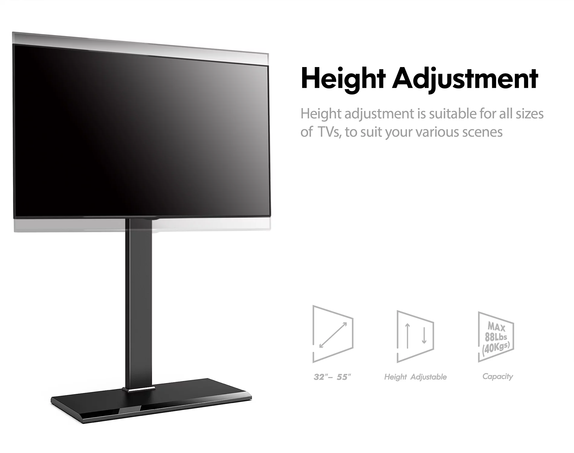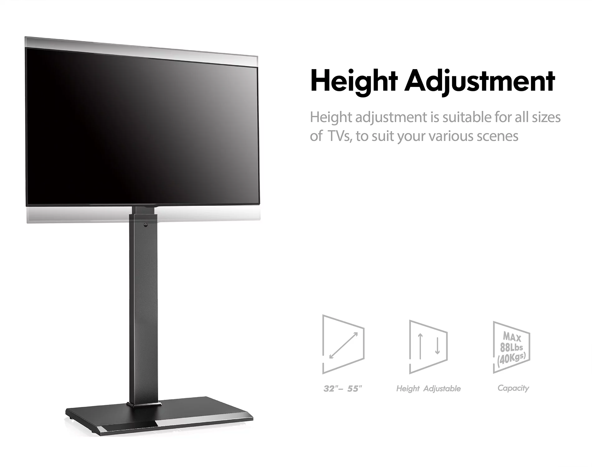 Aiqidi Universal TV Stand 26-57 Inch TV Stand Height Adjustable with Wheels Maximum Thrust 80Kg