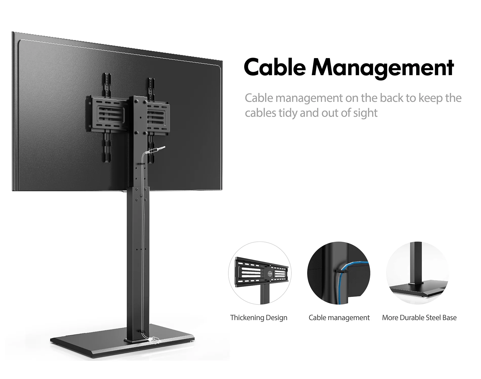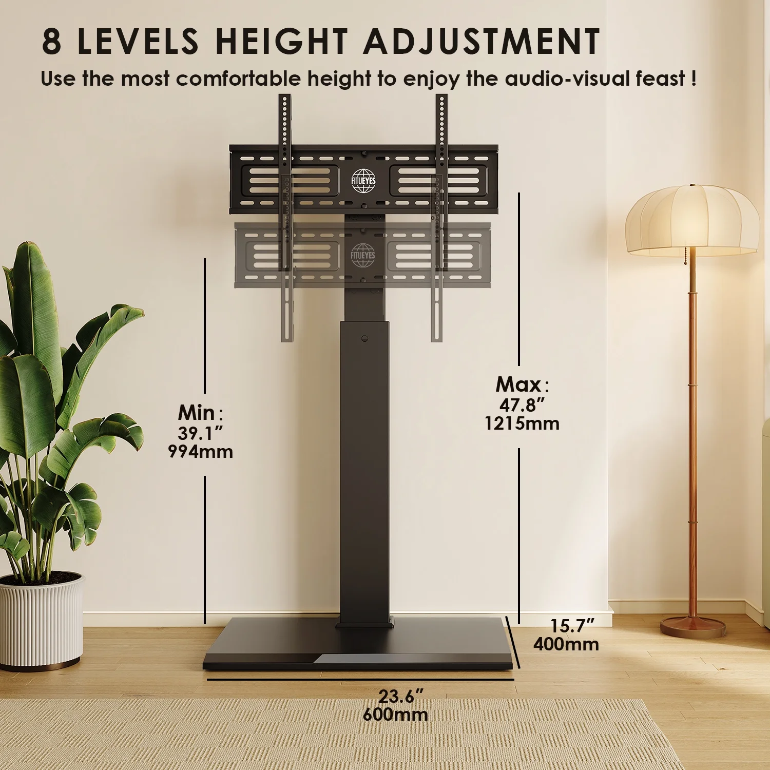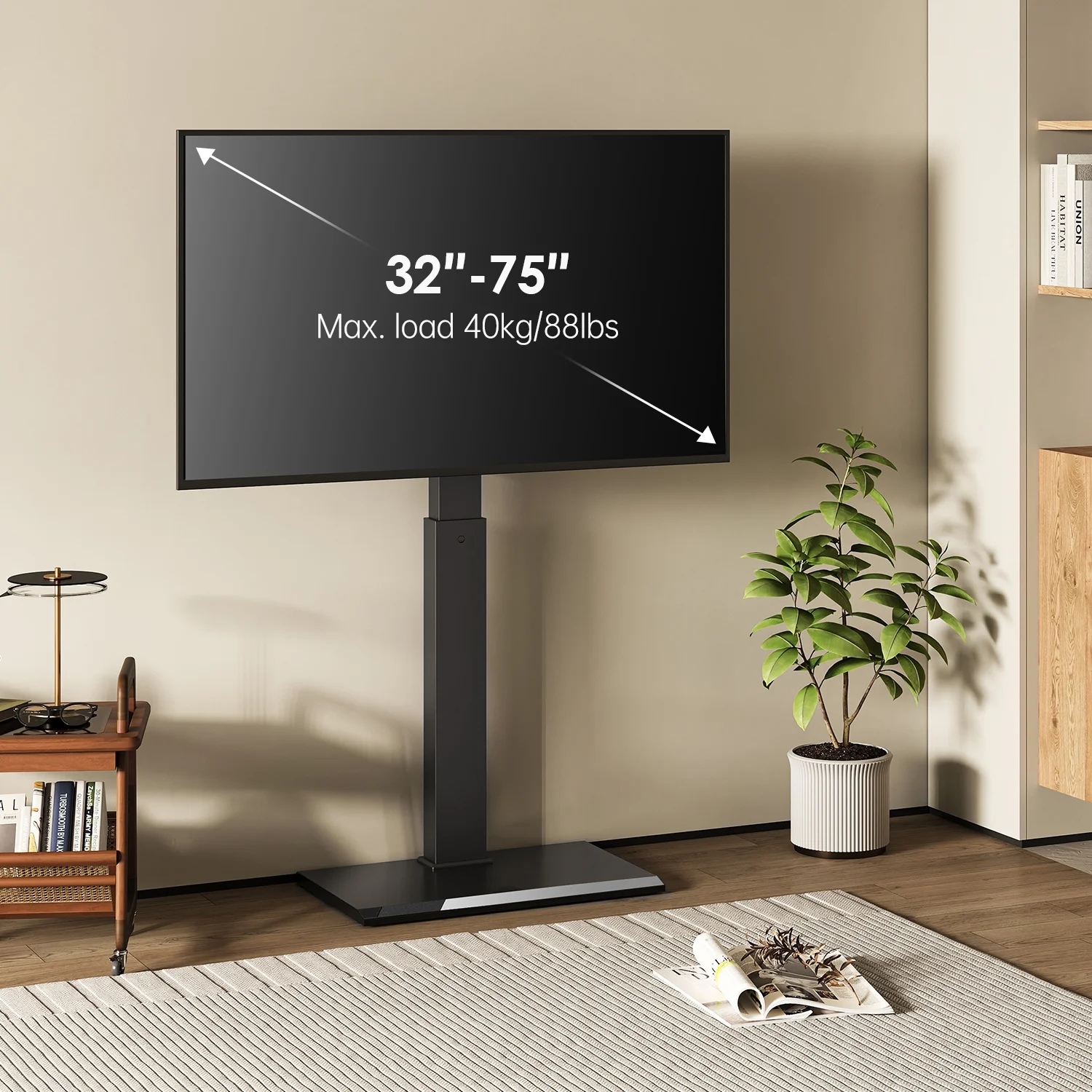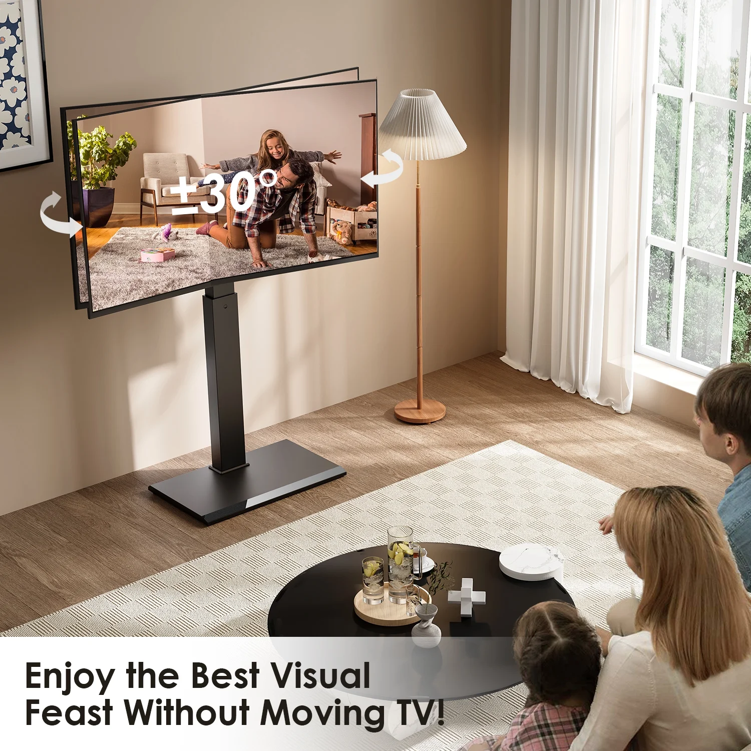 Fitueyes Swivel Modern Floor TV Stand for 32-75 Inches, Height Adjustment, with Durable Iron Base,Black