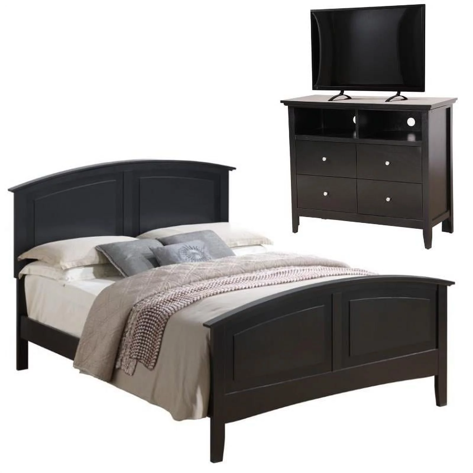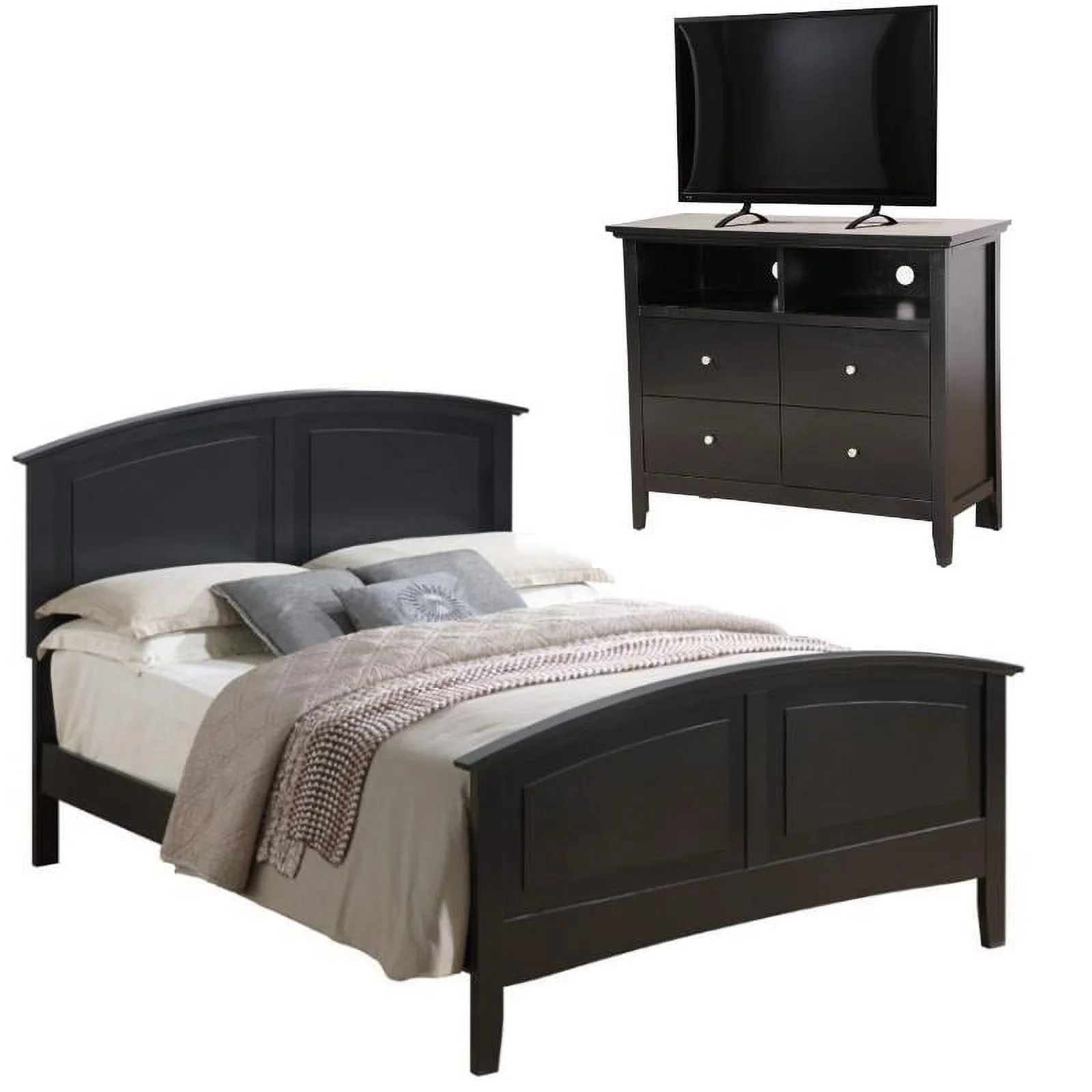 Home Square 2-Piece Set with Full Panel Bed and 4-Drawer TV Stand in Black
