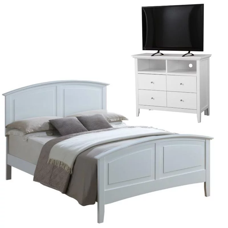 Home Square 2-Piece Set with King Panel Bed and 4-Drawer TV Stand in White