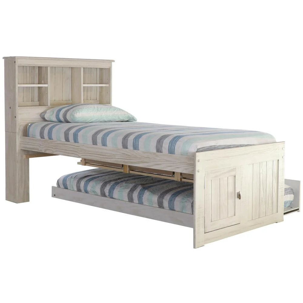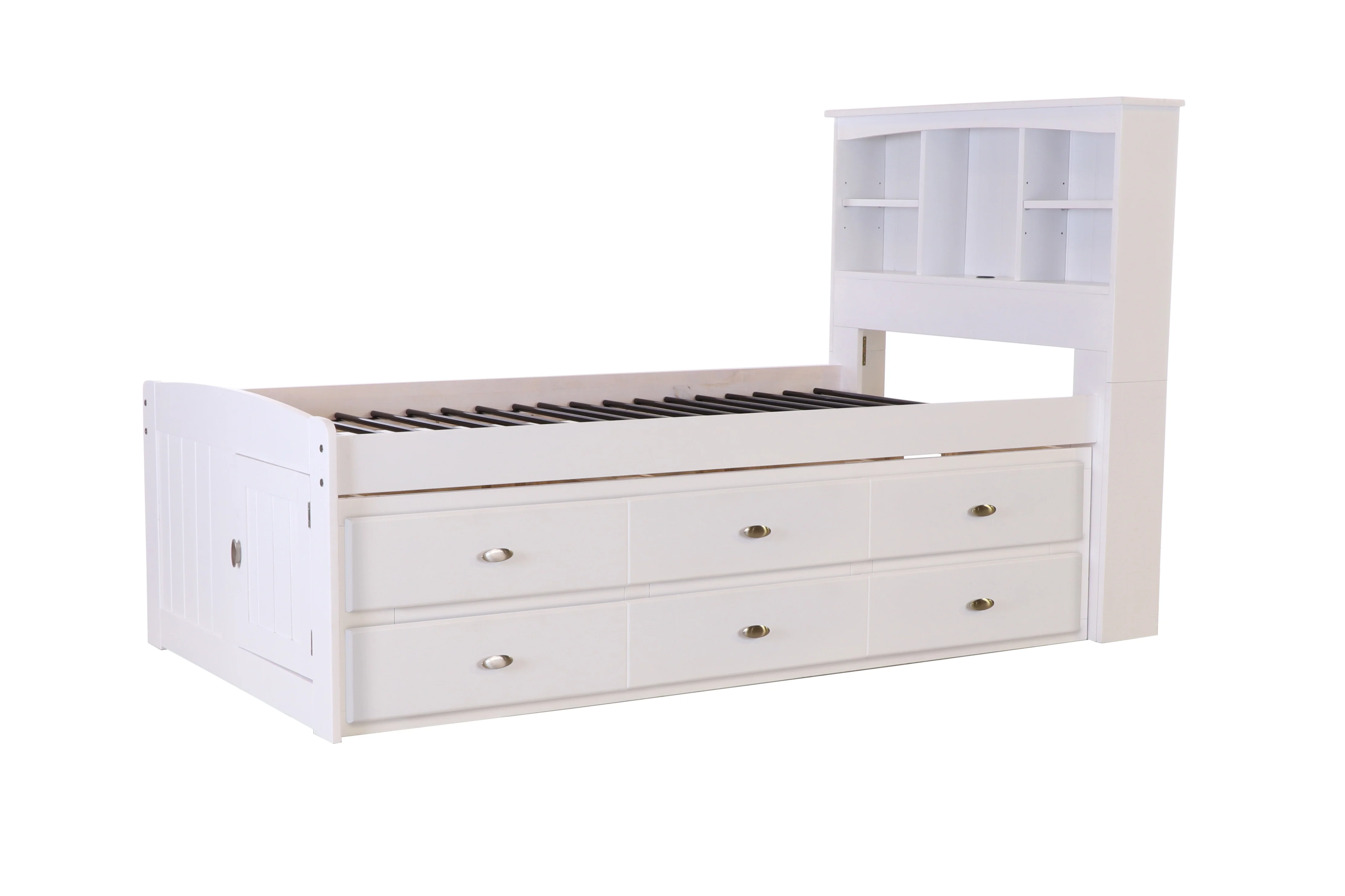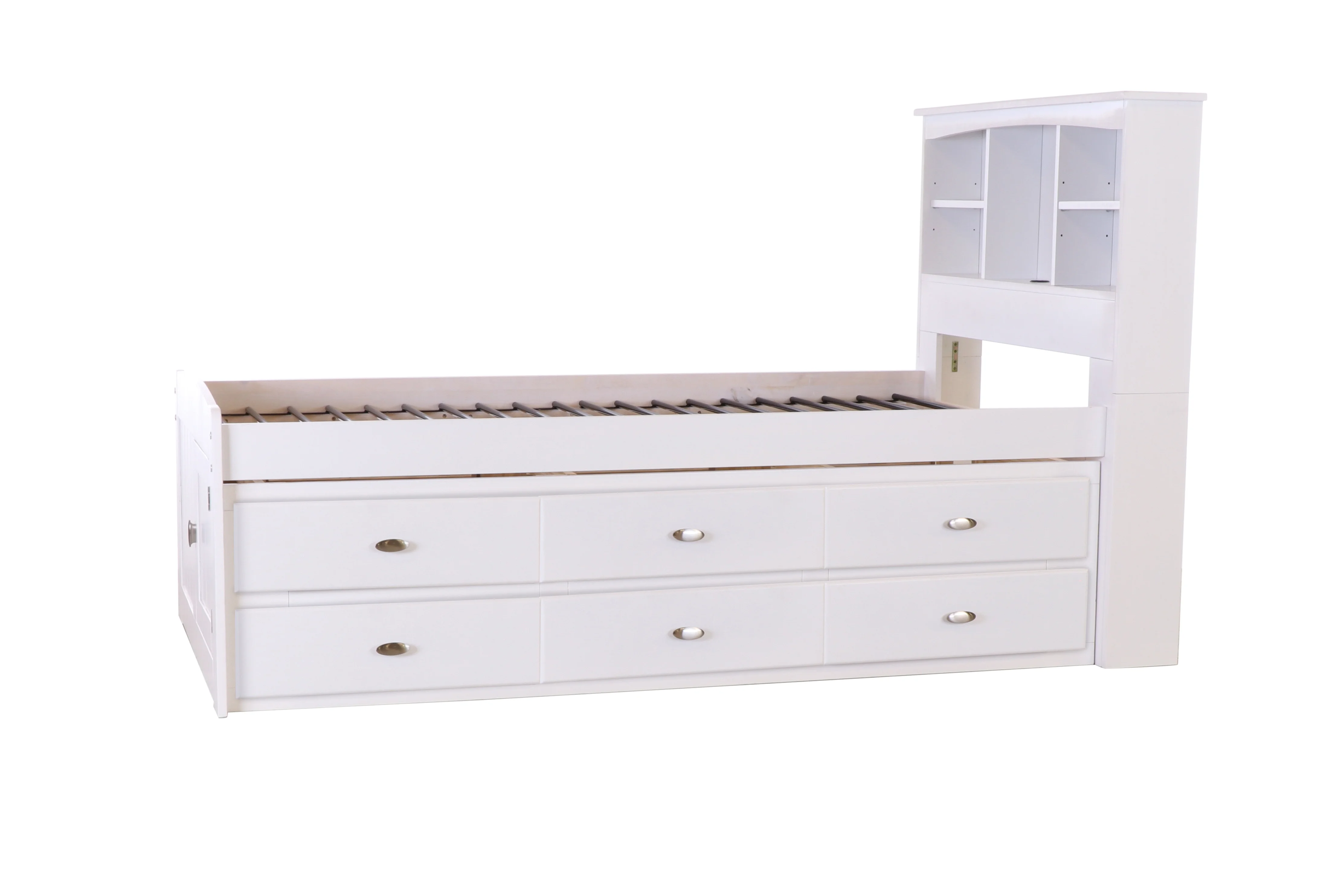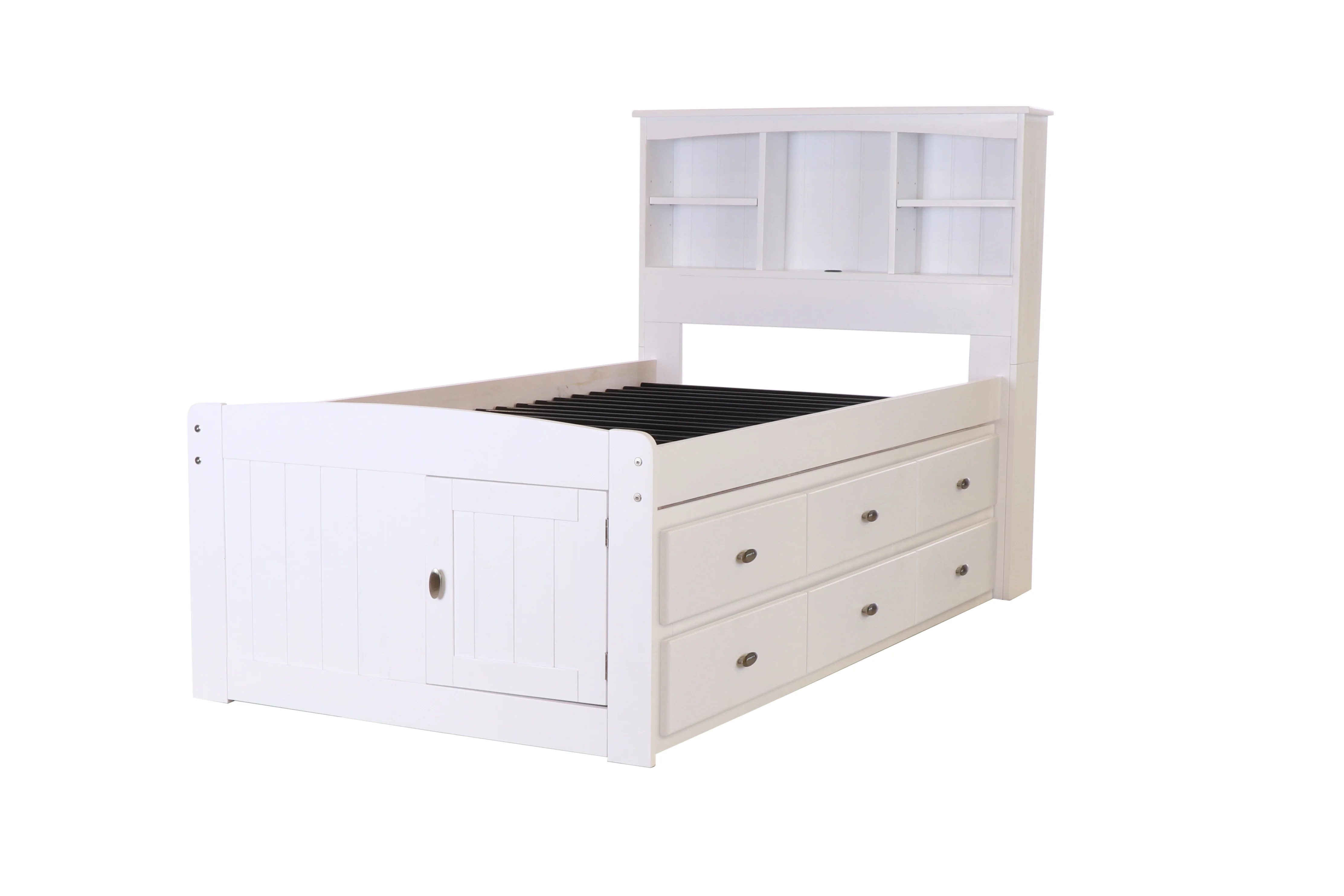 OS Home and Office Model 80220K6-22 Solid Pine Twin Captains Bookcase Bed with 6 spacious under bed drawers in Casual White